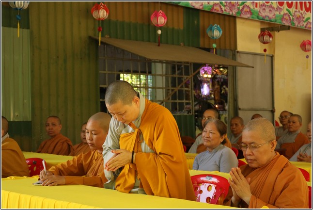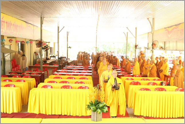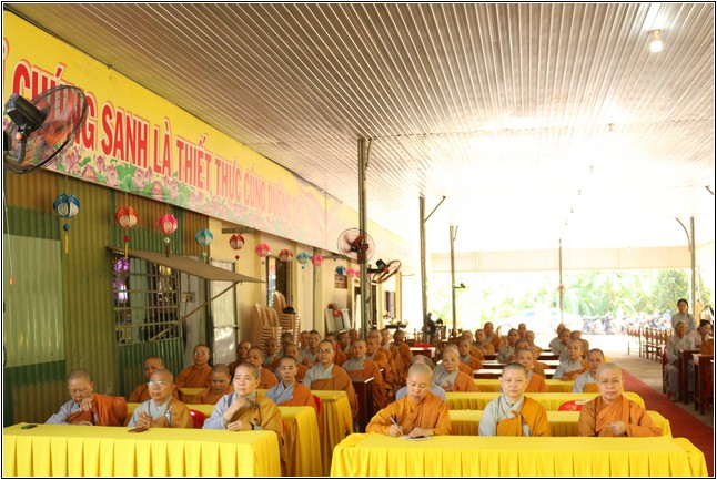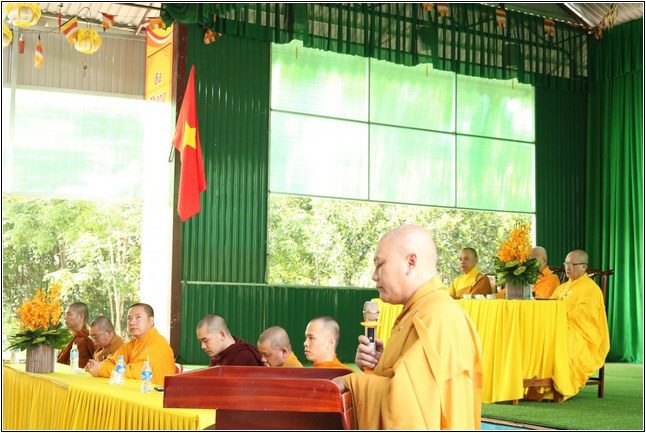 Sau khi nghe báo cáo, Hòa thượng Thích Phước Tú – Phó Ban kiêm trưởng Ban Nghi lễ Phật giáo tỉnh có lời sách tấn đạo từ đến chư Tăng Ni hành giả An cư. Hòa thượng hoan hỷ khi thấy Tăng Ni huyện Long Thành tu học rất đông trong tinh thần hòa hợp. Hòa thượng nhấn mạnh việc An cư vô cùng quan trọng và ý nghĩa đối với hàng người xuất gia. Qua đó Hòa thượng nhắc về sự tích Ngài Mục Kiền Liên cứu mẹ cũng nhờ vào công đức và năng lực tu hành sau 3 tháng An cư của chư Tăng. Chính vì vậy việc ở yên một chổ để cùng nhau chuyên tâm tu tập là thời gian quý báu nhất để chư Tăng Ni có thêm định lực và phước báu đạt được những thành tựu trong sự nghiệp hoằng pháp độ sanh.