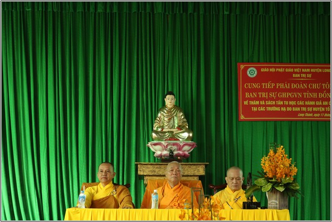Đại diện cho BTS Phật giáo huyện Long Thành tiếp đoàn có TT. Thích Pháp Quang – Phó Thiền chủ Trường hạ Tăng chùa Bửu Hưng; TT. Thích Huệ Nghiệp, ĐĐ. Thích Đạt Ma Chí Hải, ĐĐ. Thích Pháp Điền – Đồng Phó BTS GHPGVN huyện Long Thành; ĐĐ. Thích Minh Từ - Chánh Thư ký BTS Phật giáo huyện; TT. Thích Minh Hạnh – Trưởng Ban Pháp chế Phật giáo huyện; ĐĐ. Thích Huệ Thông – Trưởng Ban Kiểm soát Phật giáo huyện cùng chư Tôn đức Tăng Ni Thường trực BTS cùng quý Ni trưởng Ban chức sự Trường hạ Ni chùa Vân Long với 168 hành giả An cư tại 2 trường hạ chính của BTS. Ngoài ra trong huyện còn có 12 điểm An cư tại chỗ. Được biết Phật giáo huyện Long Thành có trên 2000 ngàn Tăng Ni đang tu học.