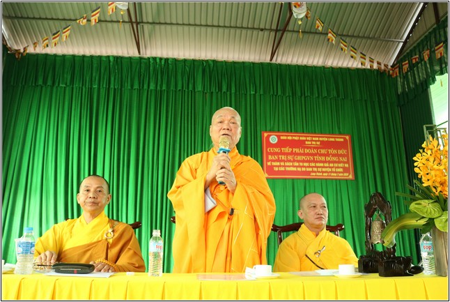 ĐĐ. Thích Đạt Ma Chí Hải thay mặt BTS Phật giáo huyện Long Thành dâng lời cảm tạ, tri ân sâu sắc đến BTS GHPGVN tỉnh Đồng Nai đã quang lâm về thăm và sách tấn chư hành giả An cư. Đó là niềm hạnh phúc đối với BTS cũng như toàn thể chư Tăng Ni trong huyện.