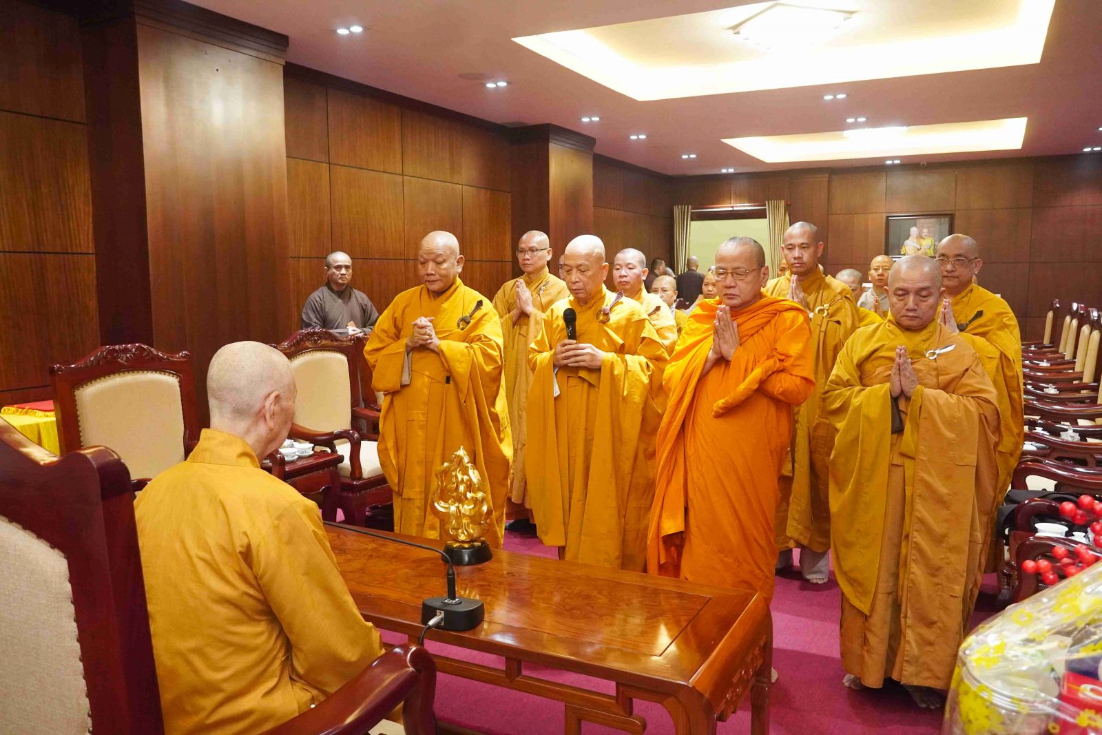 Đại diện đoàn Ban Trị sự GHPGVN tỉnh Đồng Nai, TT. Thích Huệ Khai – Trưởng Ban Trị sự GHPGVN tỉnh đã dâng lời khánh tuế lên Đức Pháp Chủ GHPGVN và trình bạch các công tác Phật sự trong năm vừa qua.