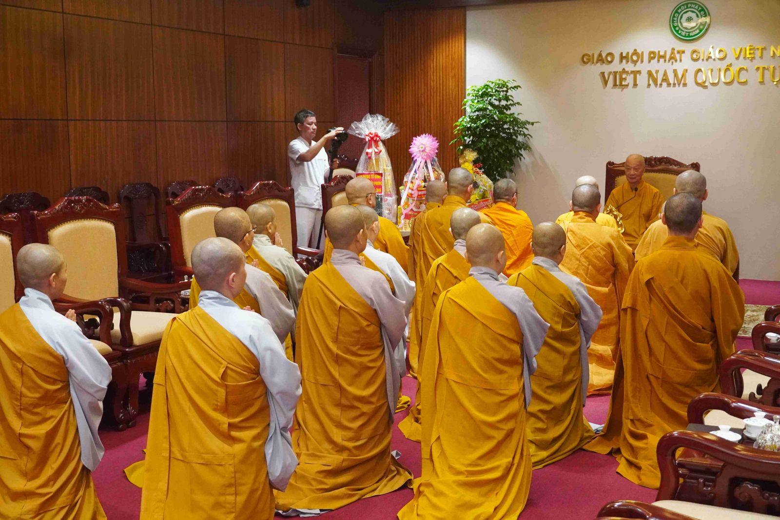 Cùng chư Tôn đức Tăng Ni Văn phòng Ban Trị sự tỉnh, chư Ni phân ban Ni giới tỉnh cùng về đảnh lễ Khánh tuế Đức Pháp chủ GHPGVN.