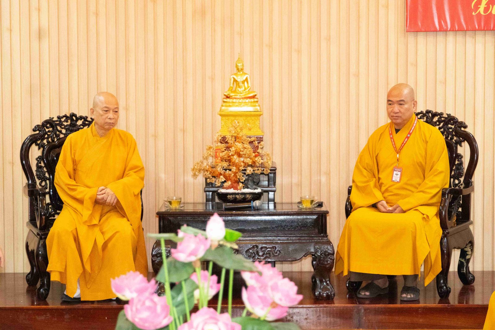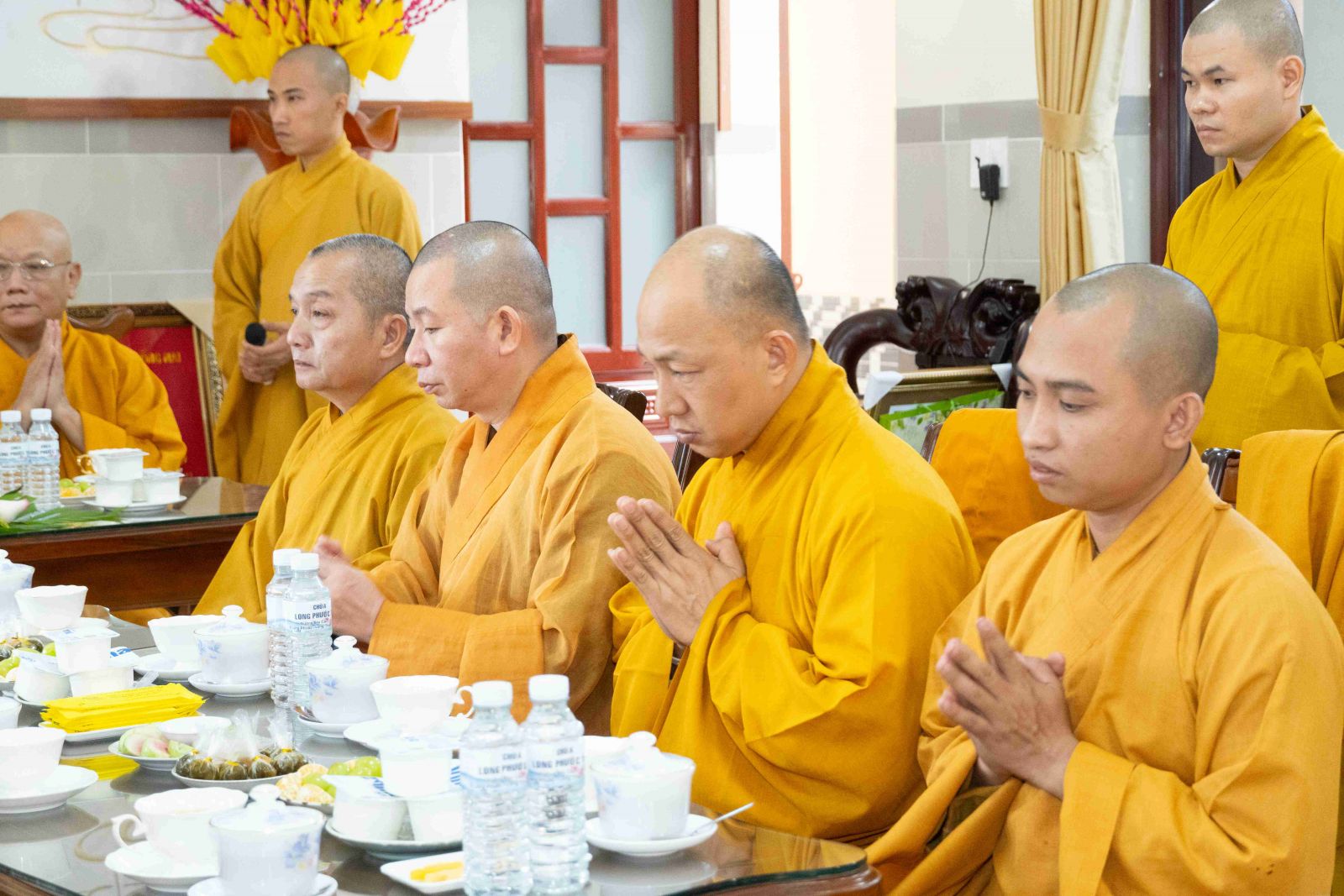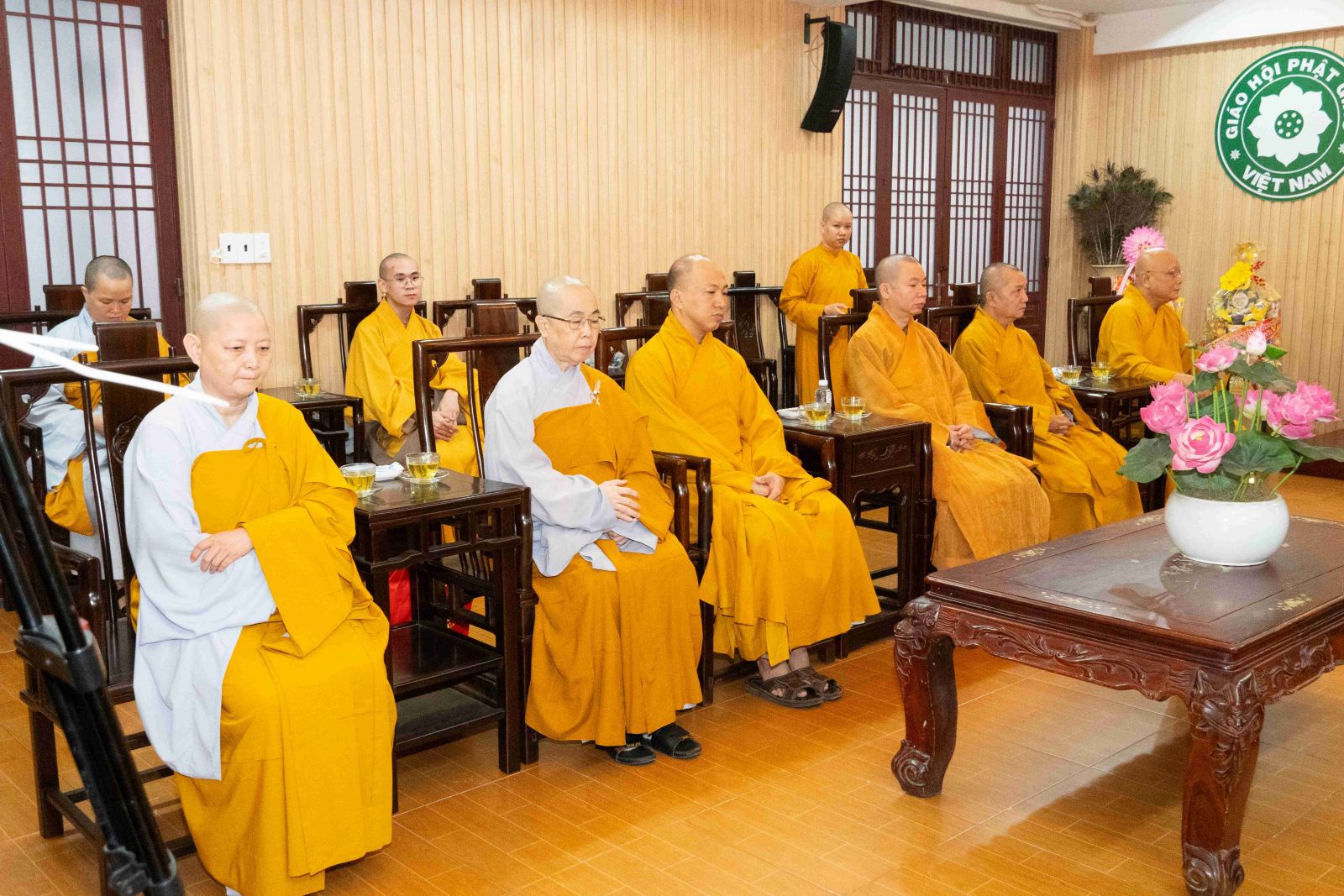 Tiếp đoàn có TT. Thích Phước Nguyên – Phó Tổng Thư ký kiêm Chánh Văn phòng 2 TƯ GHPGVN; TT. Thích Phước Nghiêm - Ủy viên Thường trực HĐTS, Phó Chánh Văn phòng 2 TƯ GHPGVN; TT. Thích Quảng Tiến - Ủy viên HĐTS, Phó Văn phòng 2 TƯ GHPGVN; Đ Đ. Thích Minh Ân - Ủy viên HĐTS, Phó Chánh Văn phòng 2 TƯ GHPGVN; cùng chư Tôn đức Văn phòng 2 TƯ GHPGVN.