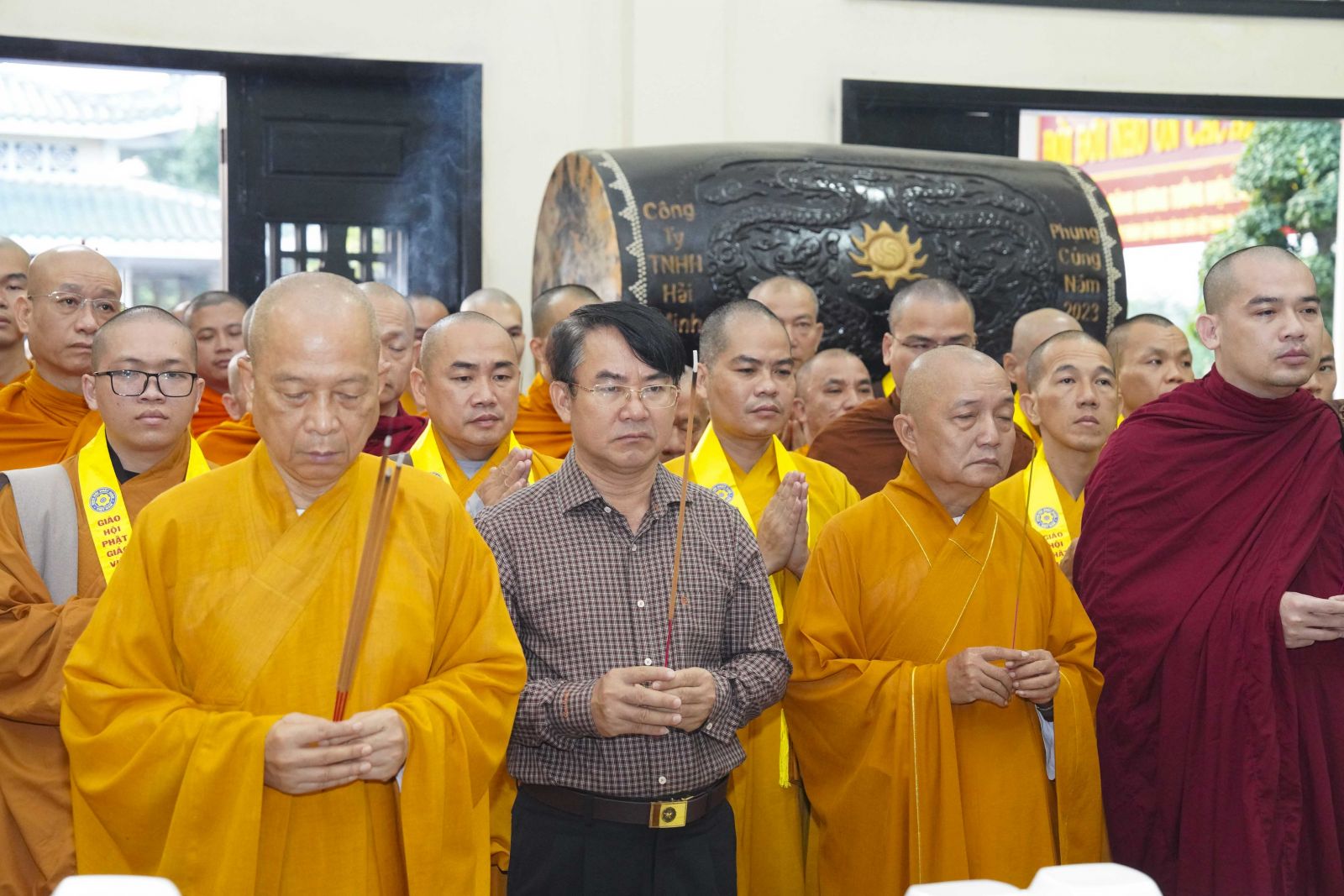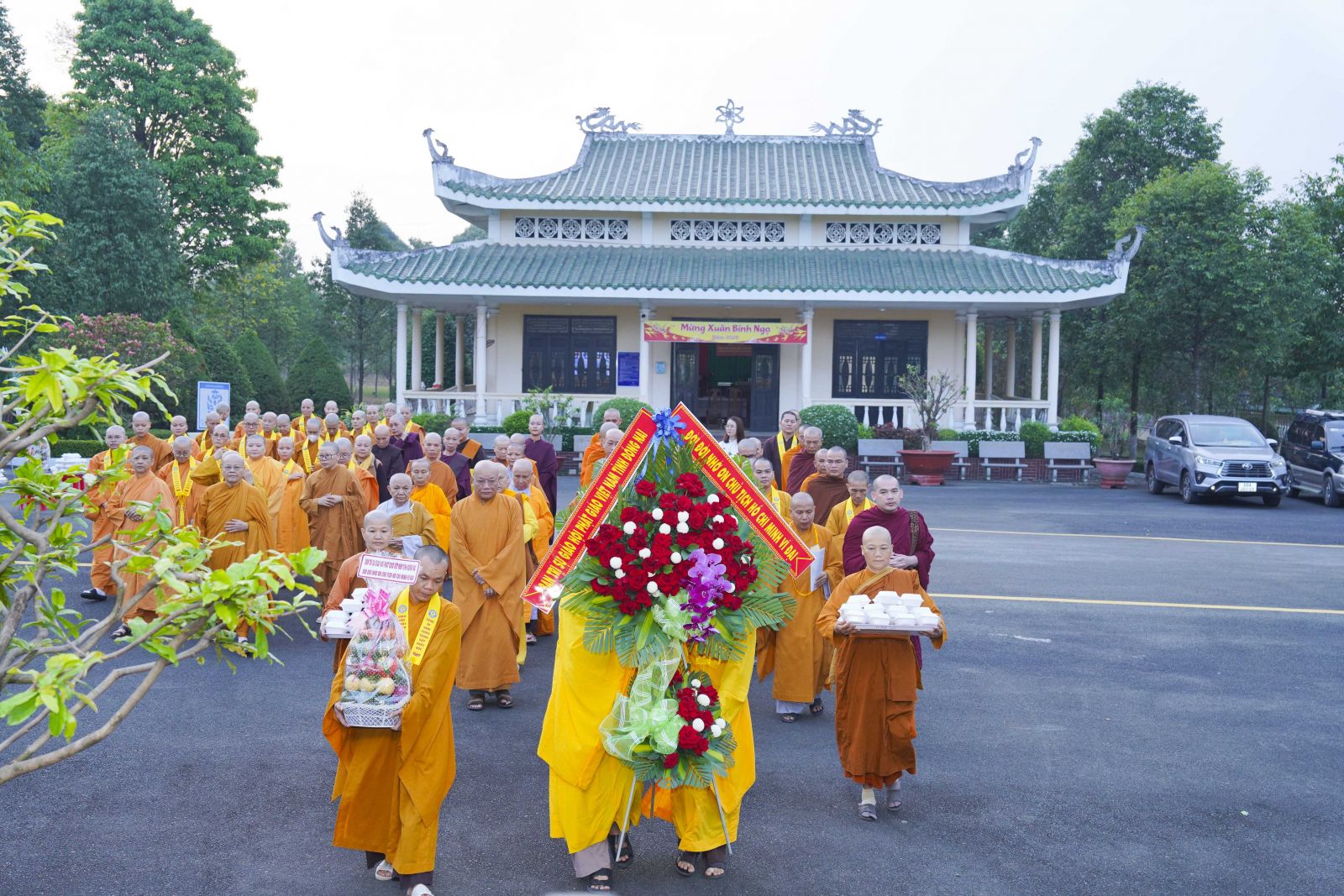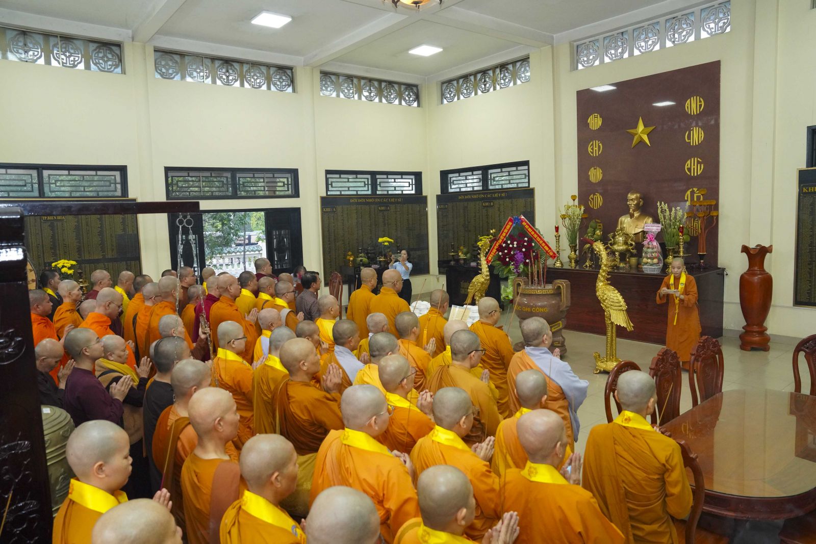 Tiếp đó, Ban Trị sự đã trang nghiêm cử hành nghi thức dâng hương tưởng niệm Chủ tịch Hồ Chí Minh – vị lãnh tụ vĩ đại của dân tộc Việt Nam, người đã cống hiến trọn đời mình cho sự nghiệp cách mạng, vì độc lập dân tộc và hạnh phúc của nhân dân. Trước anh linh của Người, chư Tôn đức và toàn thể đại chúng nhất tâm cầu nguyện quốc thái dân an, thế giới hòa bình, chúng sinh an lạc.