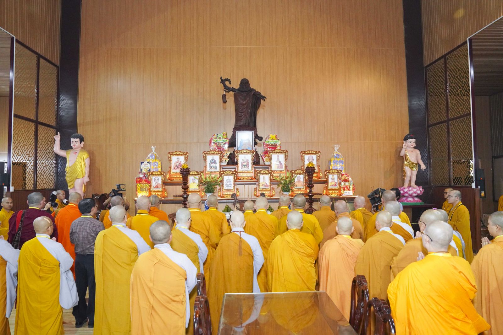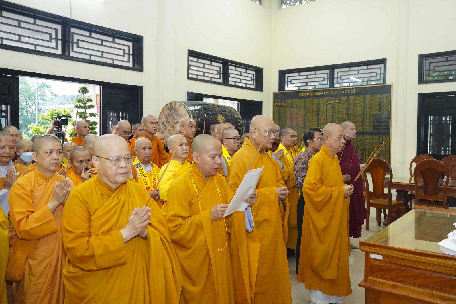 Tiếp đó, Ban Trị sự GHPGVN tỉnh Đồng Nai cũng đã trang nghiêm tổ chức lễ dâng hương tưởng niệm chư vị Tổ sư, chư bậc tiền bối hữu công, chư vị tiền nhiệm Ban Trị sự đã viên tịch tại Tổ đường Chùa Tỉnh Hội. Trong không gian linh thiêng, chư Tôn đức đã thành kính niêm hương bạch Phật, tưởng niệm công hạnh và đạo nghiệp của chư vị tiền nhân – những bậc đã dày công khai sơn tạo tự, hoằng dương Phật pháp, đặt nền móng vững chắc cho sự phát triển của Phật giáo tỉnh nhà qua các thời kỳ.