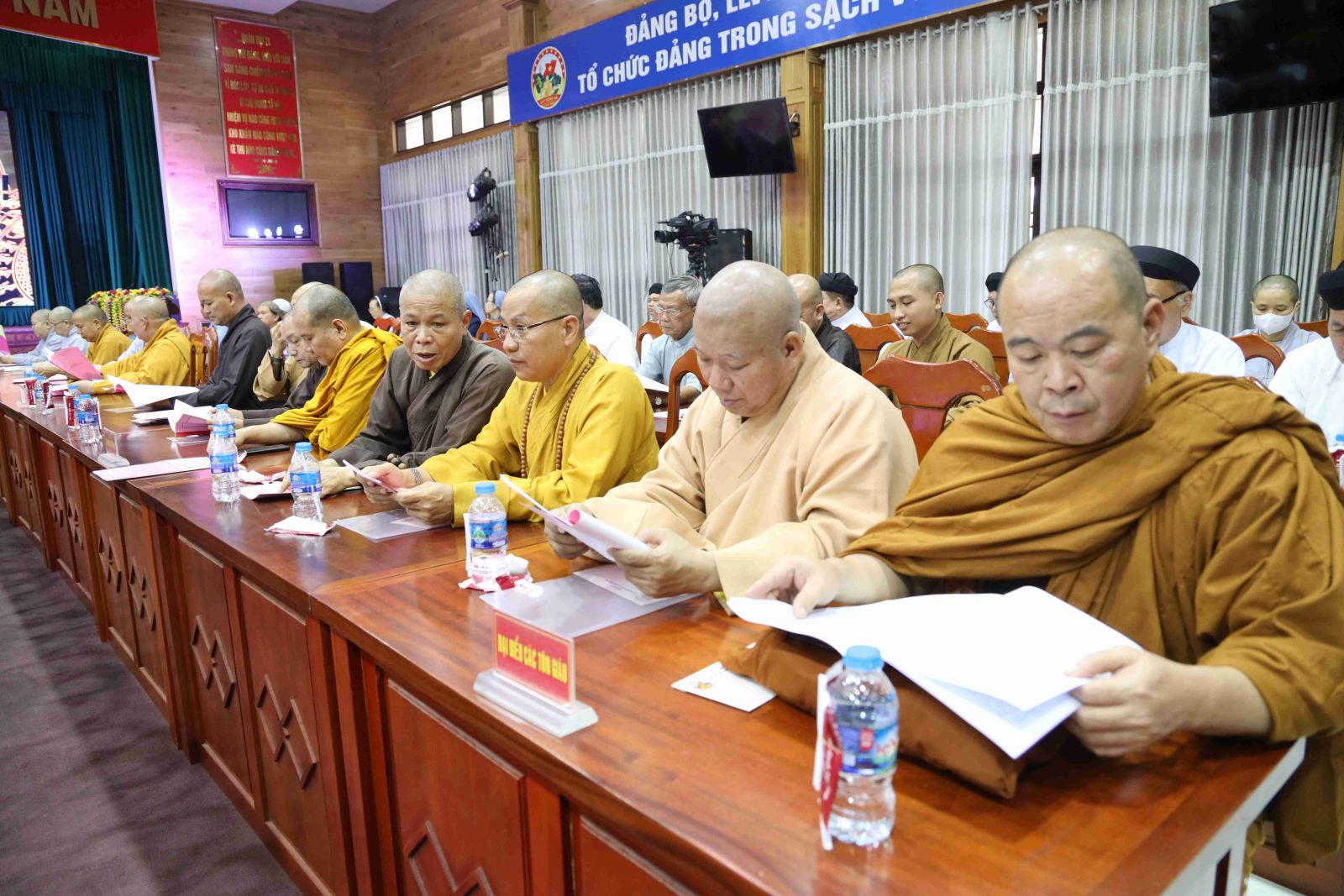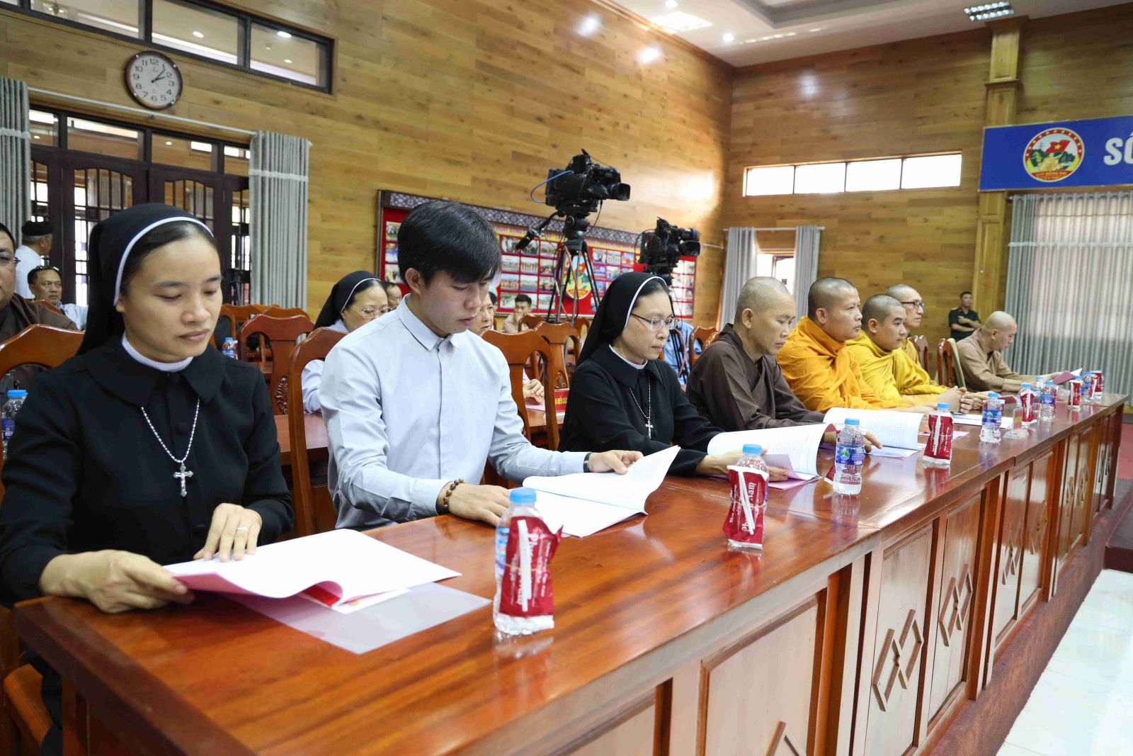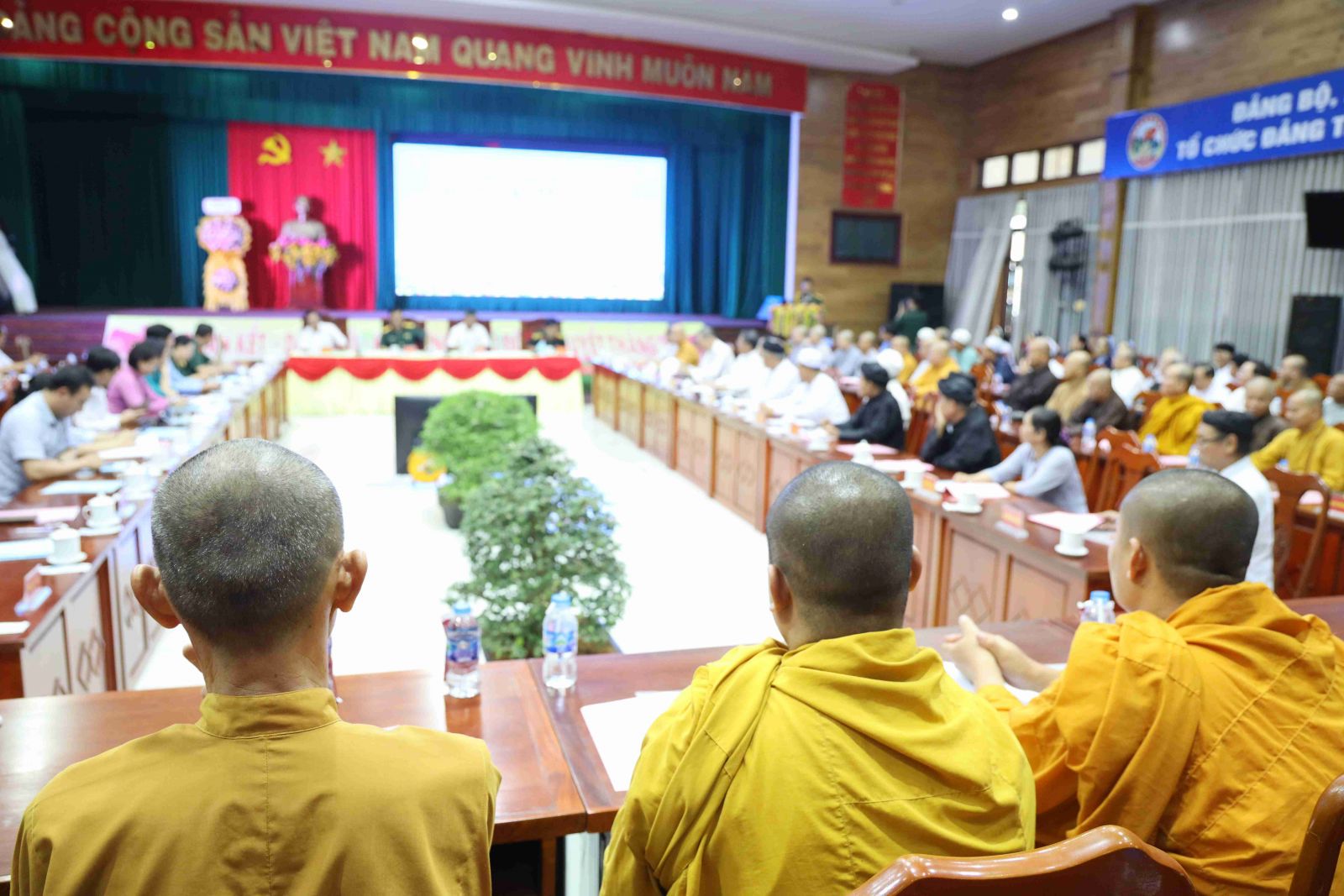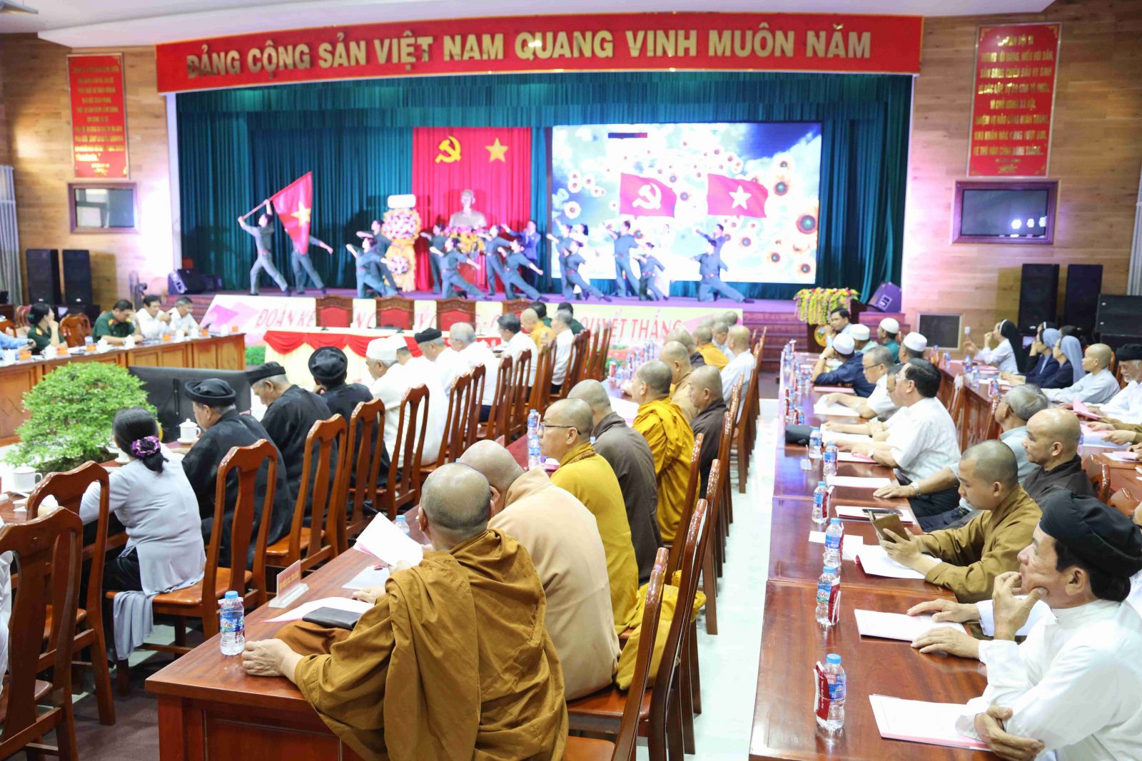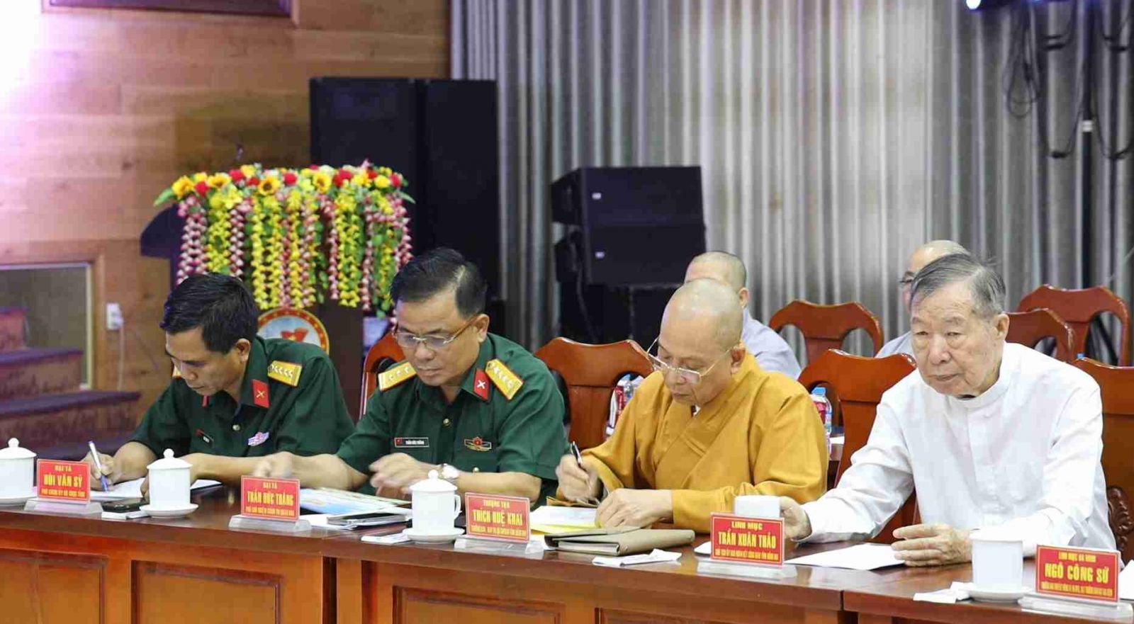 Trong tại buổi họp mặt, Thượng tọa Thích Huệ Khai - Trưởng ban Trị sự GHPGVN tỉnh, phát biểu trao đổi với các cơ quan chức năng cần quan tâm, giải quyết các vấn đề liên quan đến thủ tục đất đai, xây dựng, thủ tục thành lập cơ sở Tôn giáo Phật giáo, kiên quyết đấu tranh làm thất bại âm mưu, thủ đoạn của các thế lực thù địch lợi dụng vấn đề Tôn giáo chống phá nhà nước, các vấn đề an ninh mạng, phát huy hơn nũa tinh thần đại đoàn kết toàn dân tộc, tích cực tham gia chương trình nhà đại đoàn kết. Qua đó, Thượng tọa cũng trao đổi trong thời gian qua Ban Trị sự tỉnh đã xây dựng 10 căn nhà đại đoàn kết, song song đó cũng báo cáo điểm qua kế hoạch tổ chức Đại giới đàn Đạt Thanh diễn ra từ ngày 24-28/04/2024 (16-20/03 Giáp Thìn) tại chùa Tỉnh Hội.