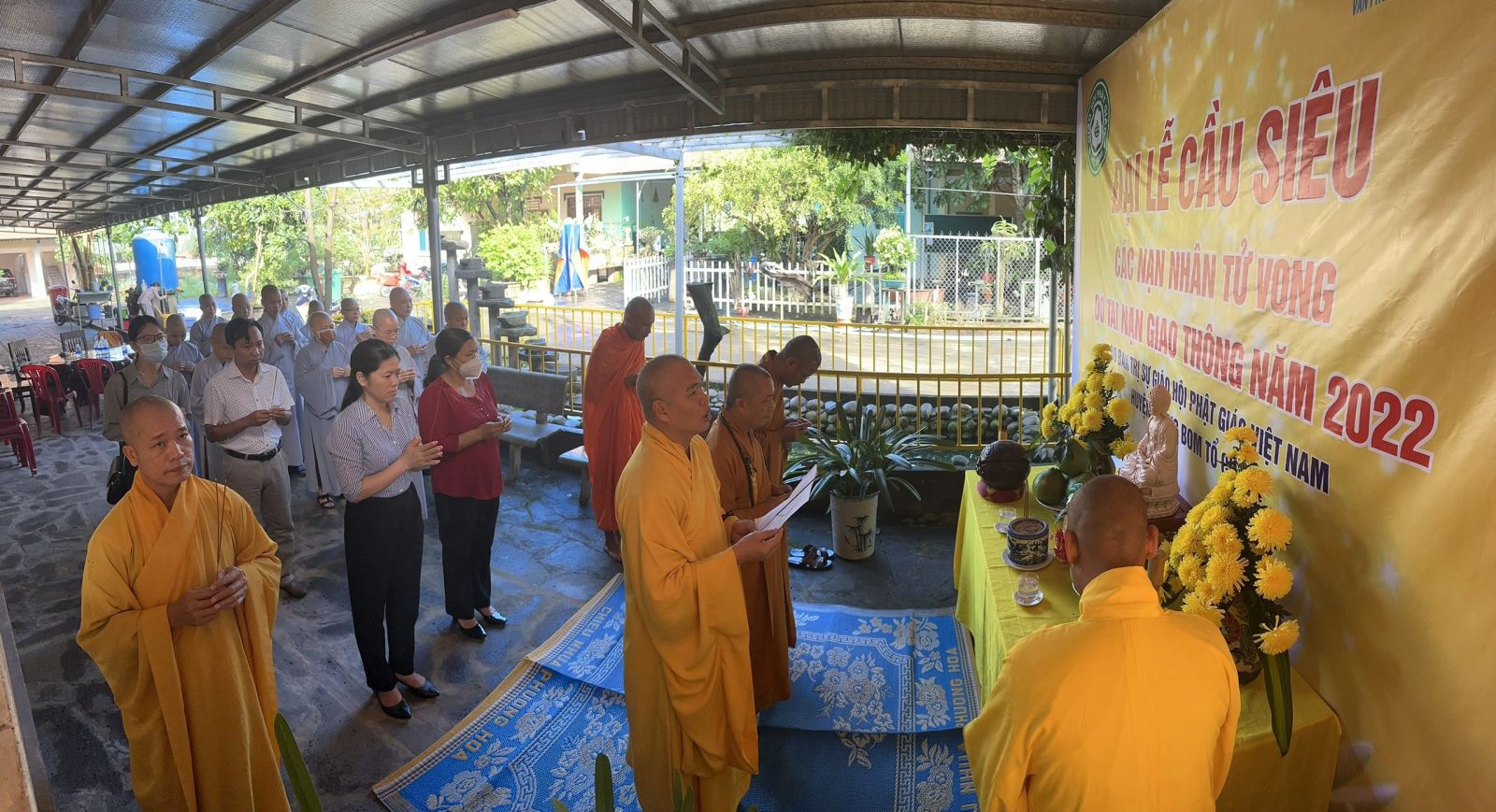 Buổi lễ trang nghiêm cử hành dưới sự chứng minh gia hộ của mười phương chư Phật và hiện tiền chư Tôn đức nhất cú nhất kệ cầu nguyện cho các nạn nhân tử vong do tai nạn giao thông được sớm nương nhờ nơi Phật đài được siêu sanh nơi miền an lạc.