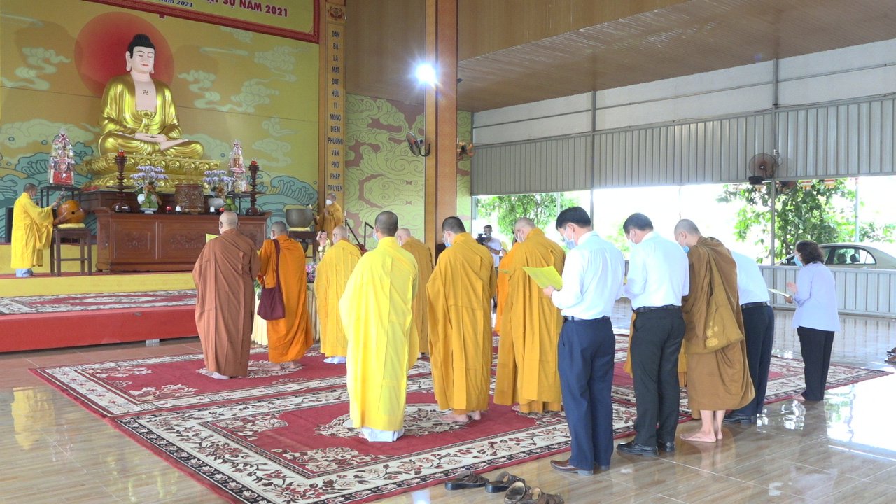 Hòa trong không khí, niềm hân hoan của cả nước đang đón mừng ngày kỷ niệm Đức Phật Thích Ca Mâu Ni đản sanh, Hòa thượng Trưởng Ban Trị sự PG tỉnh cùng chư tôn Đức lãnh đạo đã niêm hương, đảnh lễ và cầu nguyện mười phương chư Phật gia hộ “đất nước được thái bình, đại dịch Covid sớm qua đi, đem lại lợi ích cho chúng sanh và muôn loài”. Trong bối cảnh đất nước hiện nay đang chung tay phòng chống dịch bệnh, nên Đại lễ Phật Đản PL.2565 – DL.2021 đã thực hiện đúng theo thông tư và kế hoạch của Trung ương GHPGVN đã chỉ đạo.