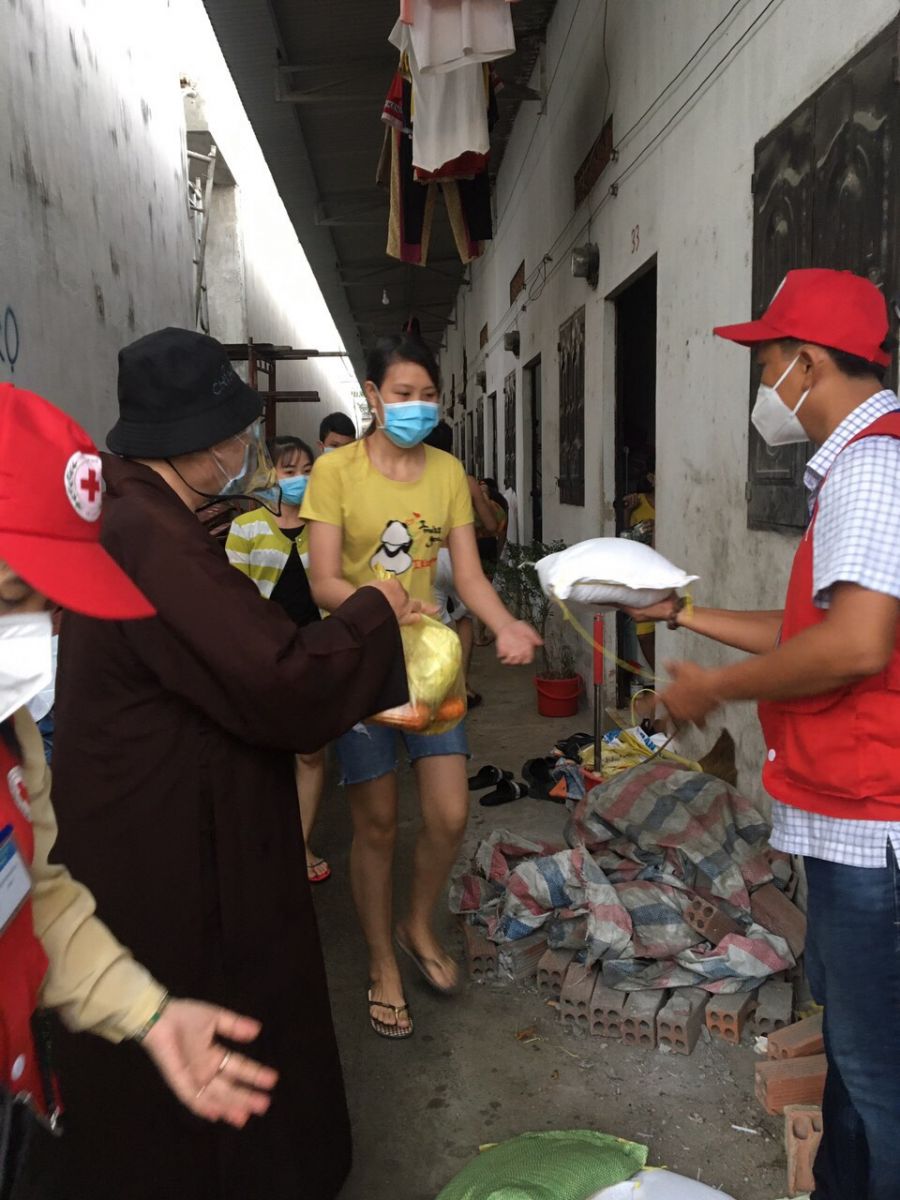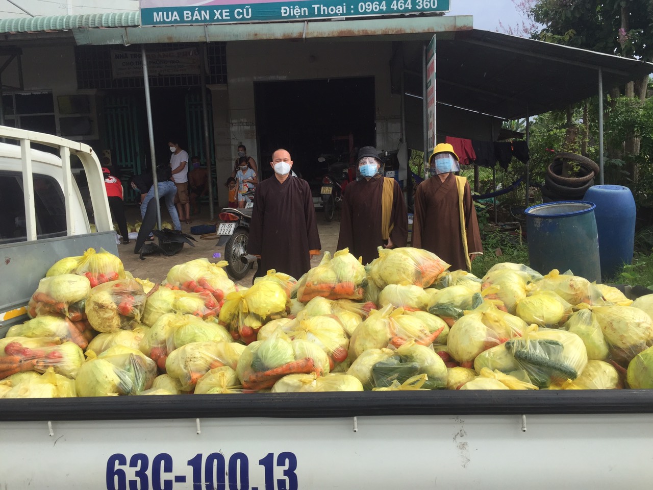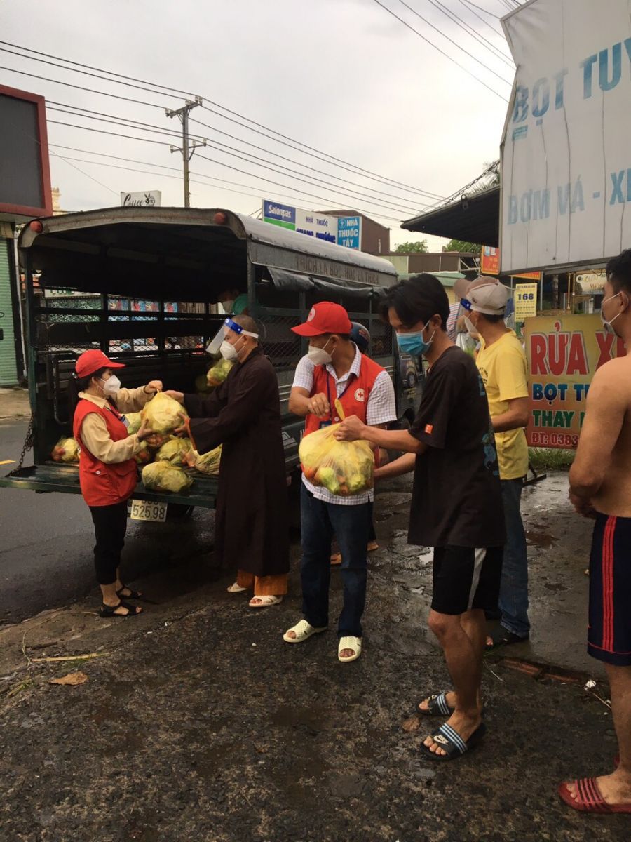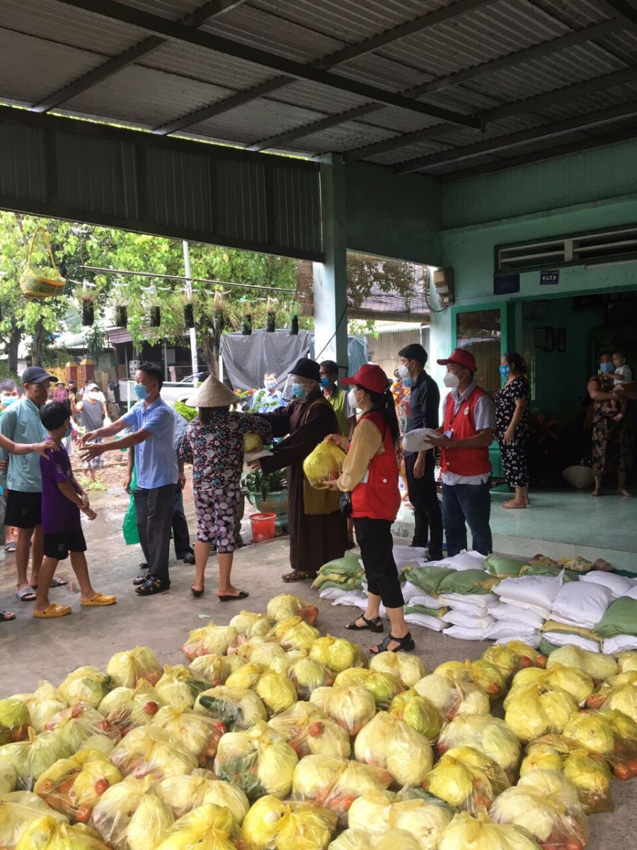 Cụ thể, đoàn đã đến từng ngõ, gõ từng nhà, trao từng phần quà đến tận tay bà con nghèo, khó khăn, thất nghiệp... tại các khu nhà trọ, thôn xóm (đa phần là lao động tự do bị mất việc do ảnh hưởng nặng nề bởi dịch bệnh Covid-19). Lần này, Ban Trị sự GHPGVN huyện Long Thành trao 600 phần quà là lương thực thiết yếu gồm: gạo, rau củ quả nhằm hỗ trợ phần nào trong đời sống giúp bà con vượt qua hoàn cảnh khó khăn hiện nay, tổng trị giá cho đợt phát quà này là 60 triệu đồng.