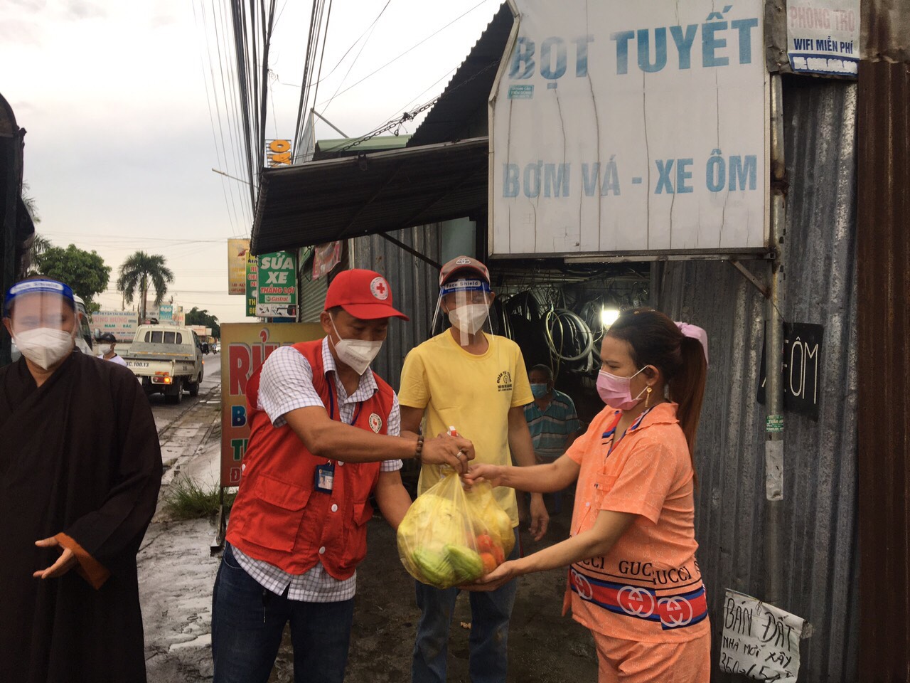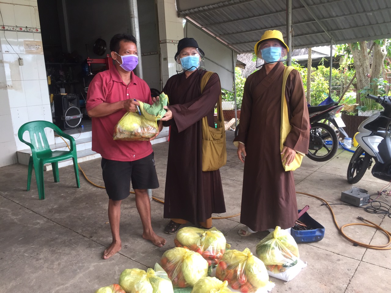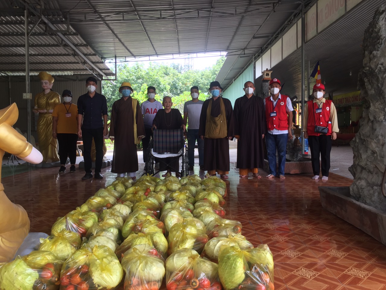 Cụ thể, đoàn đã đến từng ngõ, gõ từng nhà, trao từng phần quà đến tận tay bà con nghèo, khó khăn, thất nghiệp... tại các khu nhà trọ, thôn xóm (đa phần là lao động tự do bị mất việc do ảnh hưởng nặng nề bởi dịch bệnh Covid-19). Lần này, Ban Trị sự GHPGVN huyện Long Thành trao 600 phần quà là lương thực thiết yếu gồm: gạo, rau củ quả nhằm hỗ trợ phần nào trong đời sống giúp bà con vượt qua hoàn cảnh khó khăn hiện nay, tổng trị giá cho đợt phát quà này là 60 triệu đồng.