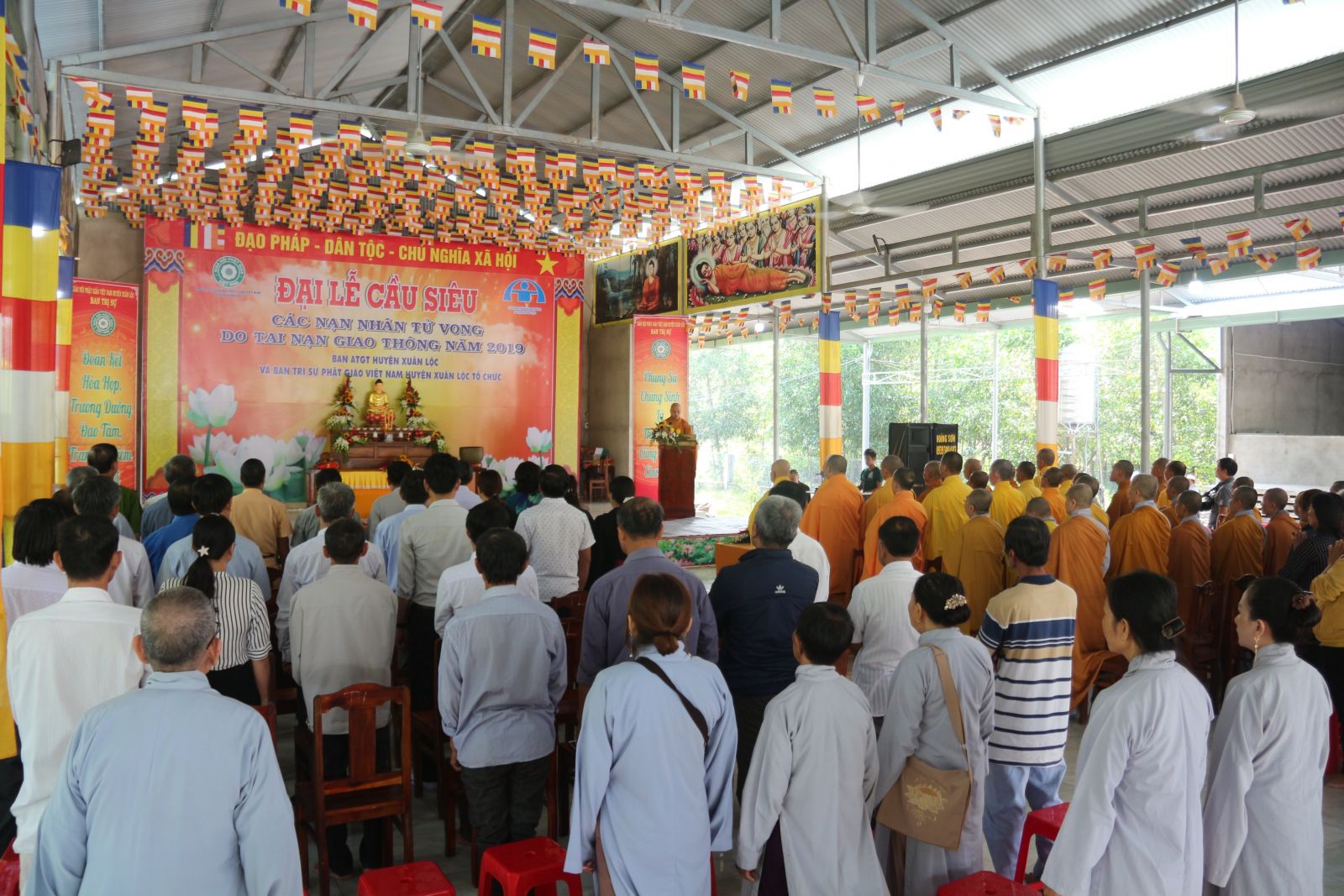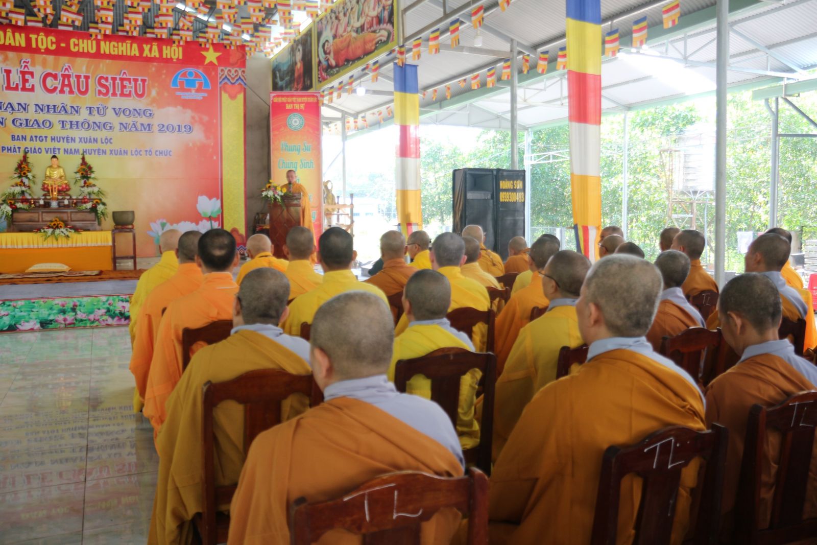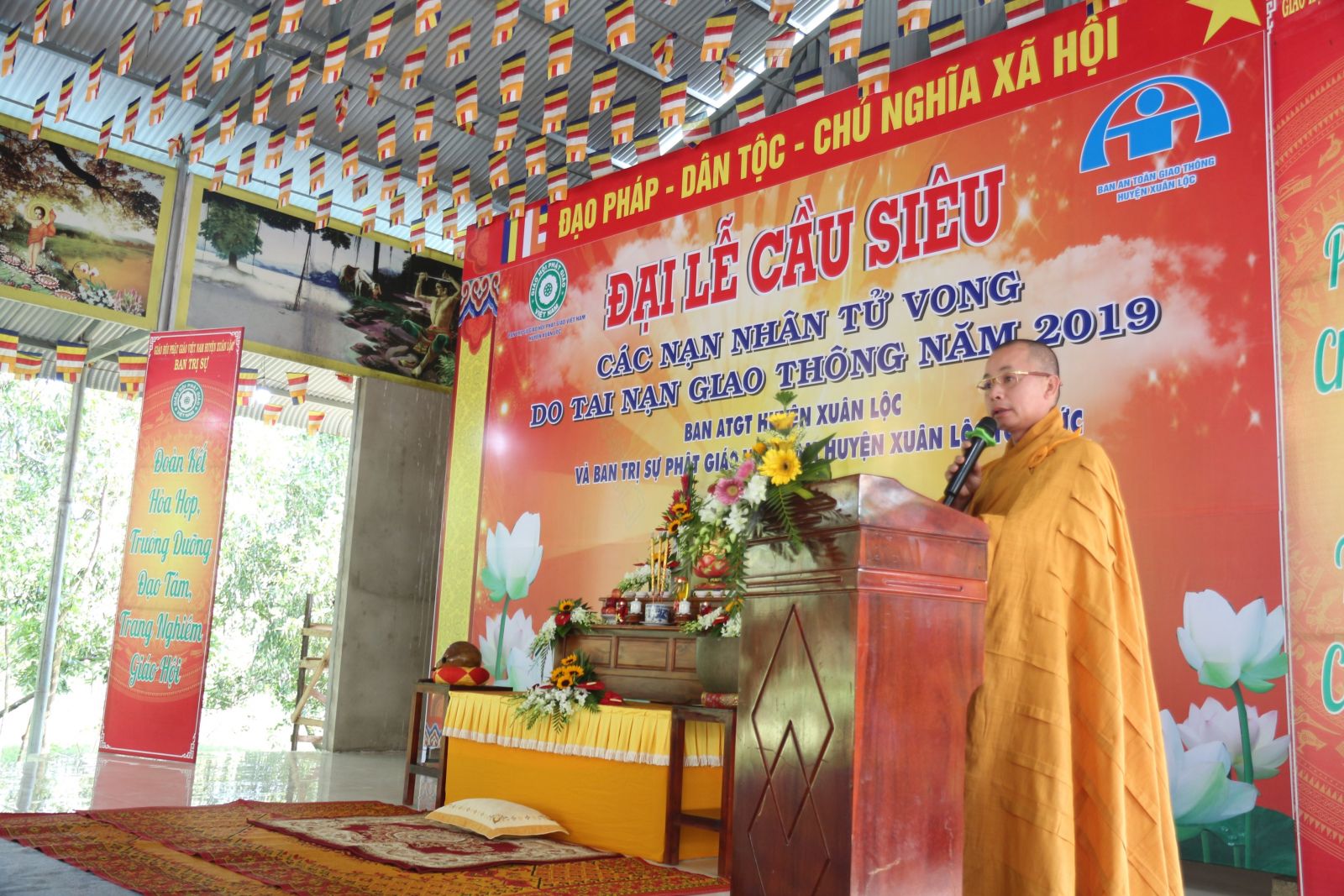 Thay mặt BTS GHPGVN huyện, ĐĐ. Thích Huệ Quang – Phó trưởng Ban thường trực GHPGVN huyện Xuân Lộc đọc diễn văn khai mạc buổi lễ, hoạt động tưởng niệm cho các nạn nhân mà Việt Nam cùng thế giới tổ chức là dịp để chúng ta tưởng nhớ và bày tỏ niềm thương cảm với những người xấu số khi tham gia giao thông, cùng chia sẻ nỗi đau và sự mất mát với người thân của họ. Đây cũng là một cơ hội để mỗi chúng ta nhắc nhở chính mình, người thân, bạn bè về tầm quan trọng của việc phải chủ động đóng góp phần tạo ra môi trường giao thông an toàn cho mình và cho cộng đồng. Mỗi người trong chúng ta phải biết nghiêm túc chấp hành luật giao thông, giúp đỡ nhau khi tham gia giao thông, mỗi gia đình và nhà trường phải hướng dẫn con em từ khi còn bé về ý thức trách nhiệm đối với bản thân khi tham gia giao thông.
