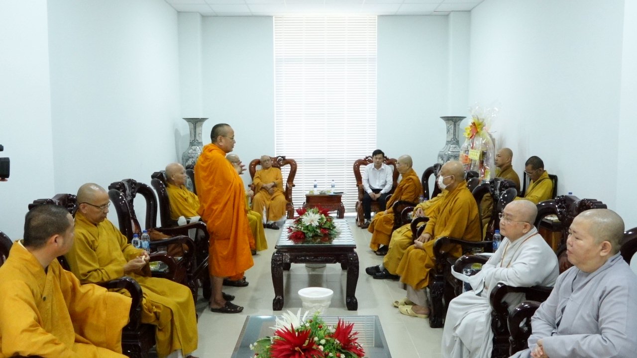 Đoàn lãnh đạo Ban trị sự cùng tháp tùng có TT. Thích Huệ Khai - Uỷ viên HĐTS, Phó trưởng ban thường trực BTS GHPGVN tỉnh; HT. Thích Giác Quang - Ủy viên HĐTS, Phó BTS, Trưởng ban Tăng sự GHPGVN tỉnh; HT. Thích Phước Tú – Phó BTS, Trưởng ban Nghi lễ GHPGVN tỉnh; HT. Thích Minh Ngạn – Phó BTS. Trưởng ban Kiểm soát GHPGVN tỉnh; HT. Thích Bửu Chánh – Uỷ viên thường trực HĐTS, Phó ban kiêm Chánh thư ký BTS GHPGVN tỉnh; TT. Thích huệ Sanh – Phó BTS, Trưởng ban Phật Giáo Quốc tế GHPGVN tỉnh; TT. Thích Huệ Nghiệp – Trưởng ban Pháp chế BTS GHPGVN tỉnh; ĐĐ. Thích Thiện Trí – Phó thư ký tổng hợp BTS GHPGVN tỉnh; ĐĐ. Thích Thiện Mỹ - Trưởng ban TTTT GHPGVN tỉnh; Ni sư Thích nữ Diệu Trí – Trưởng ban Kinh tế Tài chánh GHPGVN tỉnh; Ni sư Thích nữ Huệ Tâm - Uỷ viên thường trực BTS GHPGVN tỉnh cùng chư tôn đức Tăng Ni thường trực Ban Trị sự GHPGVN tỉnh đã đến thăm và chúc mừng.
