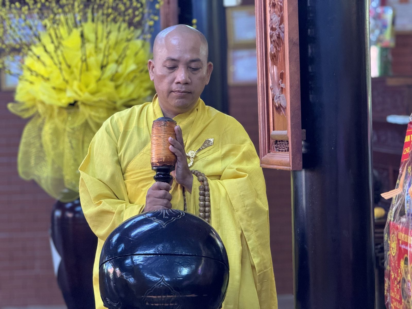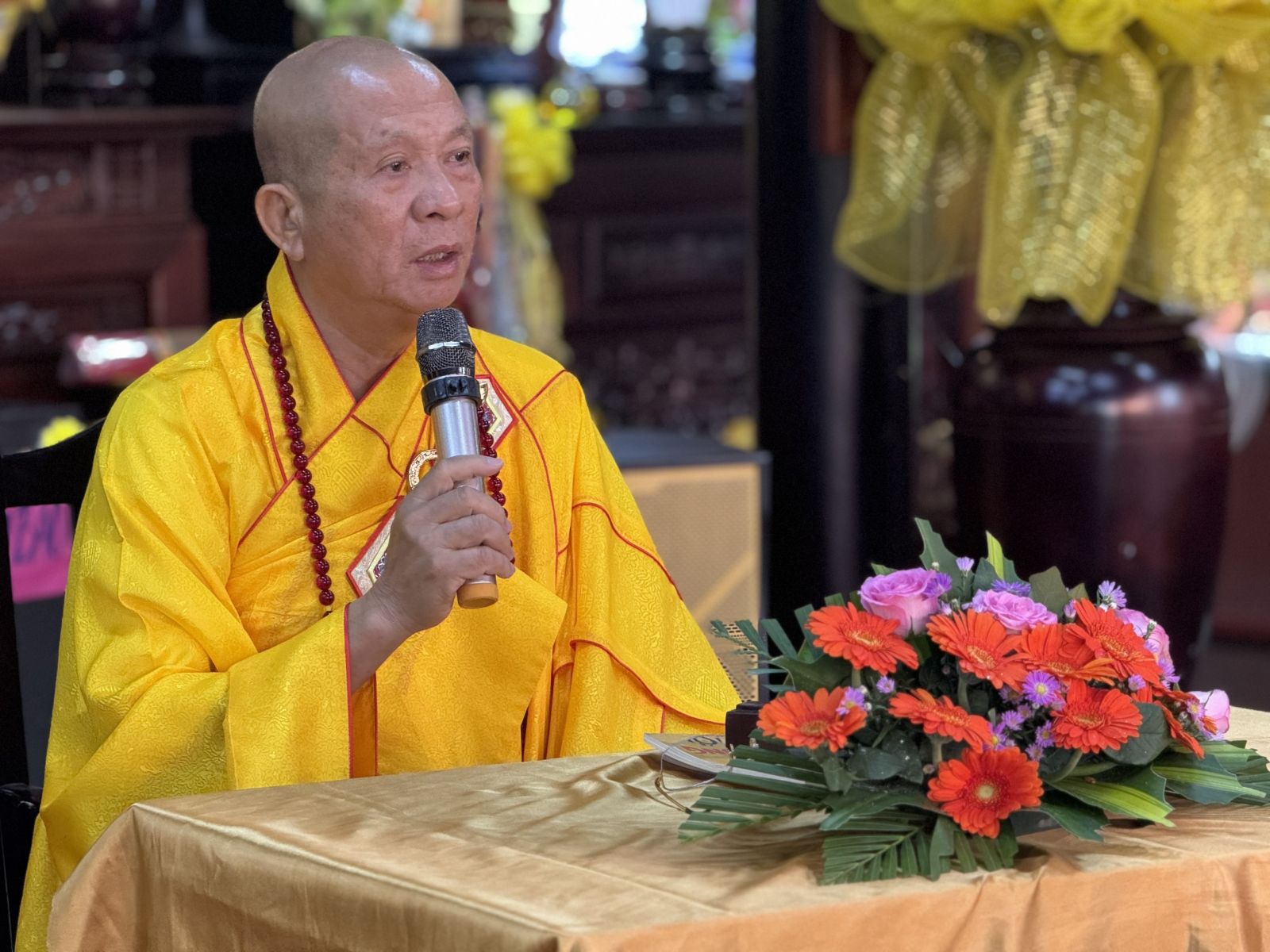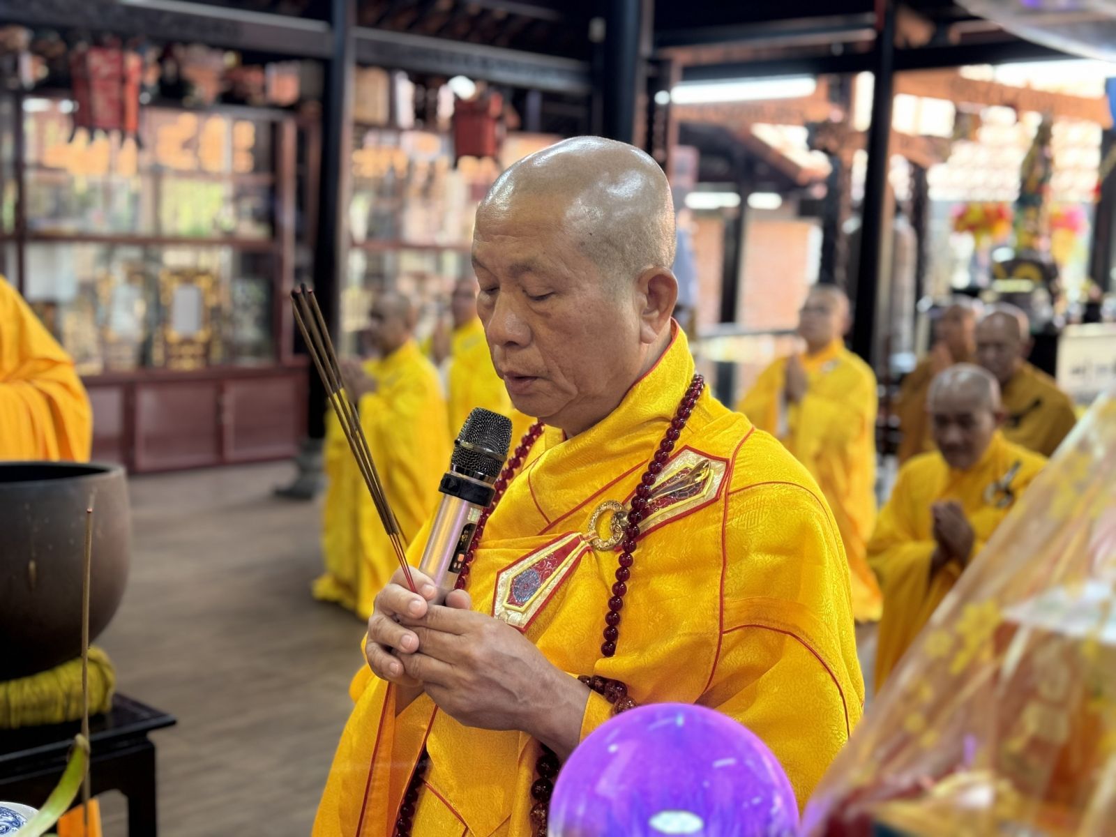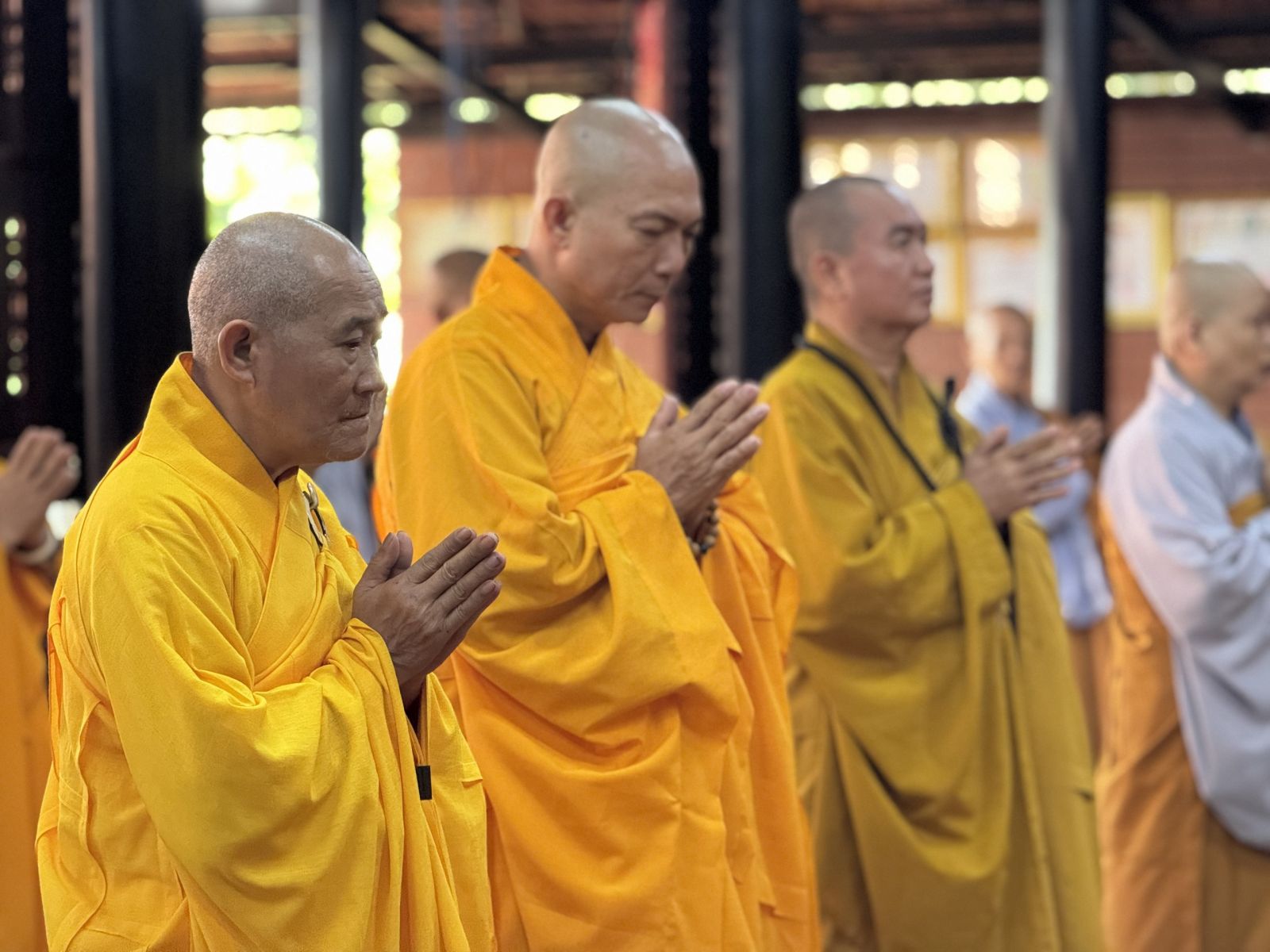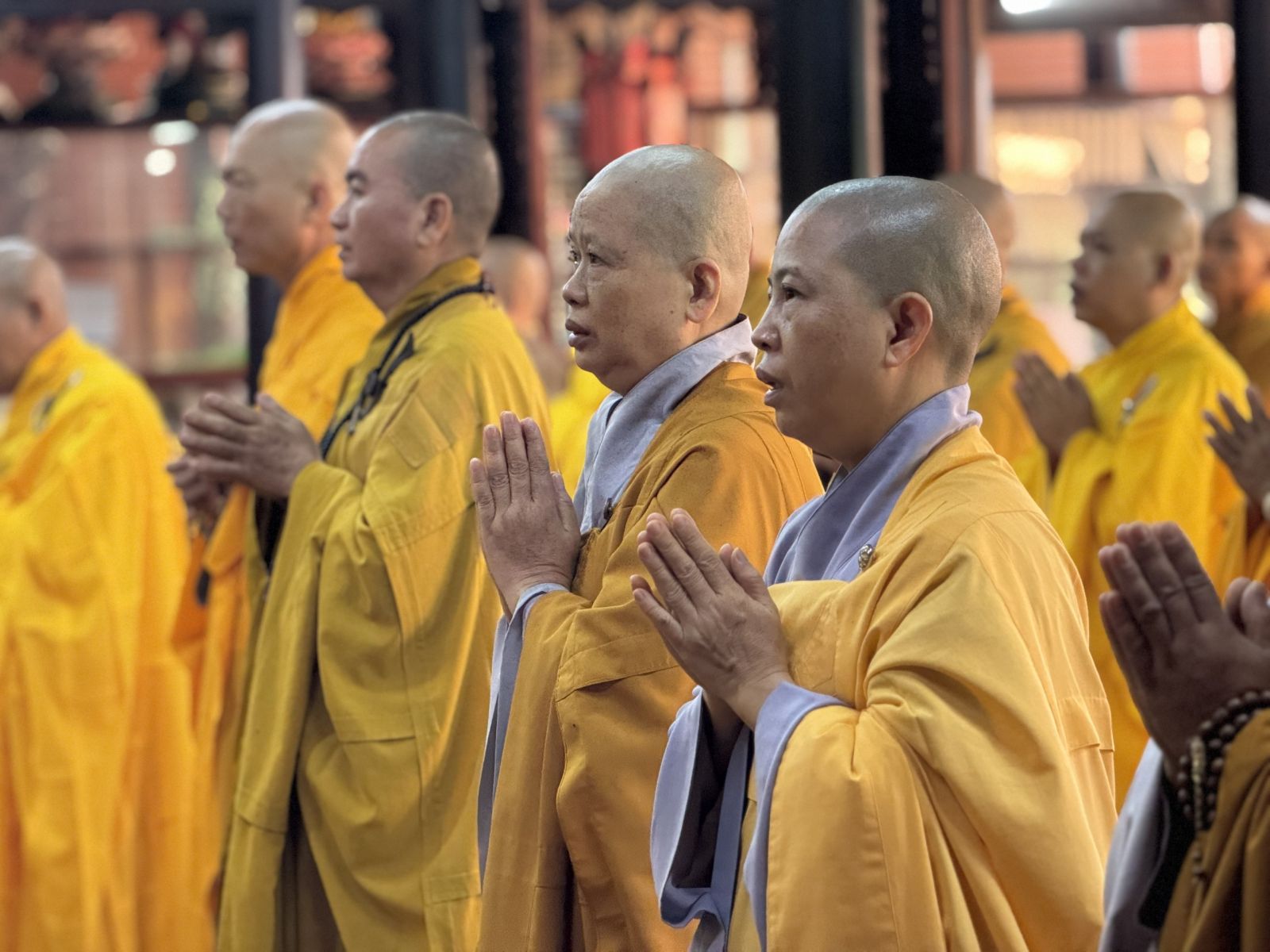 Tại Chánh điện Chùa Hoàng Mai, Thượng toạ Thích Pháp Đăng – Uỷ viên Thường trực Ban Trị sự tỉnh, Cố vấn BTS GHPGVN huyện niêm hương bạch Phật; toàn thể đại chúng thành kính đảnh lễ Tam bảo, thực hiện nghi thức Yết-ma Bố-tát, tụng giới.