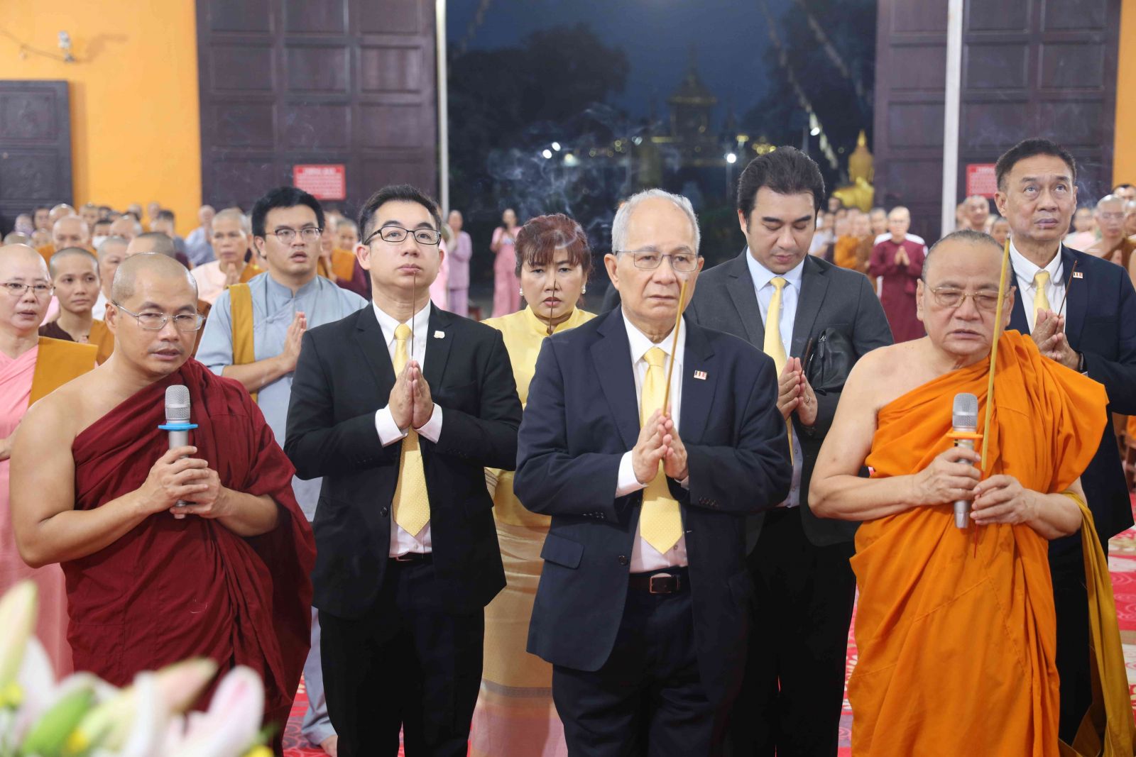 Tháp tùng có cư sĩ Montian Thananart- Tổng Thư ký WFB, Phó Viện trưởng WBU; cư sĩ Samarn Sudto- cố vấn WFB và WBU; cư sĩ Kittitat Thaiarry- Giám đốc, Văn phòng Viện trưởng WBU; cư sĩ Idanont Thaiarry- Tổng Thư ký Hội Liên hữu Thanh niên Phật tử thế giới; cư sĩ Jeerapat Panskun; nữ cư sĩ Naruechol Barvornphibul- đồng Giám đốc WFB; cư sĩ Henry Hien Dang- cố vấn Chủ tịch WFB, Chủ tịch Ủy ban Thường trực Thống nhất và Đoàn kết.