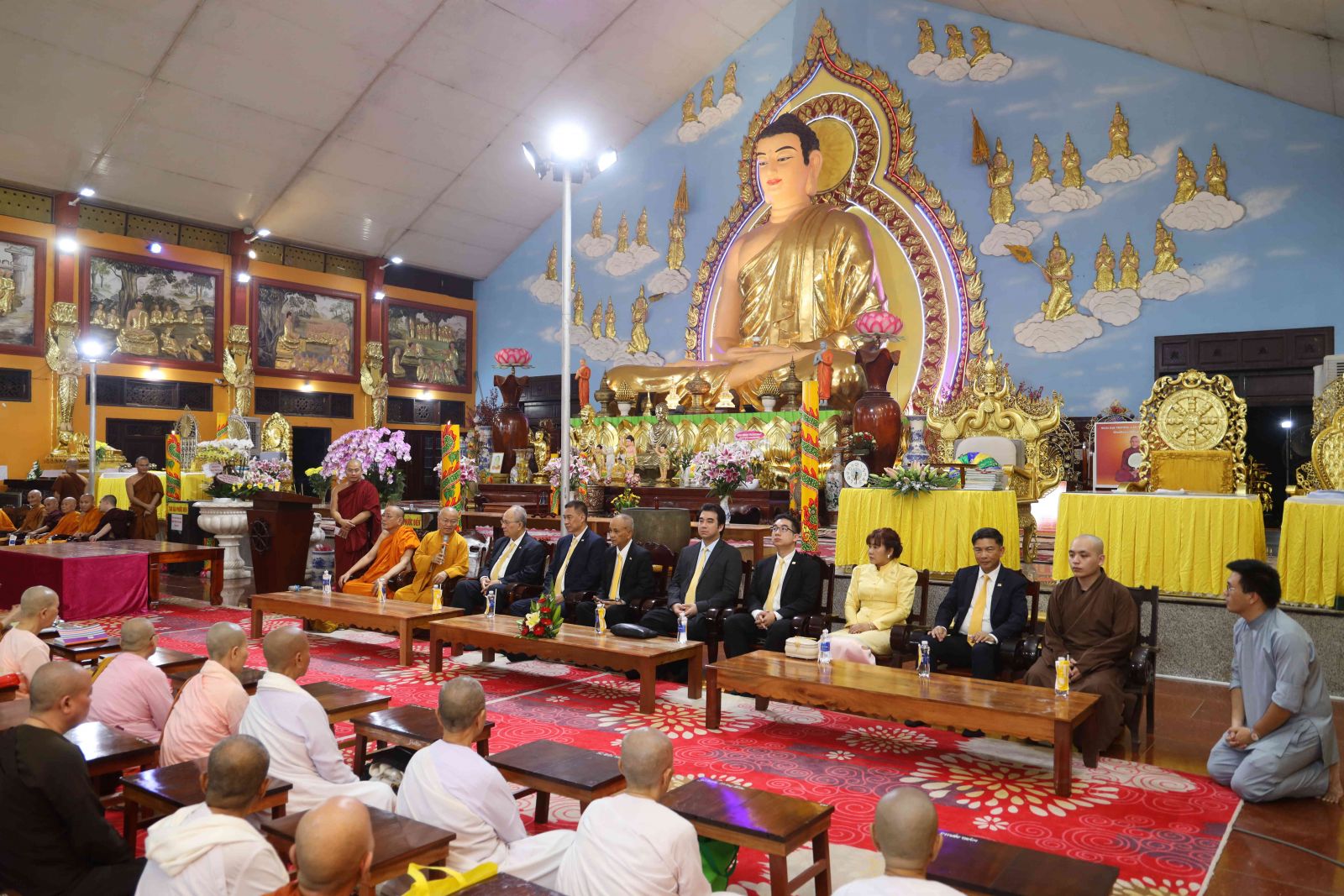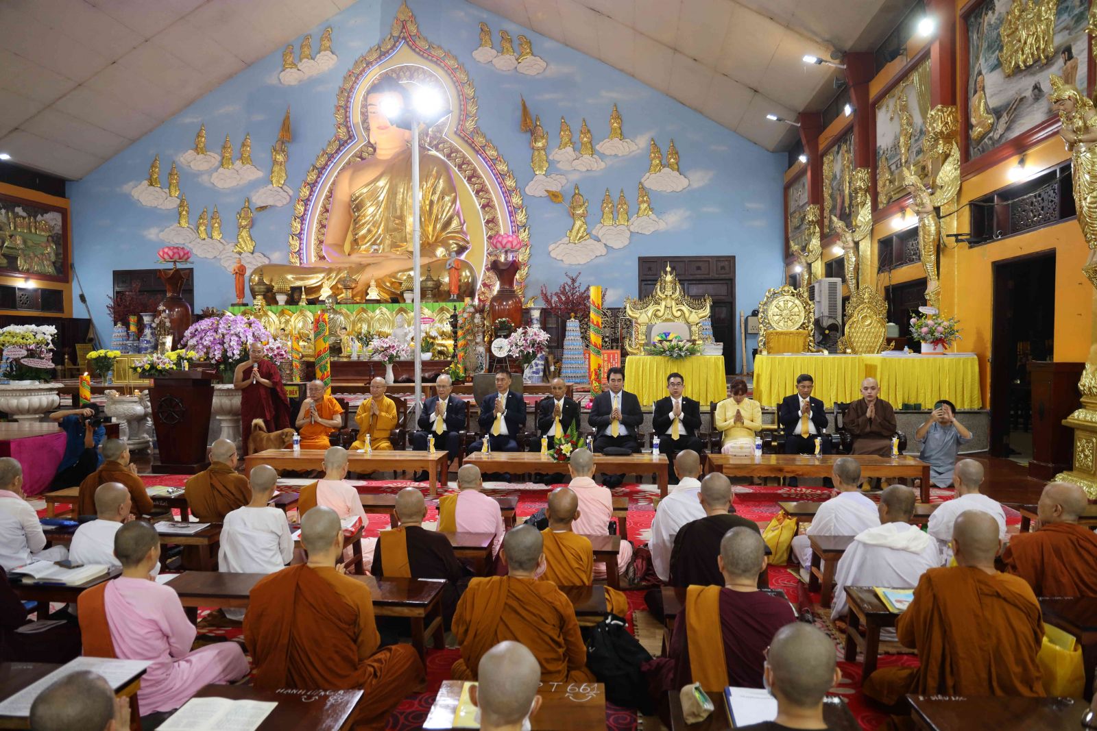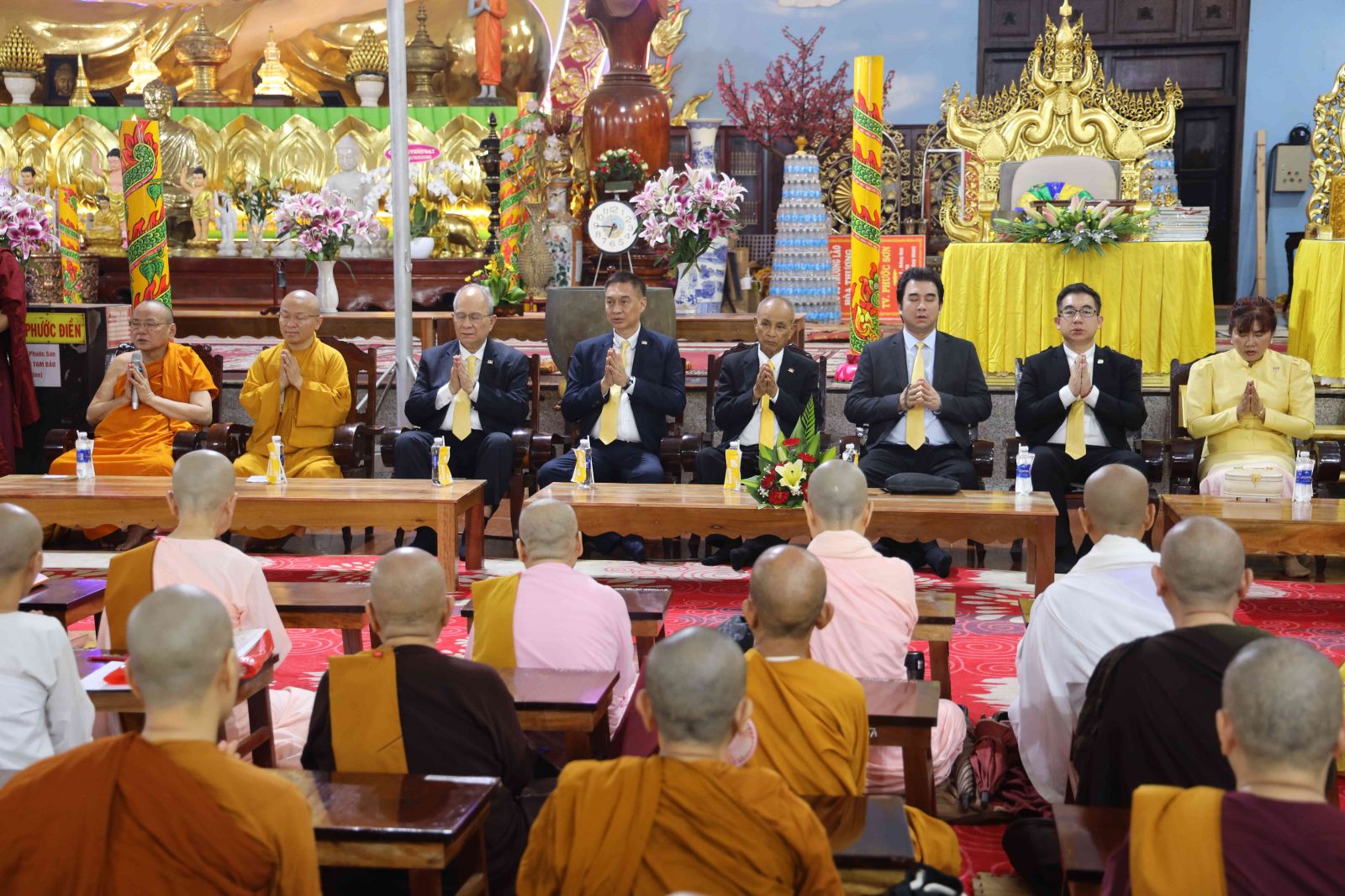 Tiếp đoàn có Thượng tọa Thích Nhật Từ, Ủy viên Thường trực Hội đồng Trị sự, Phó Thường trực ban Phật giáo Quốc tế T.Ư; Hòa thượng Thích Bửu Chánh- Ủy viên Thư ký Hội đồng Trị sự, Phó Trưởng ban Thường trực Ban Trị sự Phật giáo tỉnh Đồng Nai, Trụ trì Thiền viện cùng 500 chư vị Tăng, Tu nữ và phật tử đồng tham dự