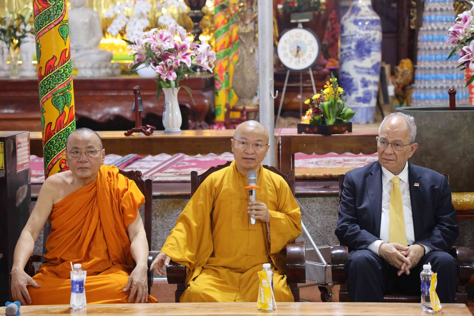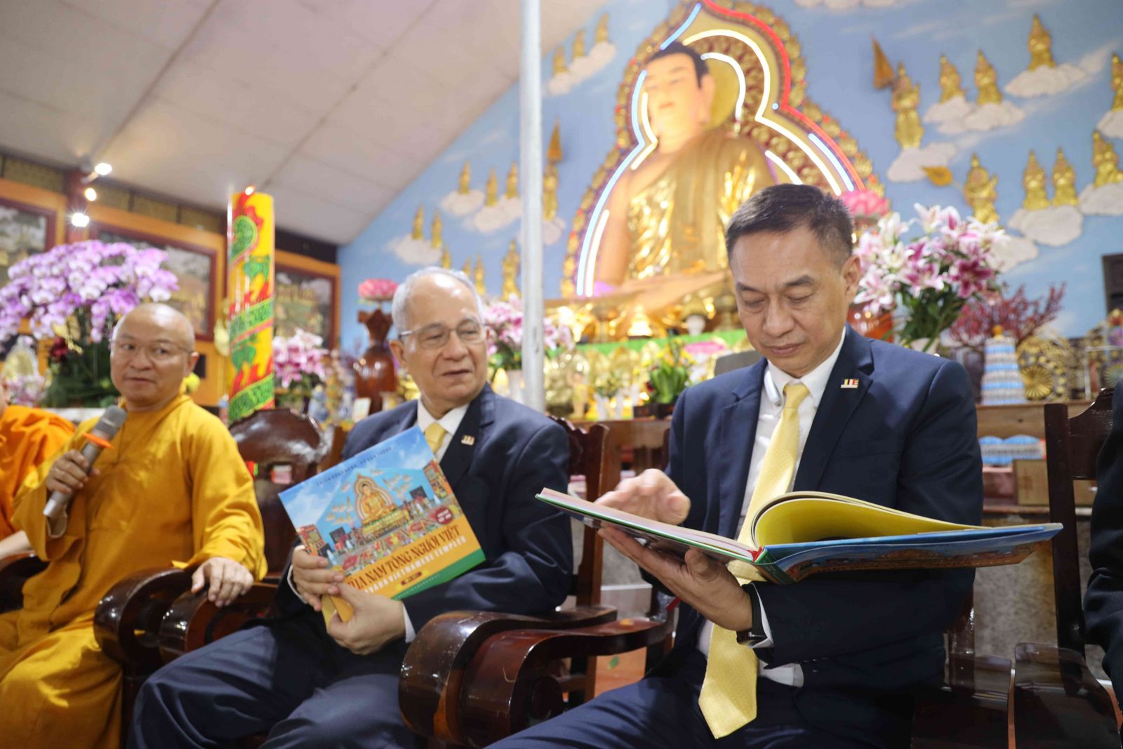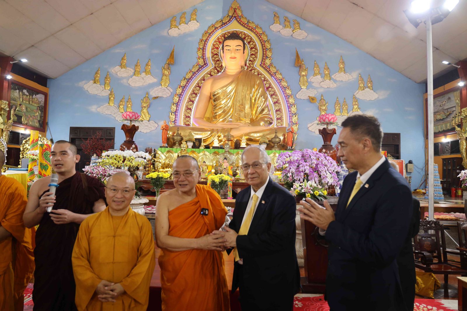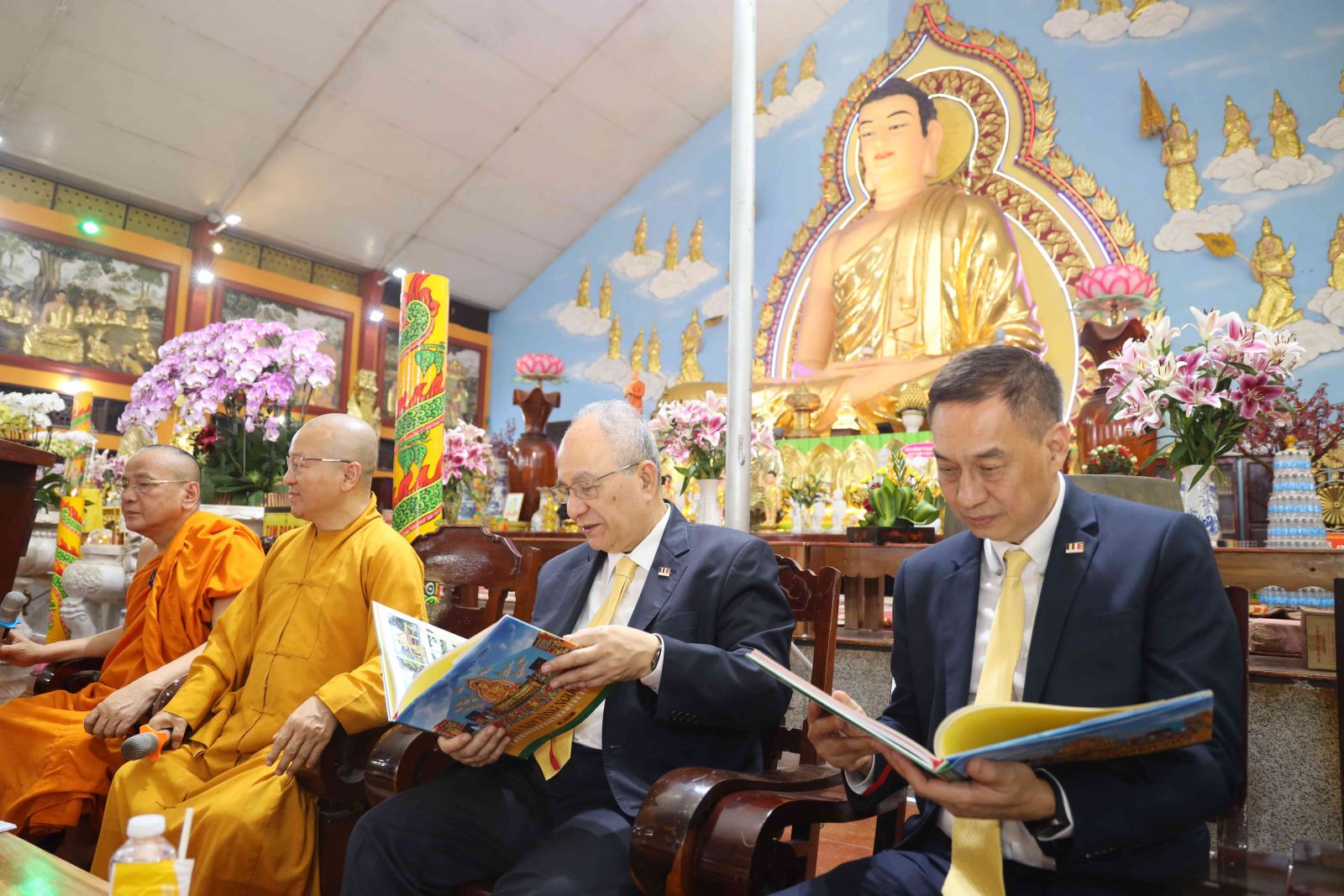 Tiếp đoàn có Thượng tọa Thích Nhật Từ, Ủy viên Thường trực Hội đồng Trị sự, Phó Thường trực ban Phật giáo Quốc tế T.Ư; Hòa thượng Thích Bửu Chánh- Ủy viên Thư ký Hội đồng Trị sự, Phó Trưởng ban Thường trực Ban Trị sự Phật giáo tỉnh Đồng Nai, Trụ trì Thiền viện cùng 500 chư vị Tăng, Tu nữ và phật tử đồng tham dự