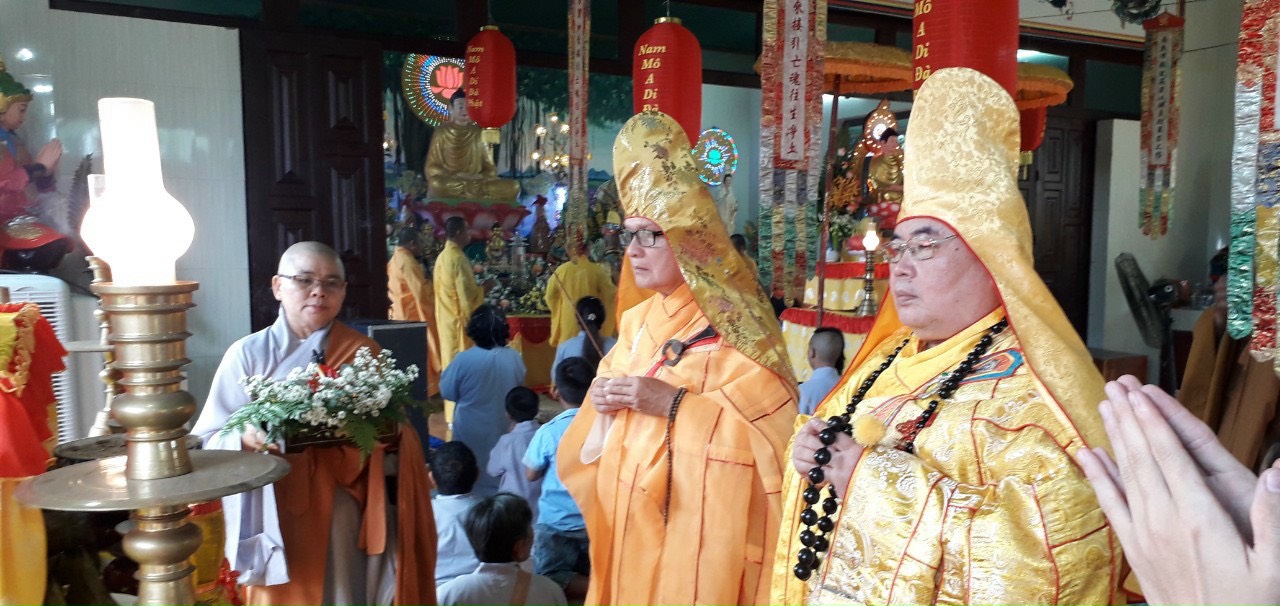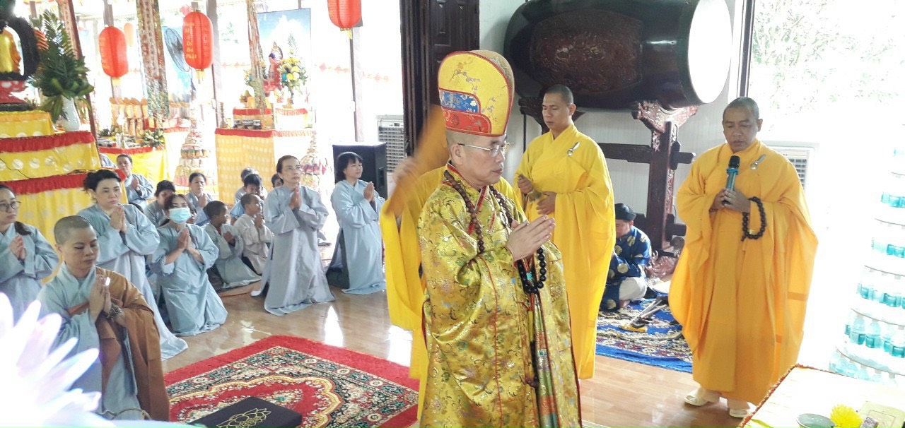 Quang lâm chứng minh Đại lễ có HT. Thích Thiện Hoằng, HT. Thích Huệ Nhẫn, HT. Thích Thiện Đồng đồng chứng minh BTS GHPGVN huyện; HT. Thích Tâm Minh - Phó BTS tỉnh, Trưởng BTS GHPGVN huyện, chứng minh Trai đàn; TT. Thích Huệ Quang - UV BTS tỉnh, Phó Trưởng Thường trực BTS GHPGVN huyện; TT. Thích Chánh Huệ - Phó Trưởng Ban BTS GHPGVN huyện, Sám chủ Trai đàn; ĐĐ. Thích An Quang - UV BTS tỉnh, Chánh Thư ký BTS GHPGVN huyện cùng chư tôn thiền Tăng trụ trì các tự viện. Về phía chư tôn đức Ni có NT. TN Như Định UVHĐTS, Phó Trưởng Phân Ban Ni giới GHPGVN tỉnh Bình Dương cùng chư tôn thiền đức Ni trụ trì các tự viện đồng chứng minh buổi lễ.