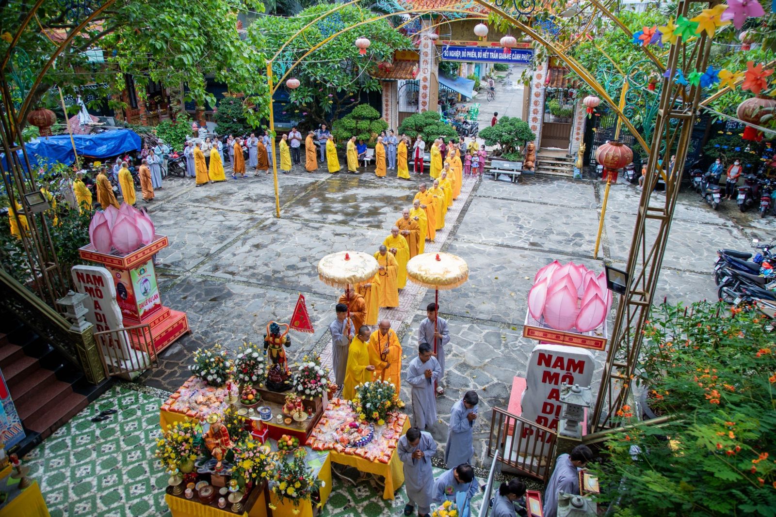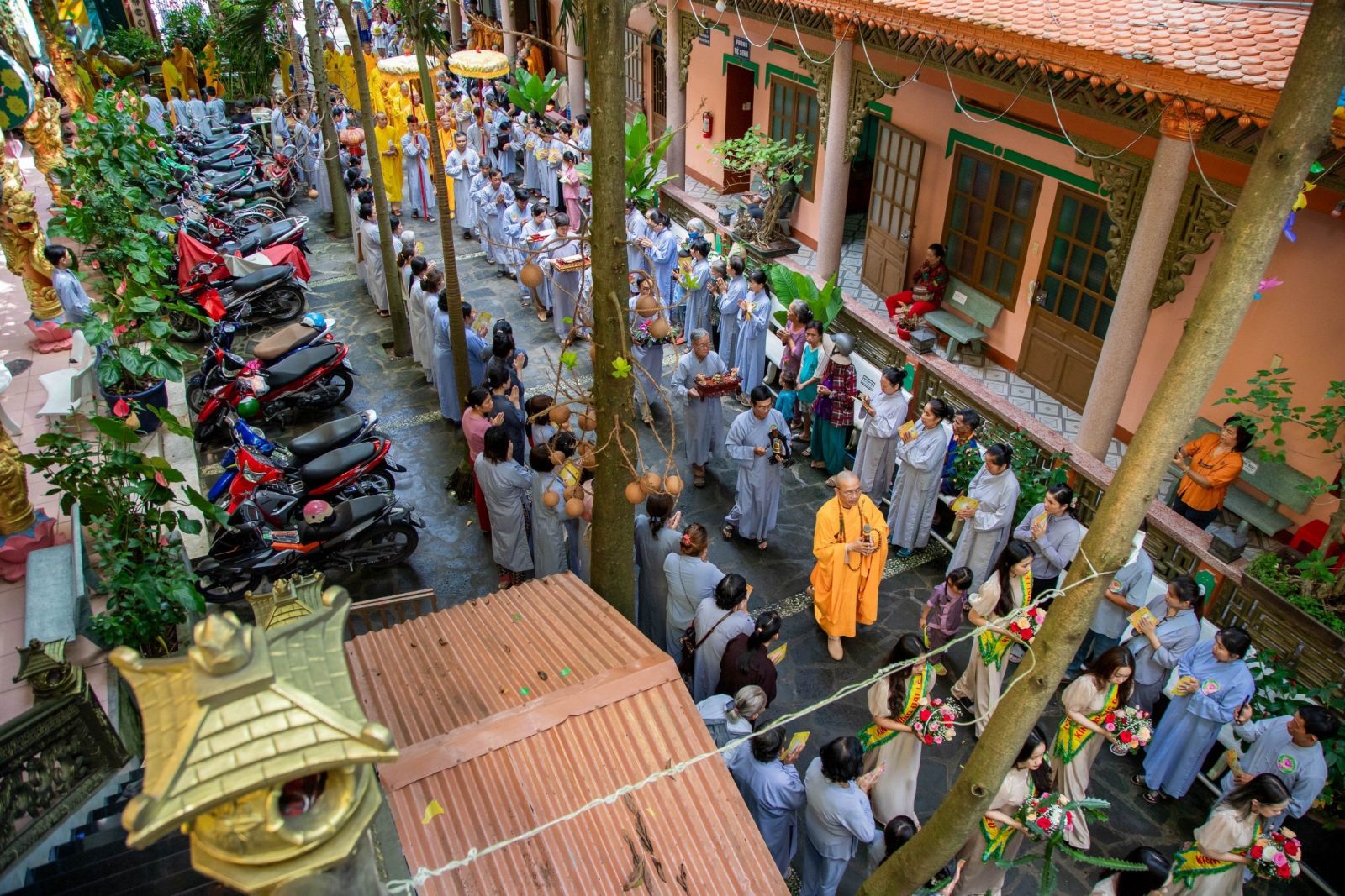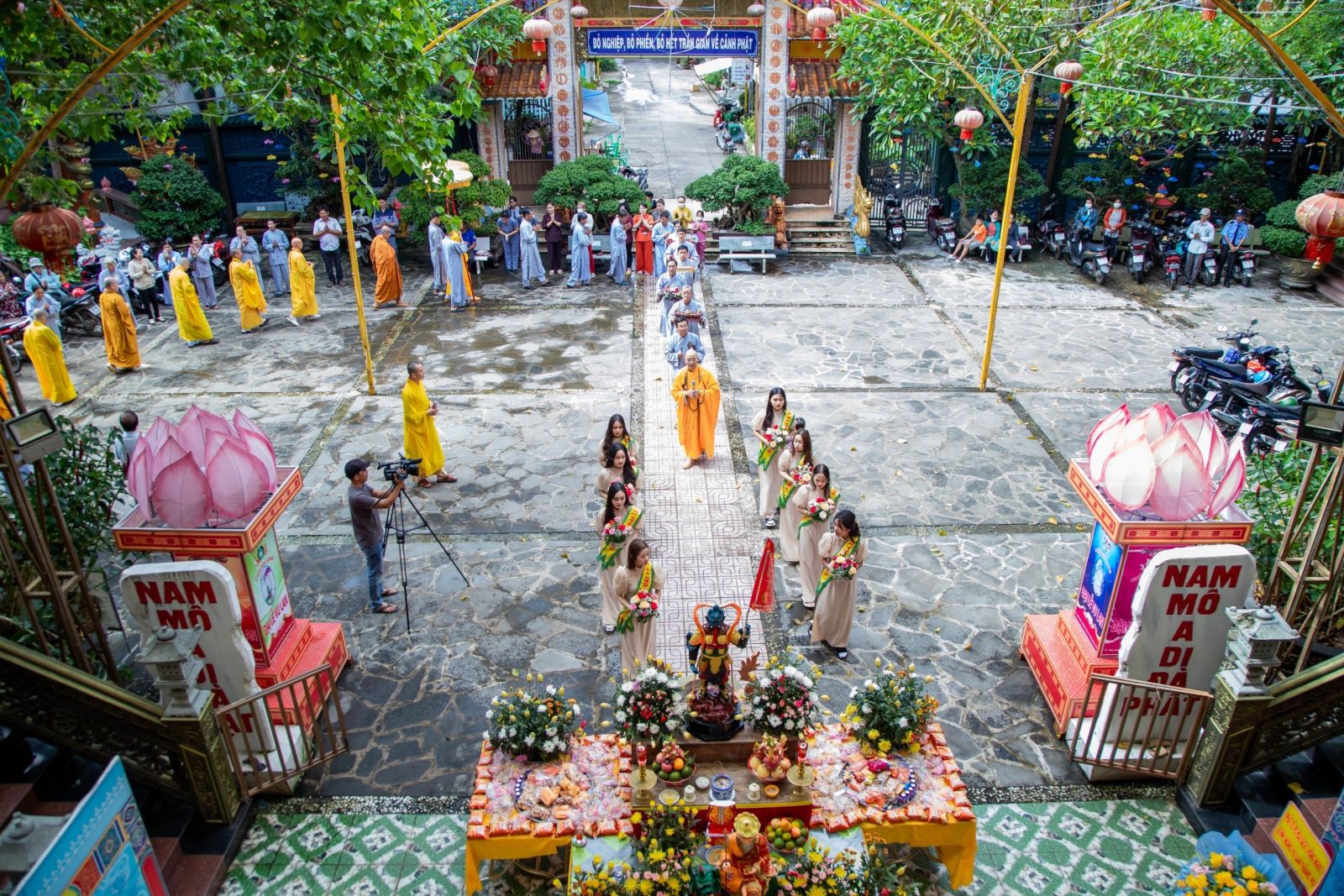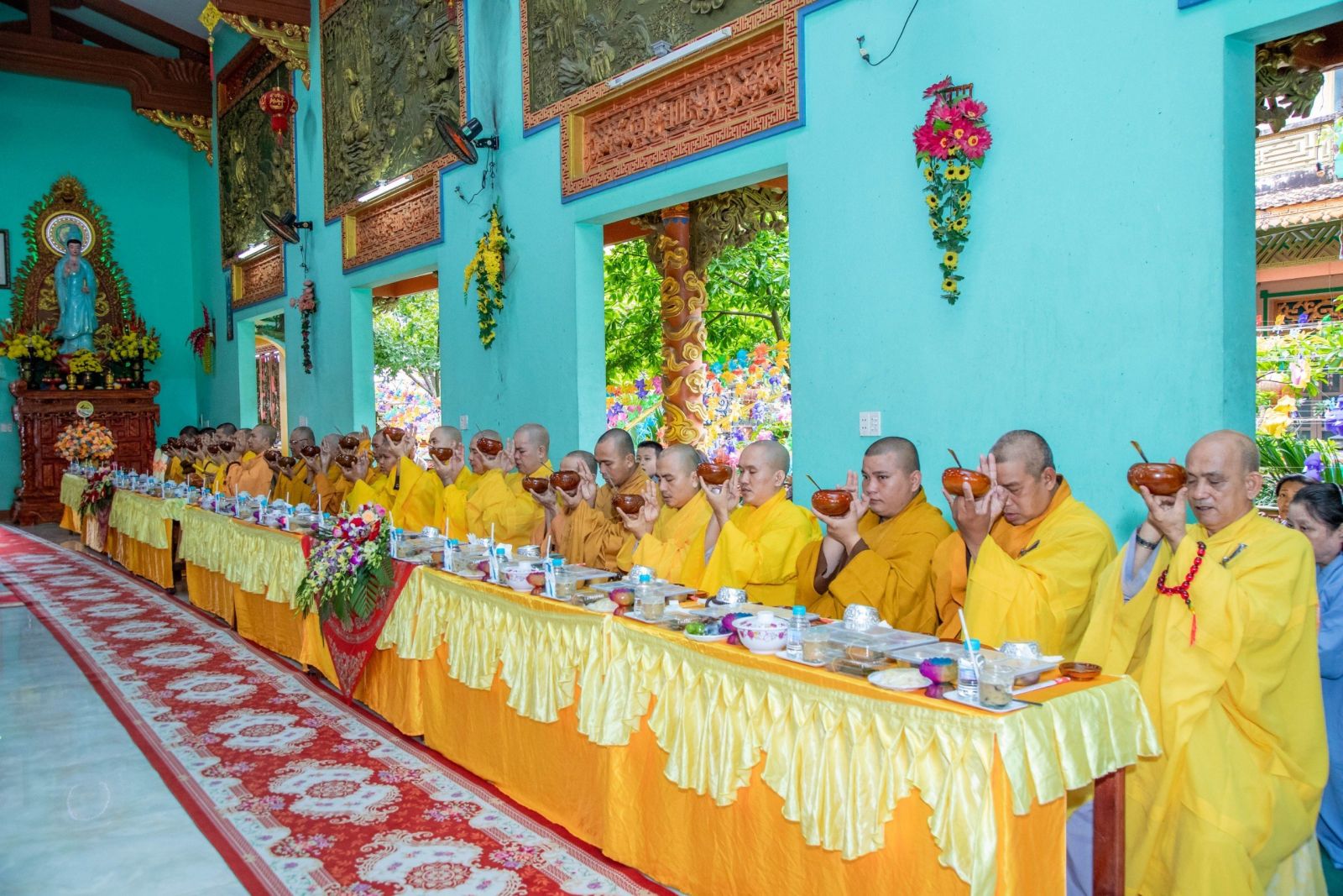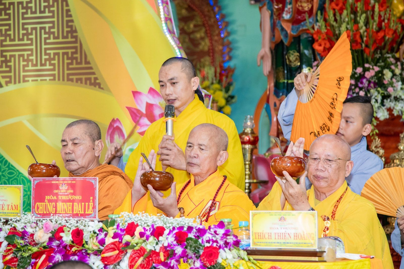 Chư Tôn thượng tọa chứng minh đã cử hành nghi thức tuyên sớ Vu Lan Báo Hiếu và nghi thức cúng quá đường theo truyền thống của cố đô Huế. Thượng tọa Trụ trì Chùa Bửu Long đã hướng dẫn quý Phật tử thành kính dâng cúng Pháp y, tịnh tài, tịnh vật lên chư Tôn thiền đức Tăng Ni.