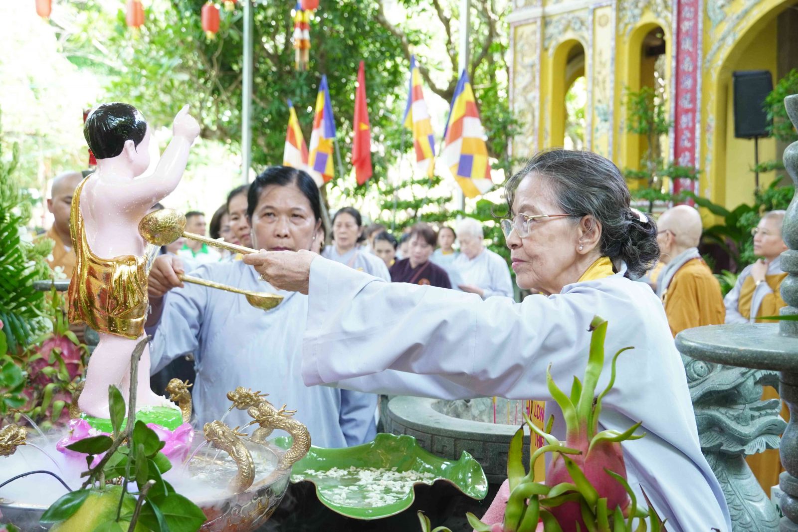 Tắm Phật là nghi lễ mang màu sắc văn hóa tâm linh của tất cả những người con Phật. Hàng năm, cứ mỗi mùa Phật đản, những người con Phật trên khắp năm châu lại tổ chức nghi lễ dâng nước cúng dường tắm Phật. Mỗi năm vào dịp lễ Phật đản thì nghi lễ tắm Phật đều được diễn ra rất trang nghiêm, trọng thể.
