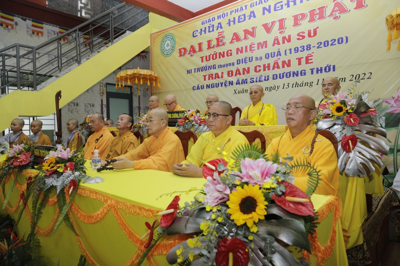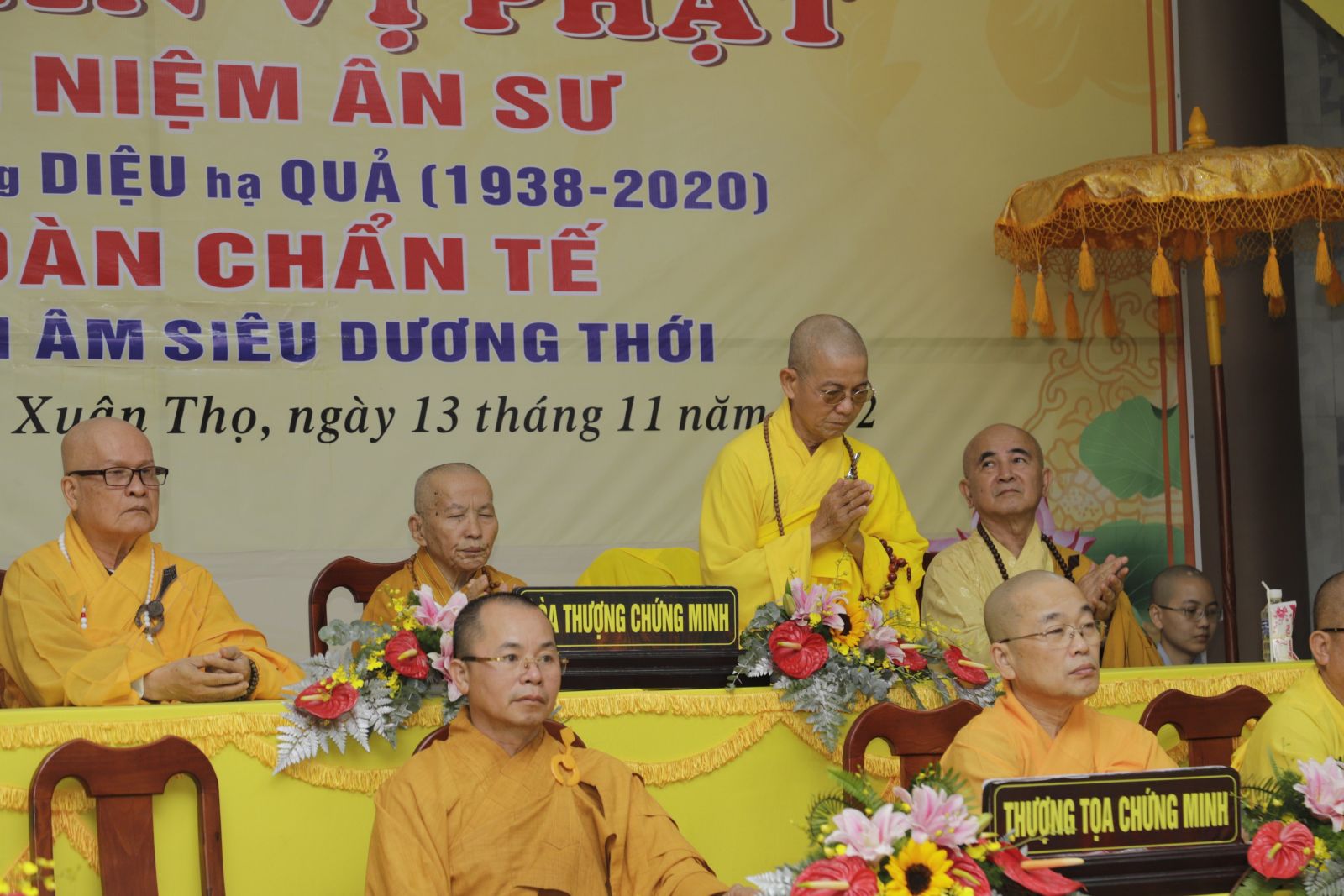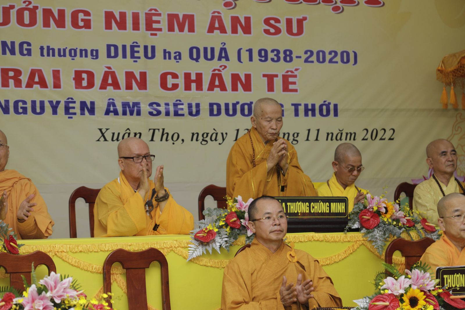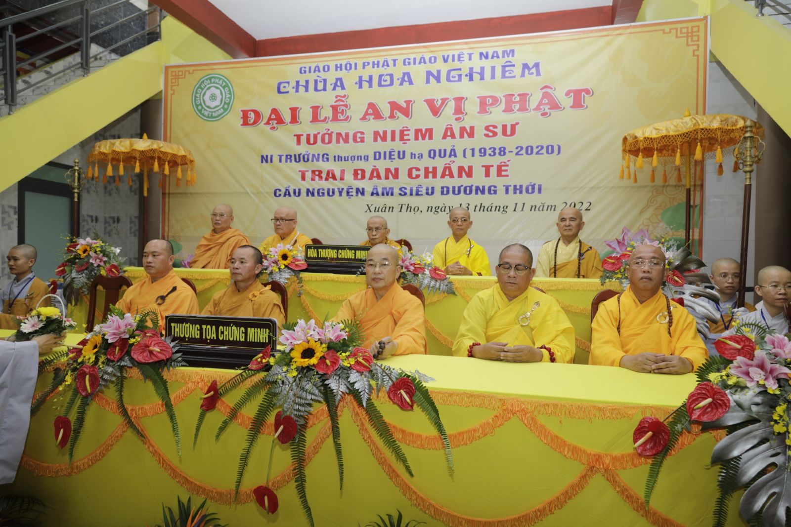 Quang lâm chứng minh Đại lễ có HT. Thích Giác Quang, HT. Thích Huệ Nhẫn, HT. Thích Thiện Đồng - Đồng Chứng minh BTS GHPGVN huyện; TT. Thích Giác Tân – UV BTS tỉnh Đồng Tháp, Phó Ban GDPG, Phó Ban Hoằng pháp GHPGVN tỉnh Đồng Tháp, Phó Trưởng ban Thường trực BTS GHPGVN huyện Châu Thành, tỉnh Đồng Tháp; TT. Thích Huệ Quang - UV BTS tỉnh, Phó Trưởng Ban Thường trực BTS GHPGVN huyện Xuân Lộc; TT. Thích Chánh Huệ - Phó Trưởng Ban BTS GHPGVN huyện Xuân Lộc, Sám chủ Trai đàn; ĐĐ. Thích Quảng Vinh – Phó trưởng ban BTS GHPGVN huyện Xuân Lộc; ĐĐ. Thích An Quang - UV BTS tỉnh, Chánh Thư ký BTS GHPGVN huyện Xuân Lộc; NT. TN Giác Thành - Cố vấn Ni Viện Vạn Hạnh, TP. HCM; NT. TN Giác Trung - Phó Trưởng Phân Ban Ni giới GHPGVN TP. Hồ Chí Minh, Phó Trưởng BTS, Trưởng Phân Ban Ni giới GHPGVN TP. Thủ Đức, TP. Hồ Chí Minh; NT. TN Diệu Đạo - Trưởng Phân Ban Ni giới GHPGVN Quận Phú Nhuận, TP. Hồ Chí Minh; NS. TN Như Thức - Trưởng Phân Ban Ni Giới GHPGVN tỉnh Trà Vinh; NS. TN Huệ Ngọc - Trưởng Phân Ban Ni giới GHPGVN huyện Xuân Lộc cùng cùng chư tôn Hòa thượng, chư Thượng tọa, chư tôn thiền Tăng Ni BTS GHPGVN huyện Xuân Lộc, trụ trì các tự viện, pháp lữ đồng chứng minh và tham dự buổi lễ.
