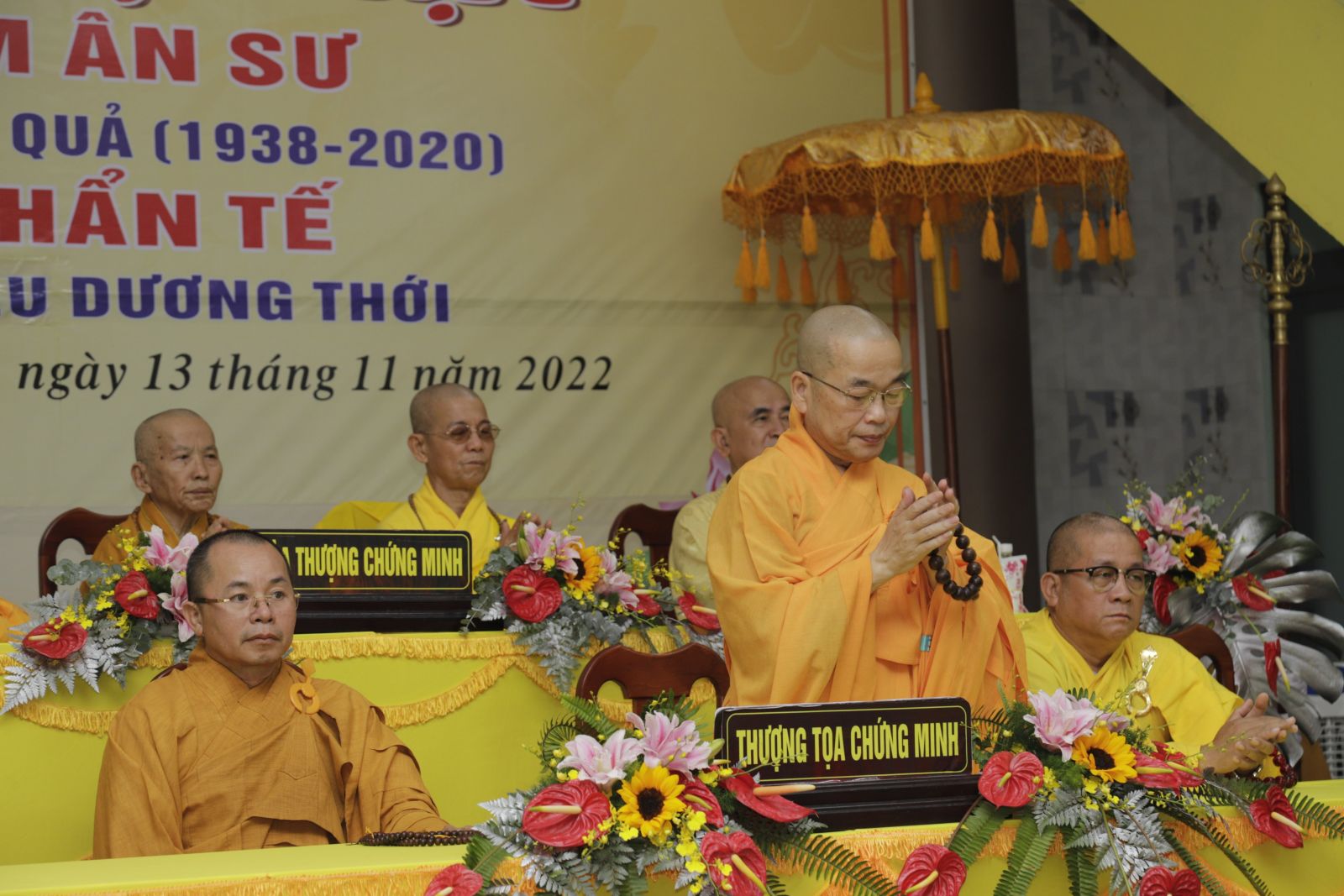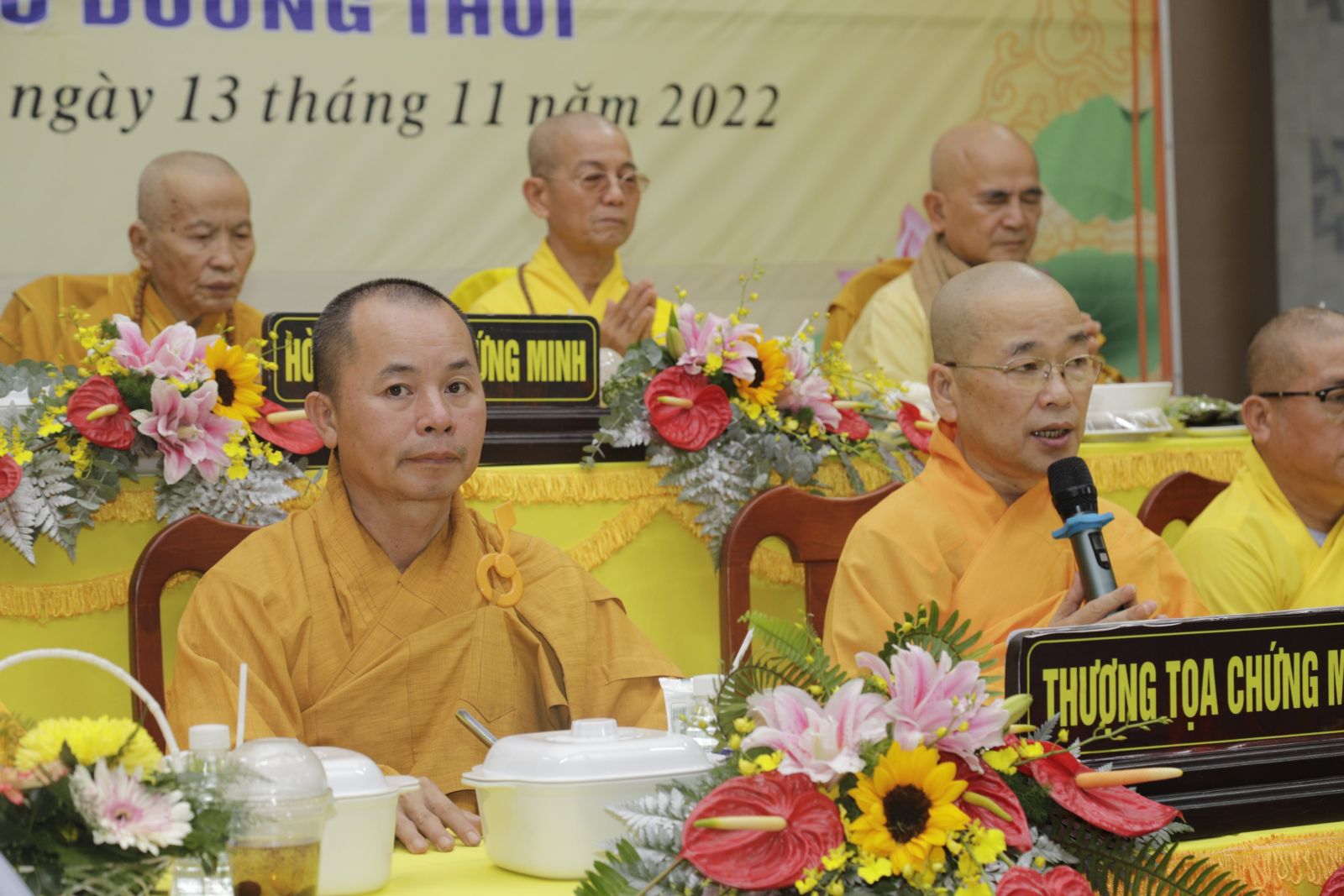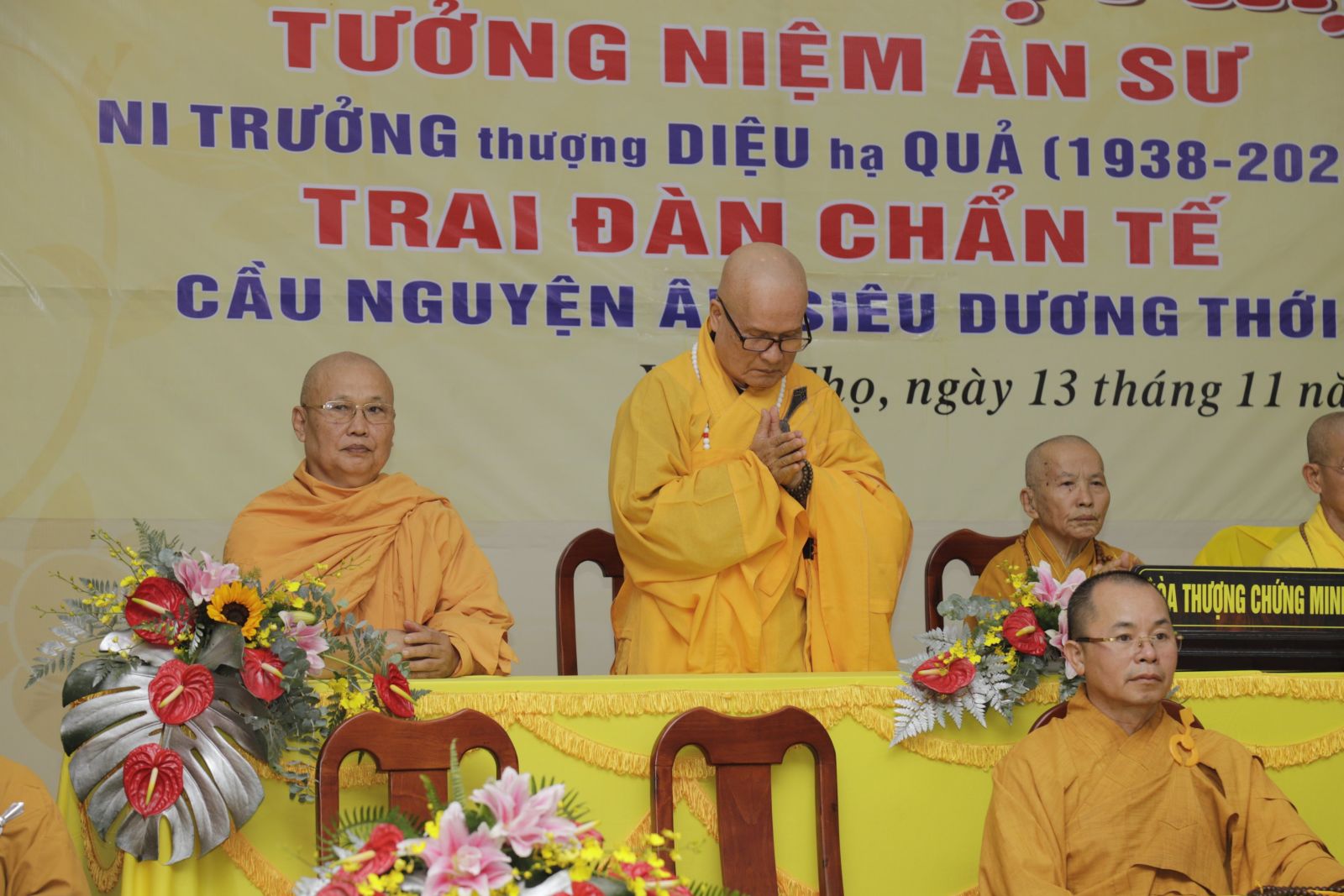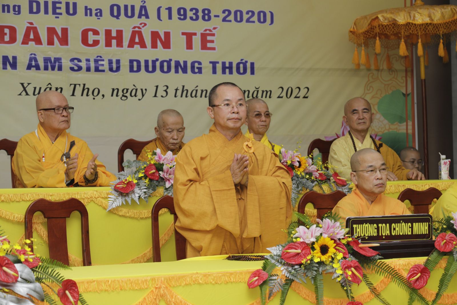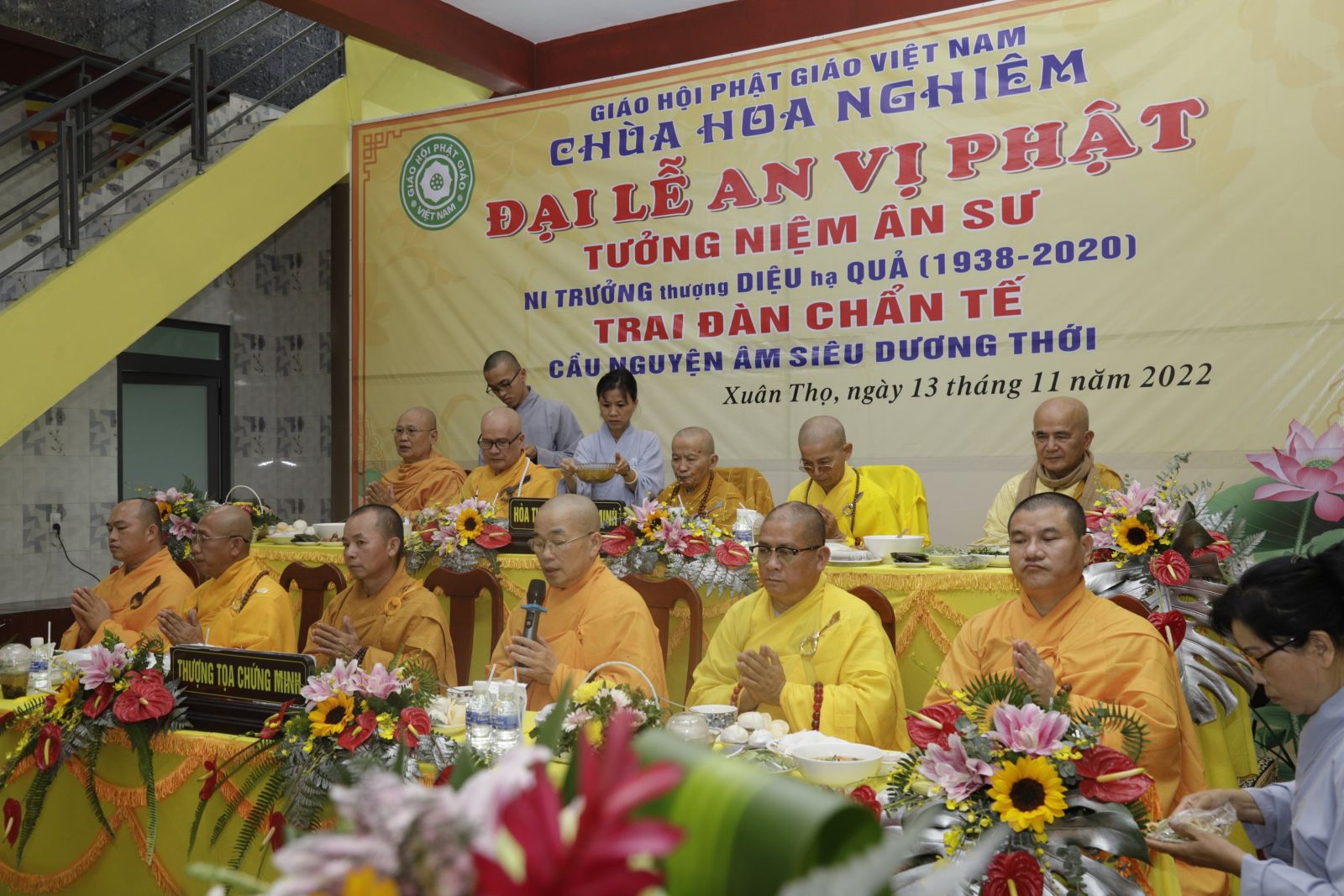 Quang lâm chứng minh Đại lễ có HT. Thích Giác Quang, HT. Thích Huệ Nhẫn, HT. Thích Thiện Đồng - Đồng Chứng minh BTS GHPGVN huyện; TT. Thích Giác Tân – UV BTS tỉnh Đồng Tháp, Phó Ban GDPG, Phó Ban Hoằng pháp GHPGVN tỉnh Đồng Tháp, Phó Trưởng ban Thường trực BTS GHPGVN huyện Châu Thành, tỉnh Đồng Tháp; TT. Thích Huệ Quang - UV BTS tỉnh, Phó Trưởng Ban Thường trực BTS GHPGVN huyện Xuân Lộc; TT. Thích Chánh Huệ - Phó Trưởng Ban BTS GHPGVN huyện Xuân Lộc, Sám chủ Trai đàn; ĐĐ. Thích Quảng Vinh – Phó trưởng ban BTS GHPGVN huyện Xuân Lộc; ĐĐ. Thích An Quang - UV BTS tỉnh, Chánh Thư ký BTS GHPGVN huyện Xuân Lộc; NT. TN Giác Thành - Cố vấn Ni Viện Vạn Hạnh, TP. HCM; NT. TN Giác Trung - Phó Trưởng Phân Ban Ni giới GHPGVN TP. Hồ Chí Minh, Phó Trưởng BTS, Trưởng Phân Ban Ni giới GHPGVN TP. Thủ Đức, TP. Hồ Chí Minh; NT. TN Diệu Đạo - Trưởng Phân Ban Ni giới GHPGVN Quận Phú Nhuận, TP. Hồ Chí Minh; NS. TN Như Thức - Trưởng Phân Ban Ni Giới GHPGVN tỉnh Trà Vinh; NS. TN Huệ Ngọc - Trưởng Phân Ban Ni giới GHPGVN huyện Xuân Lộc cùng cùng chư tôn Hòa thượng, chư Thượng tọa, chư tôn thiền Tăng Ni BTS GHPGVN huyện Xuân Lộc, trụ trì các tự viện, pháp lữ đồng chứng minh và tham dự buổi lễ.