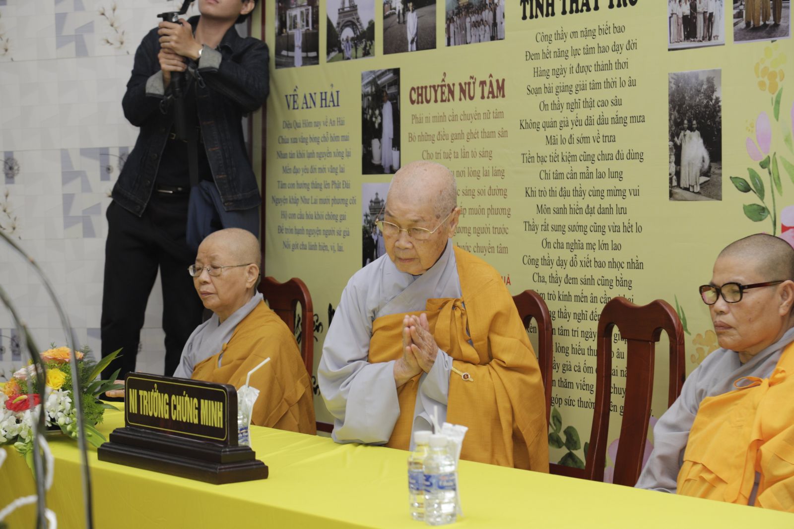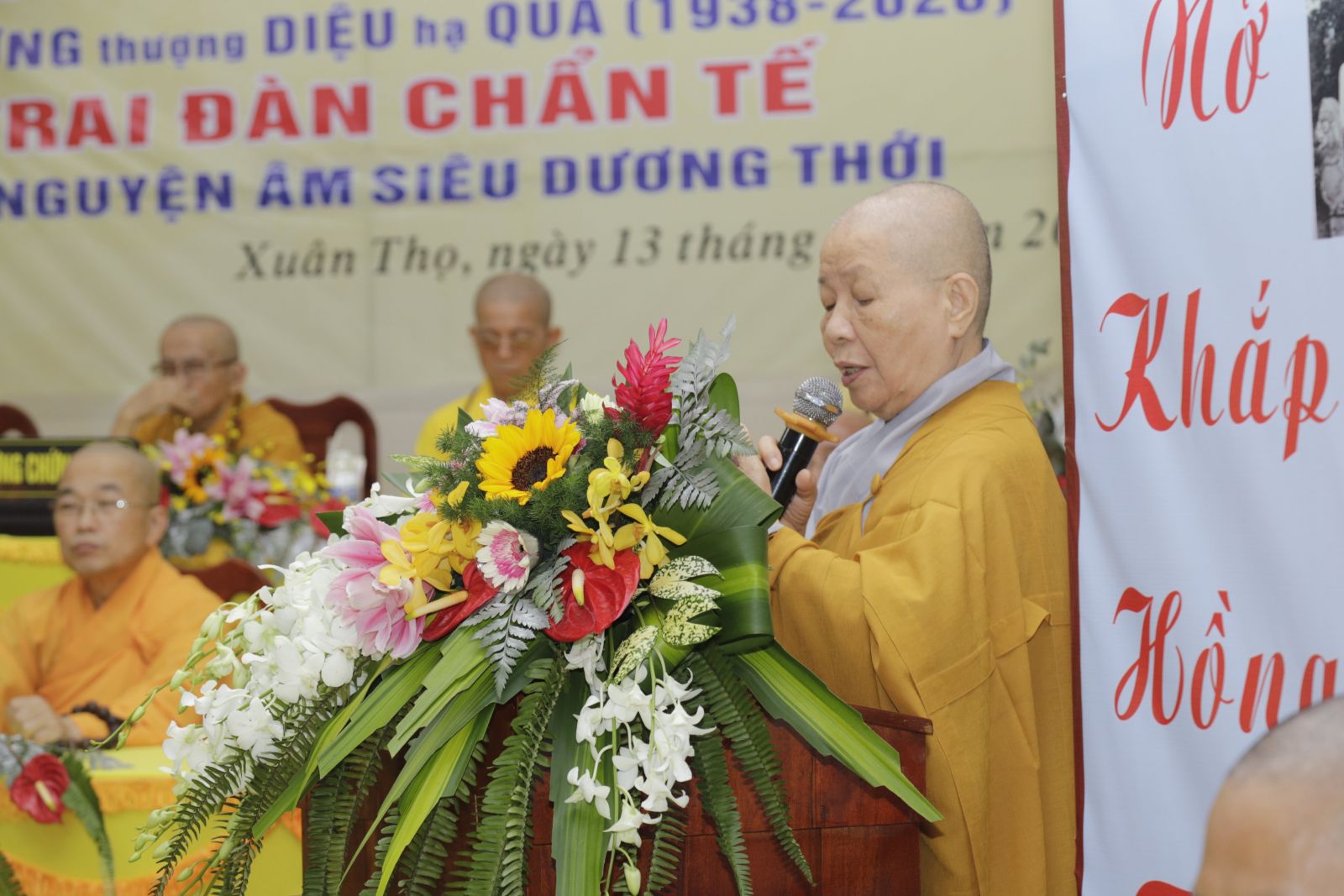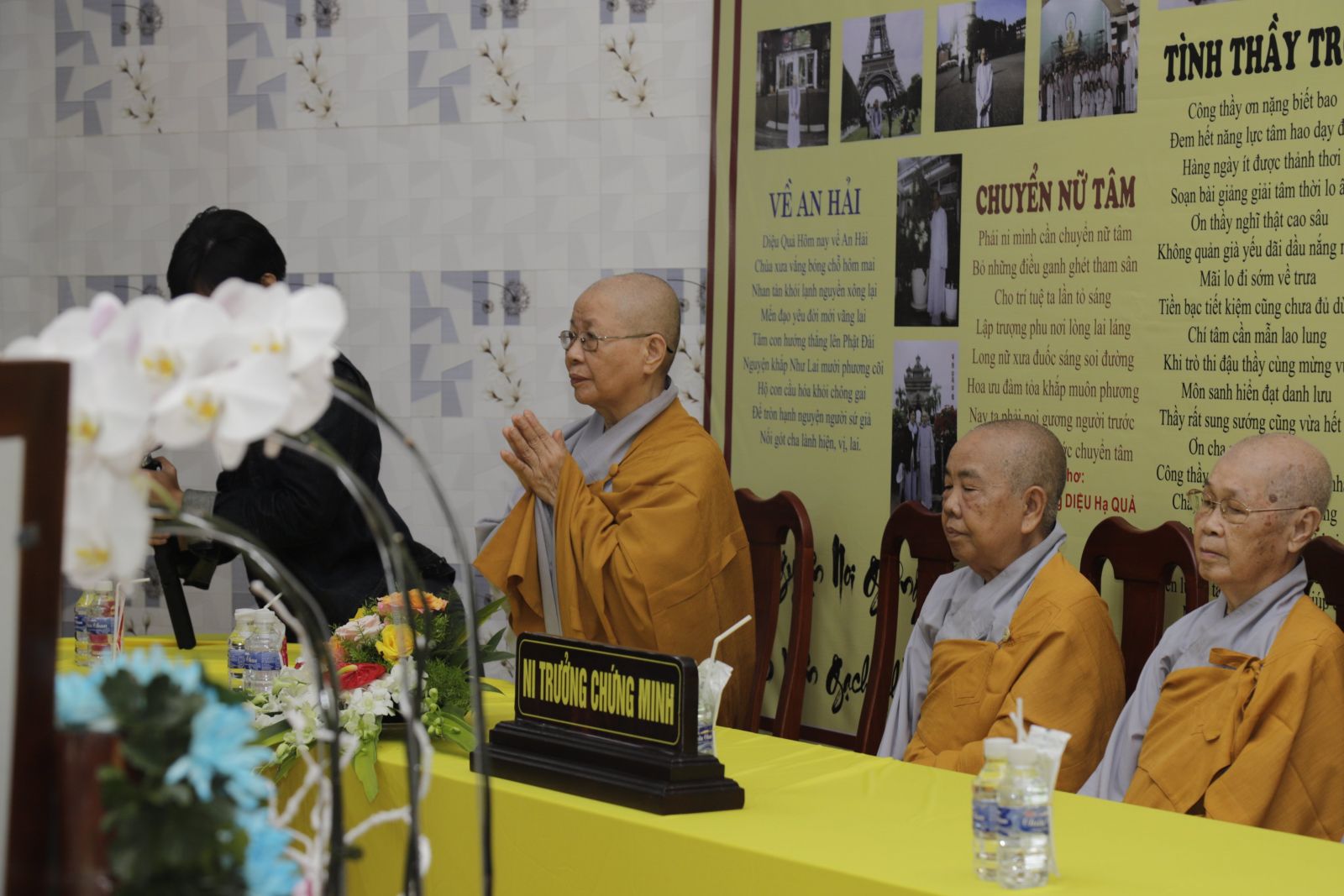 Sư cô Thích nữ Huệ Bảo đã thành kính dâng lời tưởng niệm Tôn sư bằng tất cả sự thổn thức hoài vọng, niềm kính tiếc vô biên và sự tri ân vô cùng tận đối với bậc thầy Bổn sư khả kính. Toàn thể hội chúng đã lắng xuống và vô cùng xúc động trước lời tưởng niệm của Sư cô trụ trì.