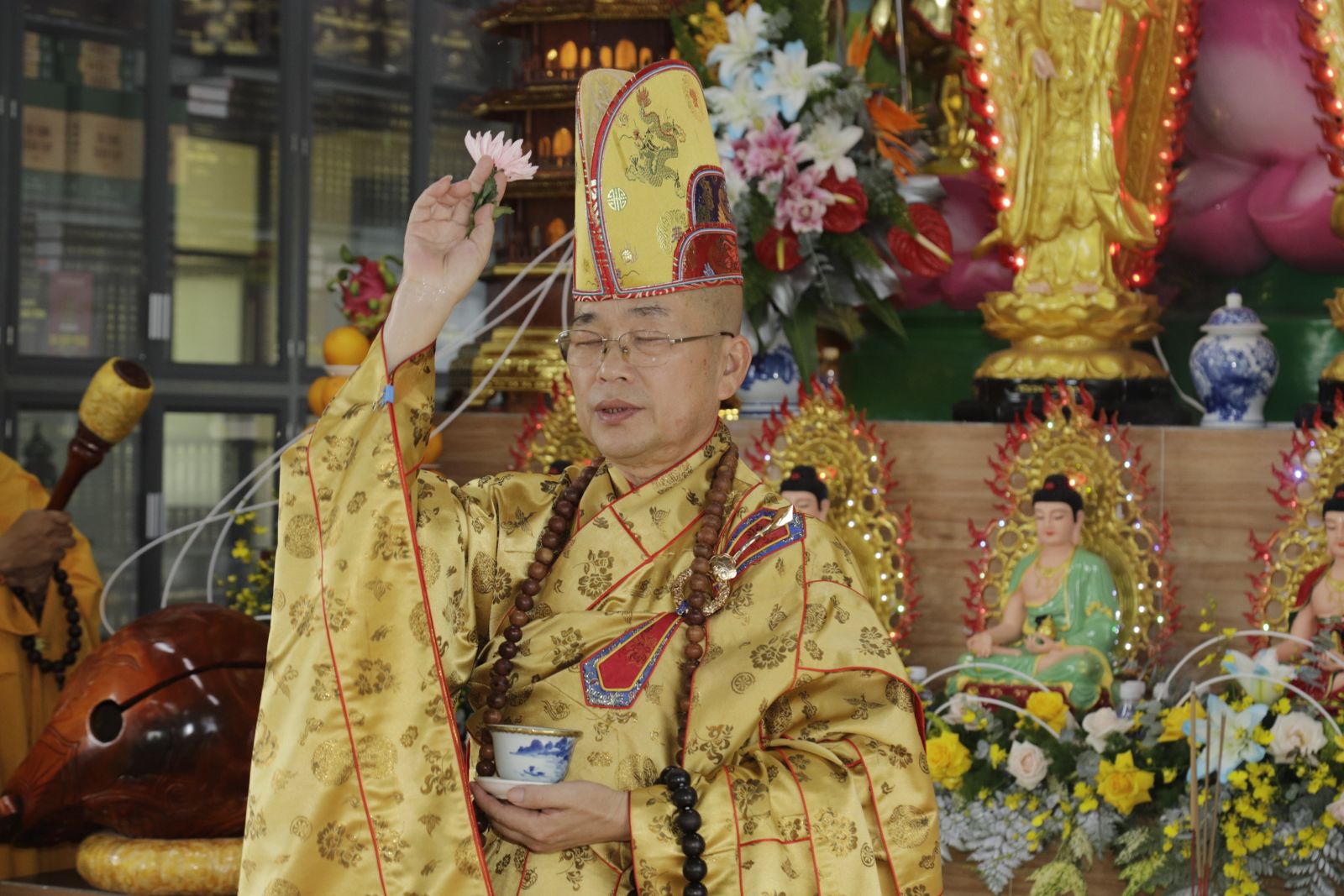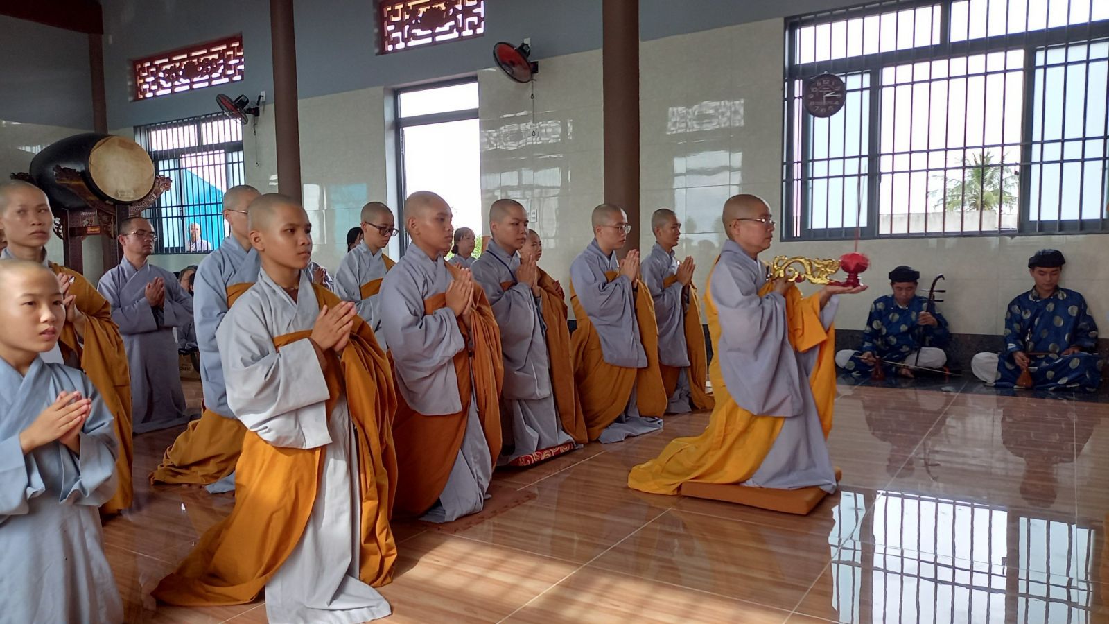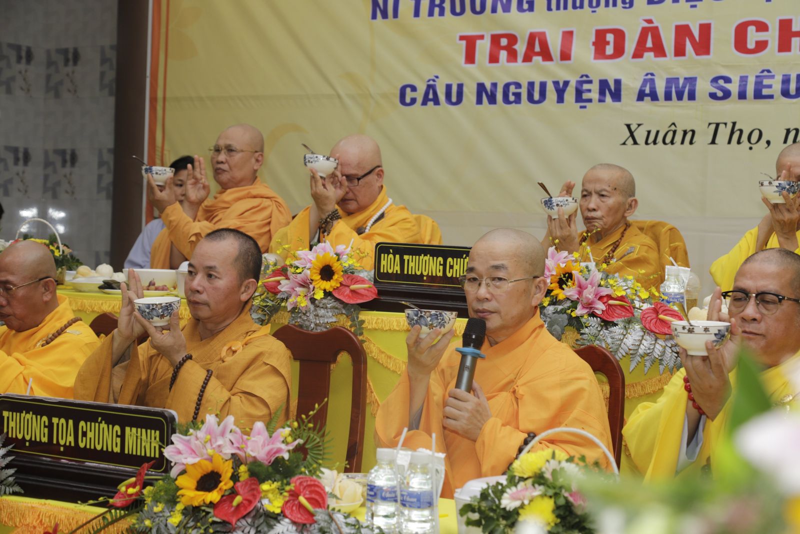 Vào lúc 14 giờ chiều cùng ngày TT. Thích Chánh Huệ - Phó BTS, trưởng Ban Nghi lễ GHPGVN huyện Xuân Lộc, Sám chủ Đàn tràng cùng chư tôn đức Tăng trong Hội đồng kinh sư đã đăng đàn tiến bạt Thí vô giá hội.