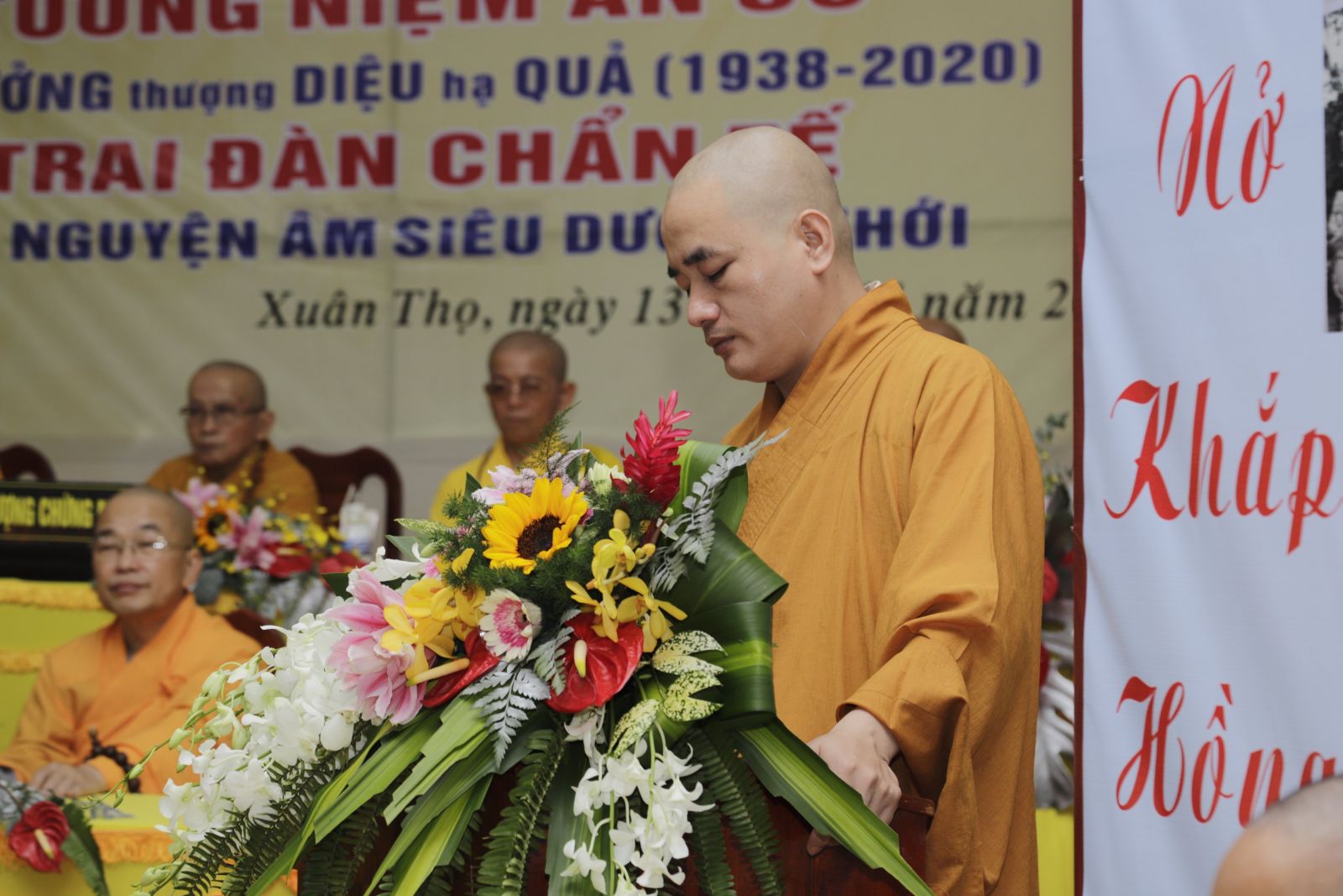 Tại buổi lễ Sư cô trụ trì đã cung thỉnh chư tôn giáo phẩm chứng minh cho lễ tưởng niệm Tôn sư của mình là cố Ni trưởng Thích nữ Diệu Quả - Nguyên Phó trưởng Phân Ban Ni giới GHPGVN thành phố Đà Nẵng, nguyên trụ trì chùa Thanh Hải, quận Thanh Khê, thành phố Đà Nẵng. Ni trưởng đã viên tịch vào ngày 15 tháng 06 năm Canh Tý tại chùa Thanh Hải, quận Thanh Khê, thành phố Đà Nẵng. Do giãn cách toàn xã hội vì đại dịch Covid-19 nên tang lễ của cố Ni trưởng hoàn toàn tổ chức khép kín. Hơn 02 năm qua Sư cô trụ trì đã thổn thức hoài vọng về bậc Tôn sư khả kính, lòng tự dặn lòng muốn đền đáp bằng những việc làm đầy ý nghĩa. Sư cô Trụ trì đã kiến lập Đạo tràng, trùng hưng Phạm vũ và đem những bông hoa Đạo tươi thắm dâng Thầy Tổ bằng tất cả tâm thành kính. Hiện chùa Hoa Nghiêm được trang nghiêm, có nơi thờ Tôn sư và làm lễ tưởng niệm Thầy Tổ trong tinh thần uống nước nhớ nguồn.