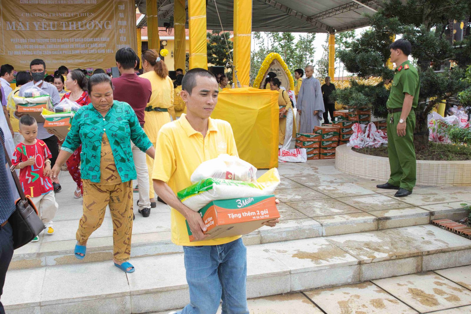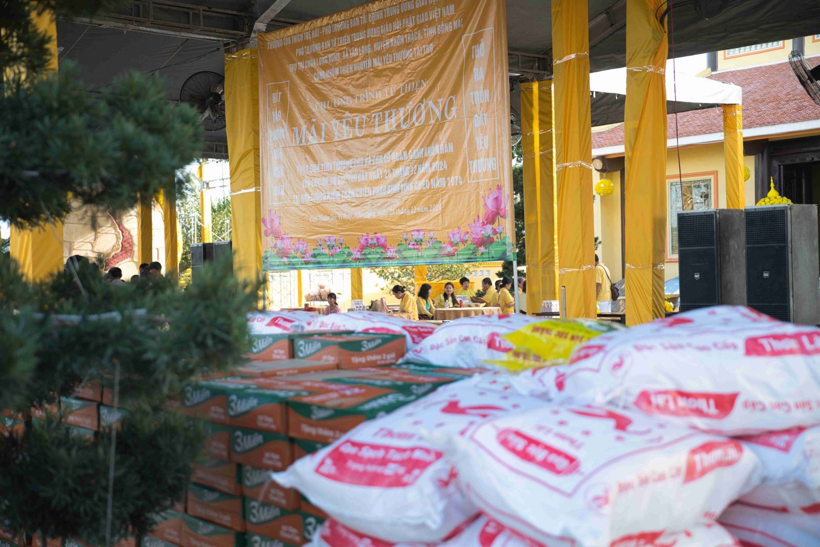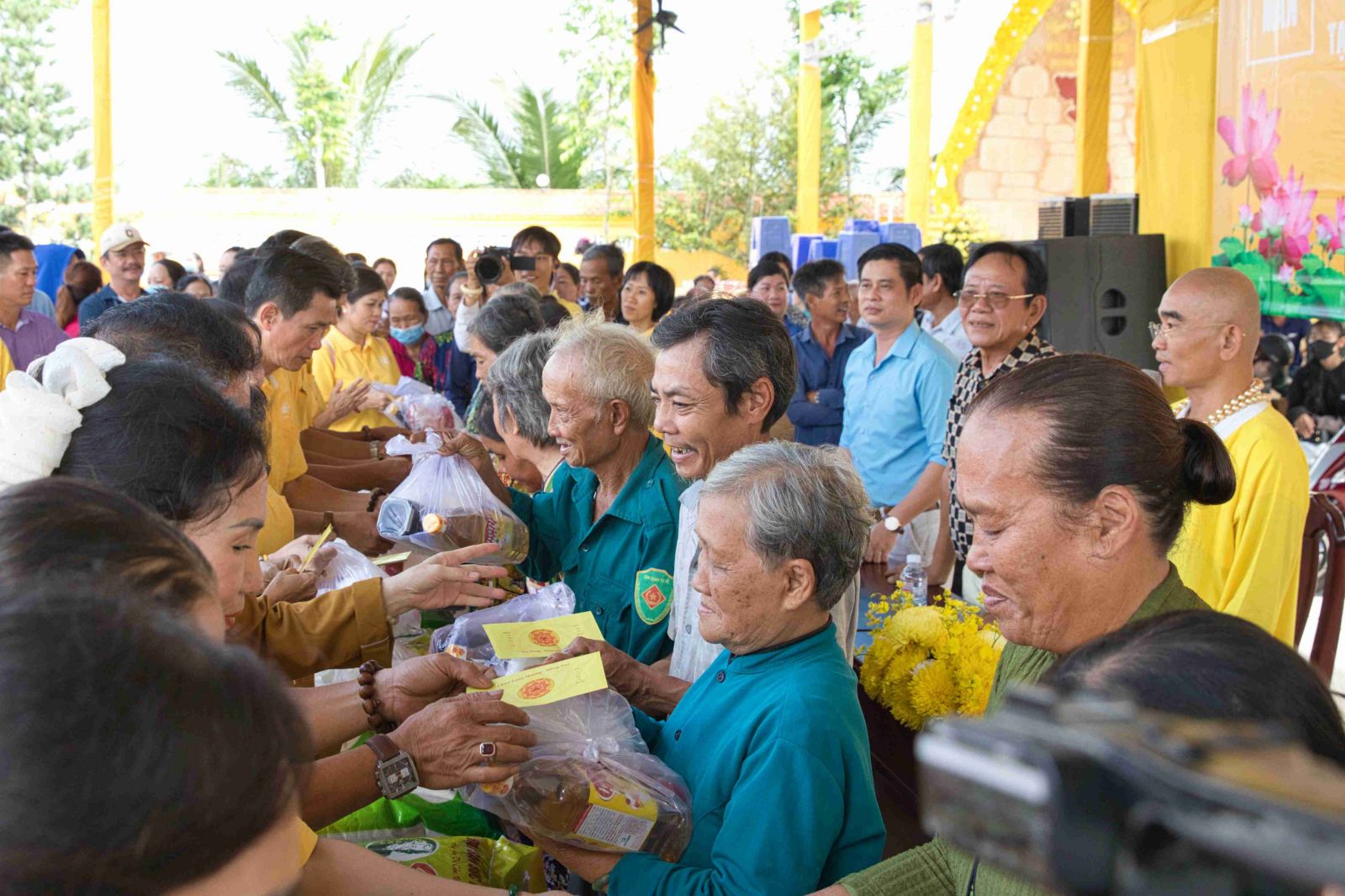 Tại đây, 281 phần quà đã được trao tận tay các hộ gia đình nghèo, cận nghèo, bao gồm gạo, mì, các nhu yếu phẩm và bao thư tiền mặt 500 ngàn đồng, trị giá 1 triệu đồng mỗi phần, nhằm giúp bà con có thêm điều kiện đón Tết cổ truyền ấm no, đủ đầy. Được biết kinh phí đợt phát quà này là 281 triệu đồng do Thượng Tọa Thích Tuệ Hải và các Phật tử nhóm thiện nguyện Mãi Yêu Thương tài trợ.