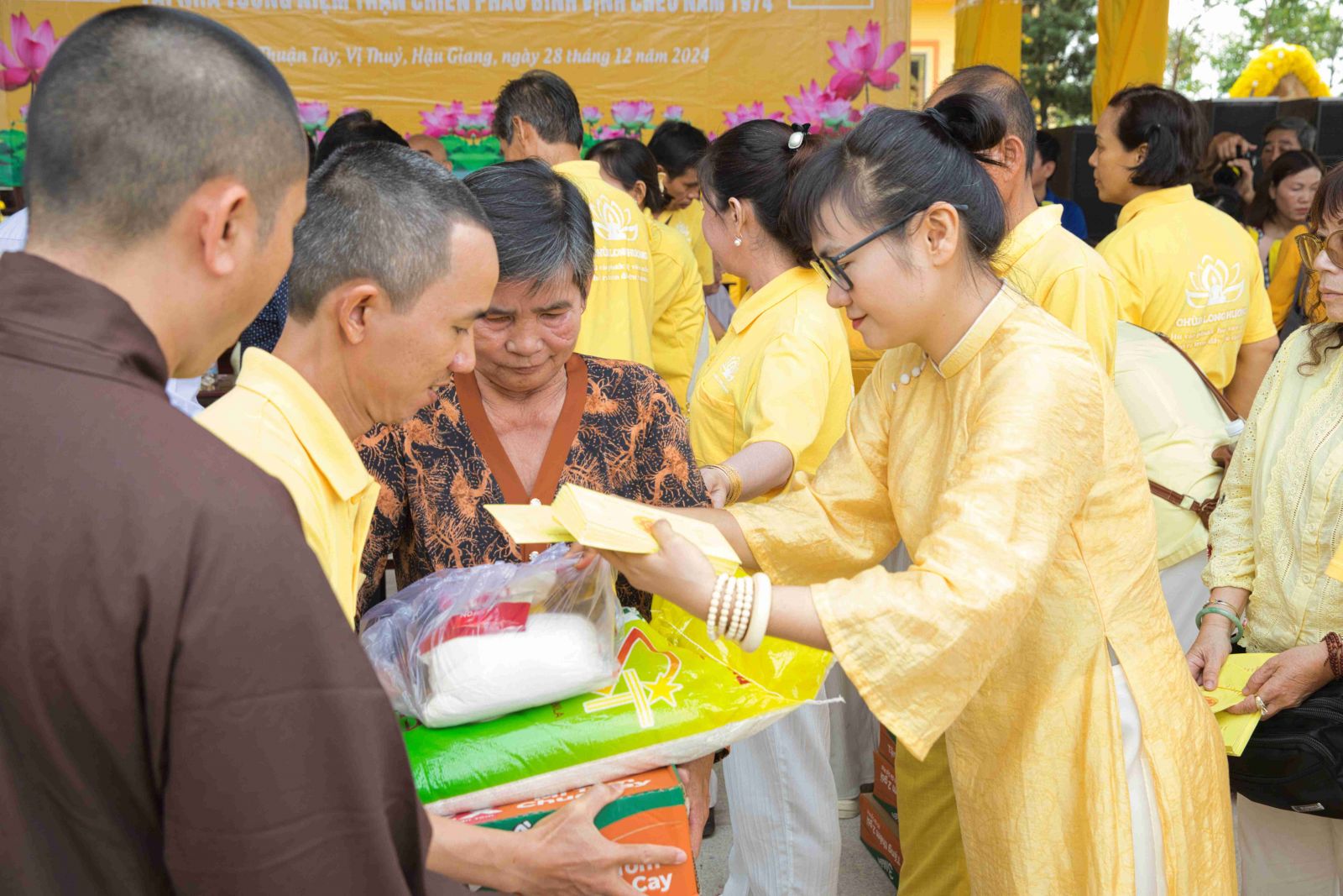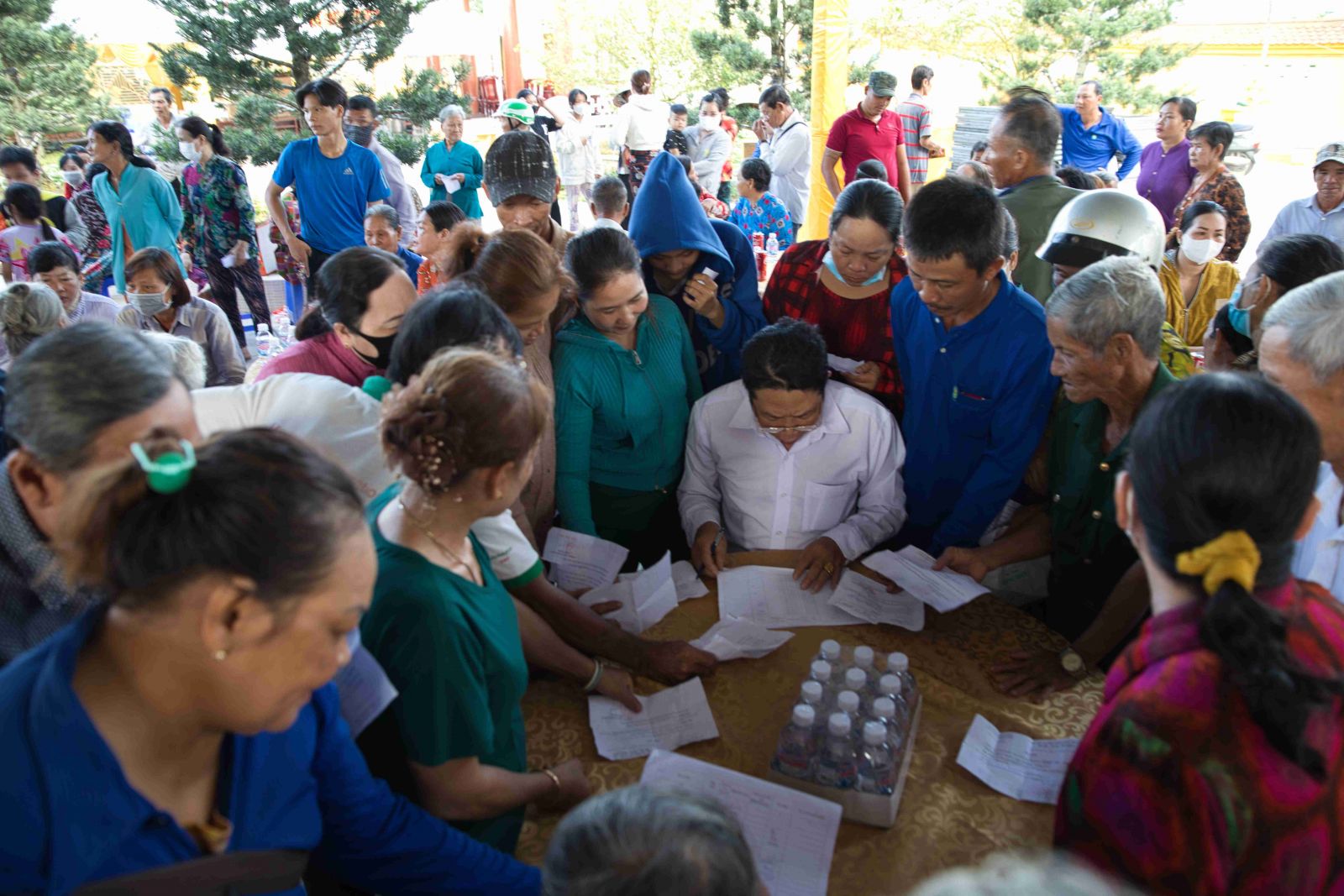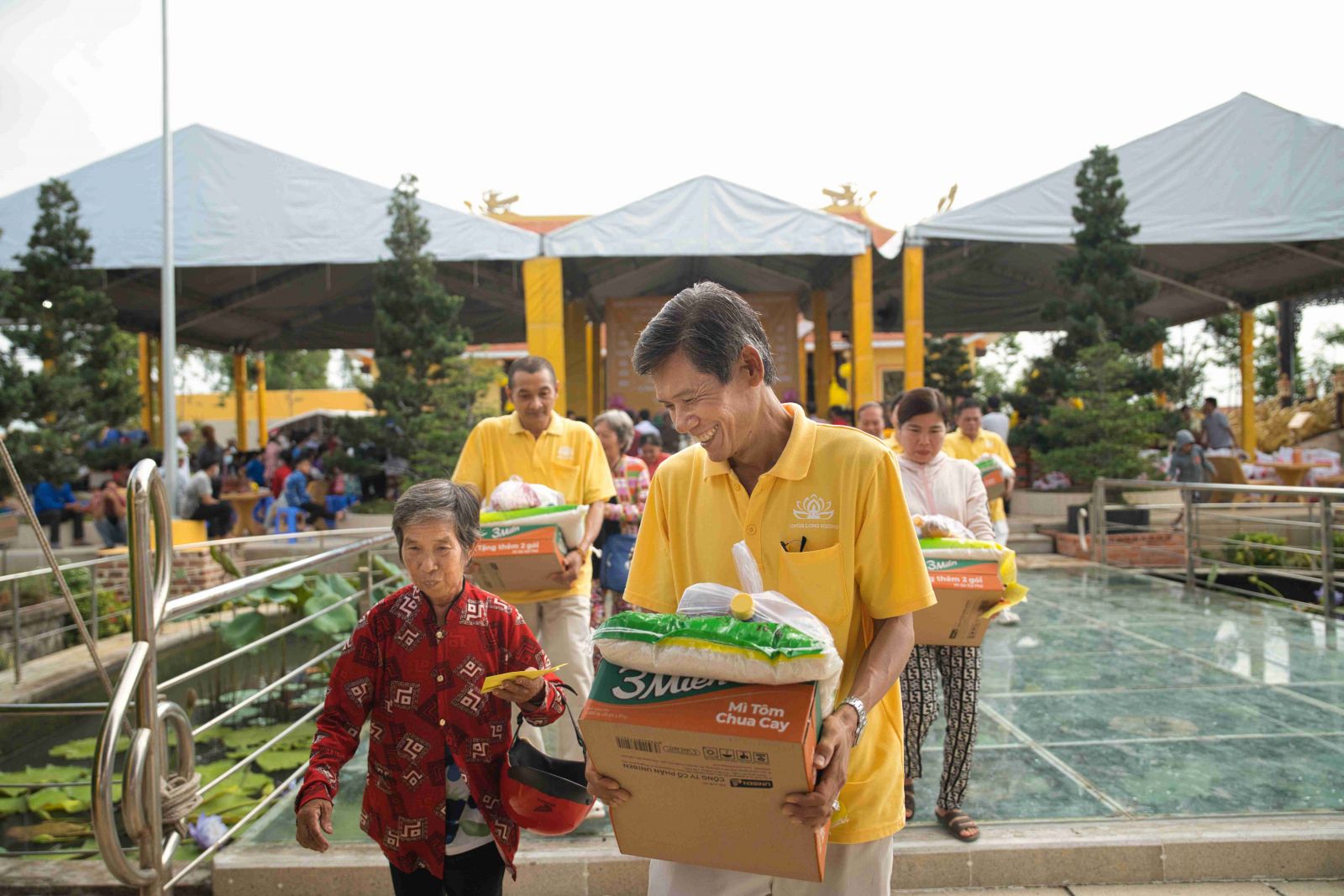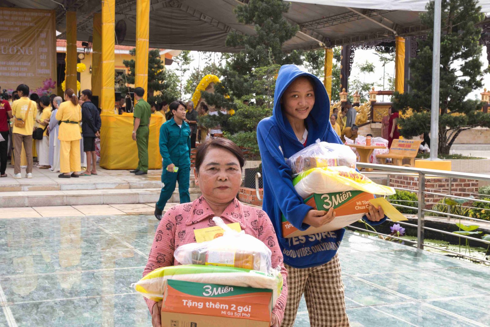 Tại đây, 281 phần quà đã được trao tận tay các hộ gia đình nghèo, cận nghèo, bao gồm gạo, mì, các nhu yếu phẩm và bao thư tiền mặt 500 ngàn đồng, trị giá 1 triệu đồng mỗi phần, nhằm giúp bà con có thêm điều kiện đón Tết cổ truyền ấm no, đủ đầy. Được biết kinh phí đợt phát quà này là 281 triệu đồng do Thượng Tọa Thích Tuệ Hải và các Phật tử nhóm thiện nguyện Mãi Yêu Thương tài trợ.
