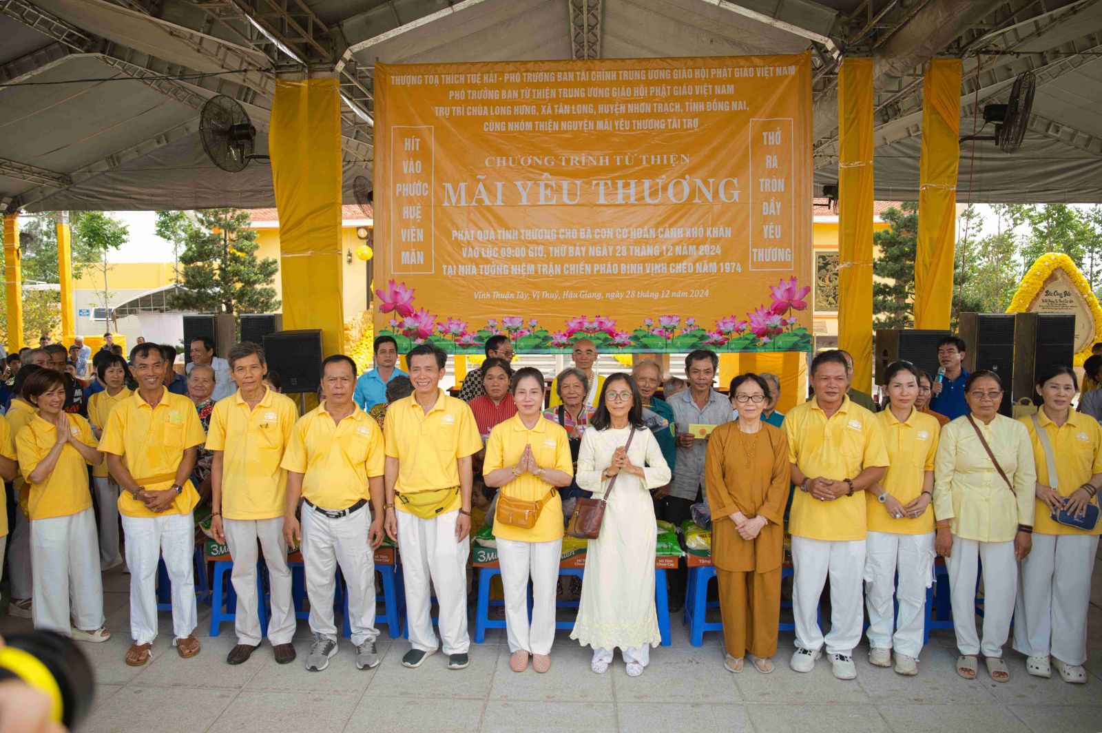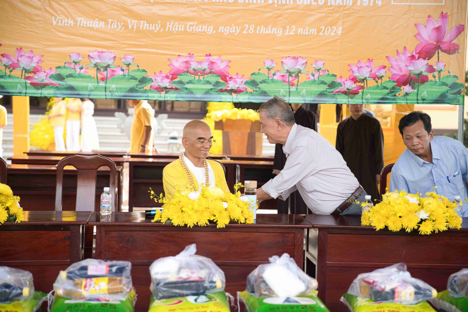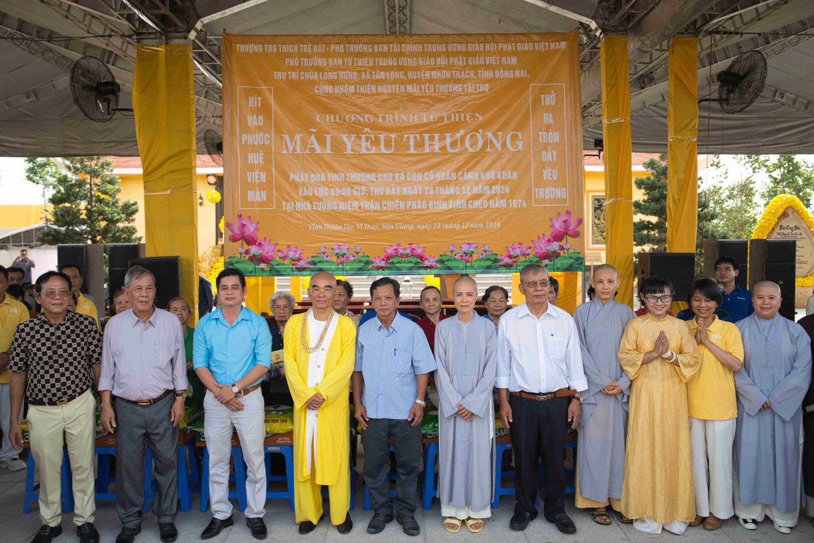 Trong không khí nghĩa tình này, tham dự buổi trao quà có Thượng tọa Thích Tuệ Hải, Phó Trưởng Ban Kinh Tế Tài Chính Trung Ương GHPGVN, Phó Trưởng Ban Từ Thiện Xã Hội Trung Ương GHPGVN, Trưởng Phân Ban Từ Thiện “Cứu Trợ Nhân Đạo” Trực Thuộc Trung Ương, Phó Trưởng Phân Ban Đào Tạo Lớp Cao Trung Cấp Giảng Sư Trực Thuộc Ban Hoằng Pháp Trung Ương GHPGVN, Ủy Viên Thường Trực Ban Hoằng Pháp Trung Ương GHPGVN, trụ trì chùa Long Hương. Ông Đào Văn Nghị, Giám đốc Bảo tàng tỉnh Hậu Giang; ông Lê Quốc Trạng, ông Lê Thanh Hà, Phó ban Liên lạc cựu Đoàn 6 Pháo binh; ông Bùi Thanh Lạc, Phó chủ tịch UBND xã Vĩnh Thuận Tây cùng quý mạnh thường quân nhóm thiện nguyện Mãi Yêu Thương Chùa Long Hương.