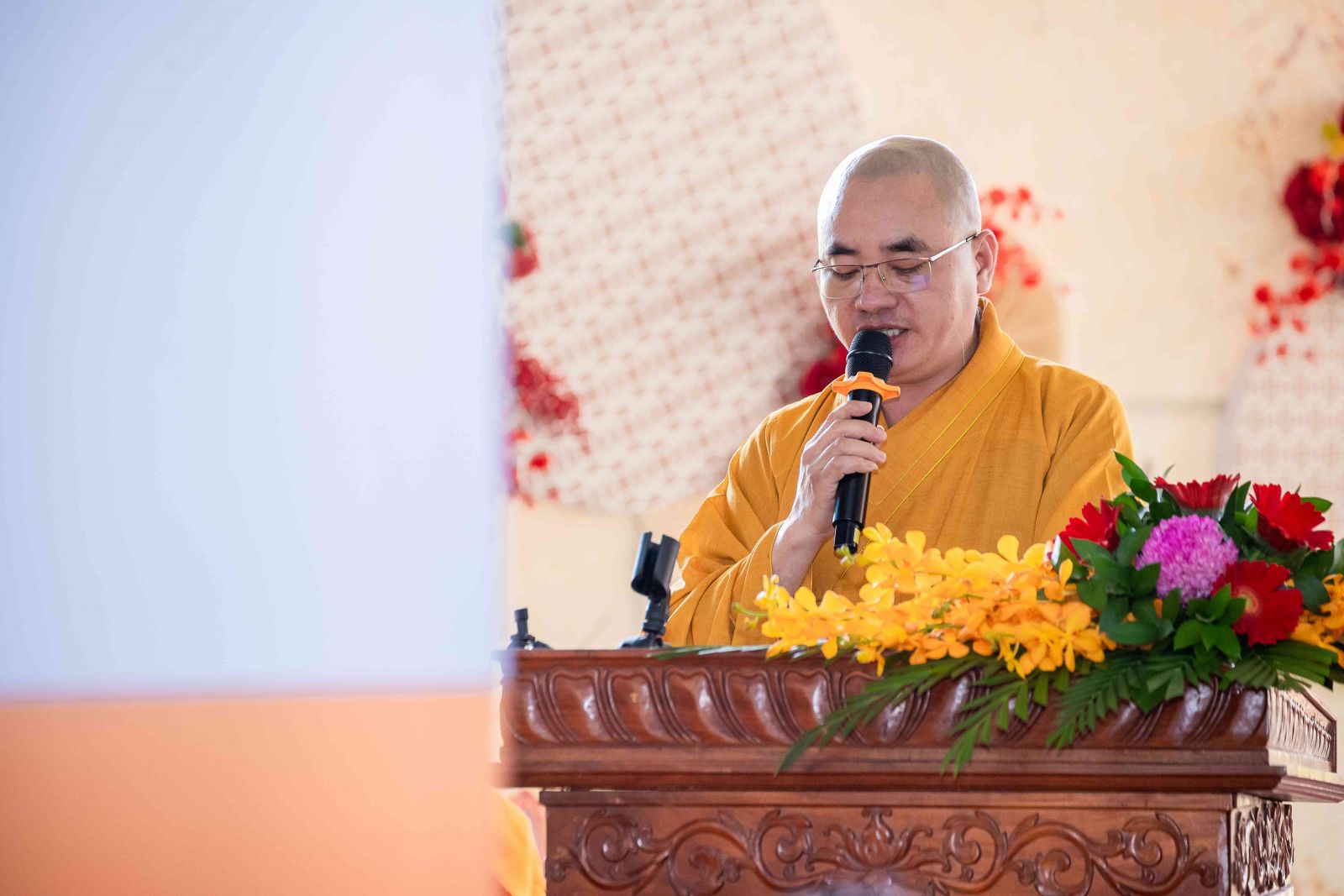 Tại buổi lễ, ĐĐ. Thích Thiện Trí - Chánh Thư ký BTS GHPGVN tỉnh Đồng Nai thay mặt Thường trực BTS GHPGVN tỉnh Đồng Nai thông báo Giáo chỉ Tấn phong giáo phẩm của HĐCM Trung ương GHPGVN đối với chư Tôn đức tại tỉnh Đồng Nai, trong đó có TT. Thích Trung Điền.