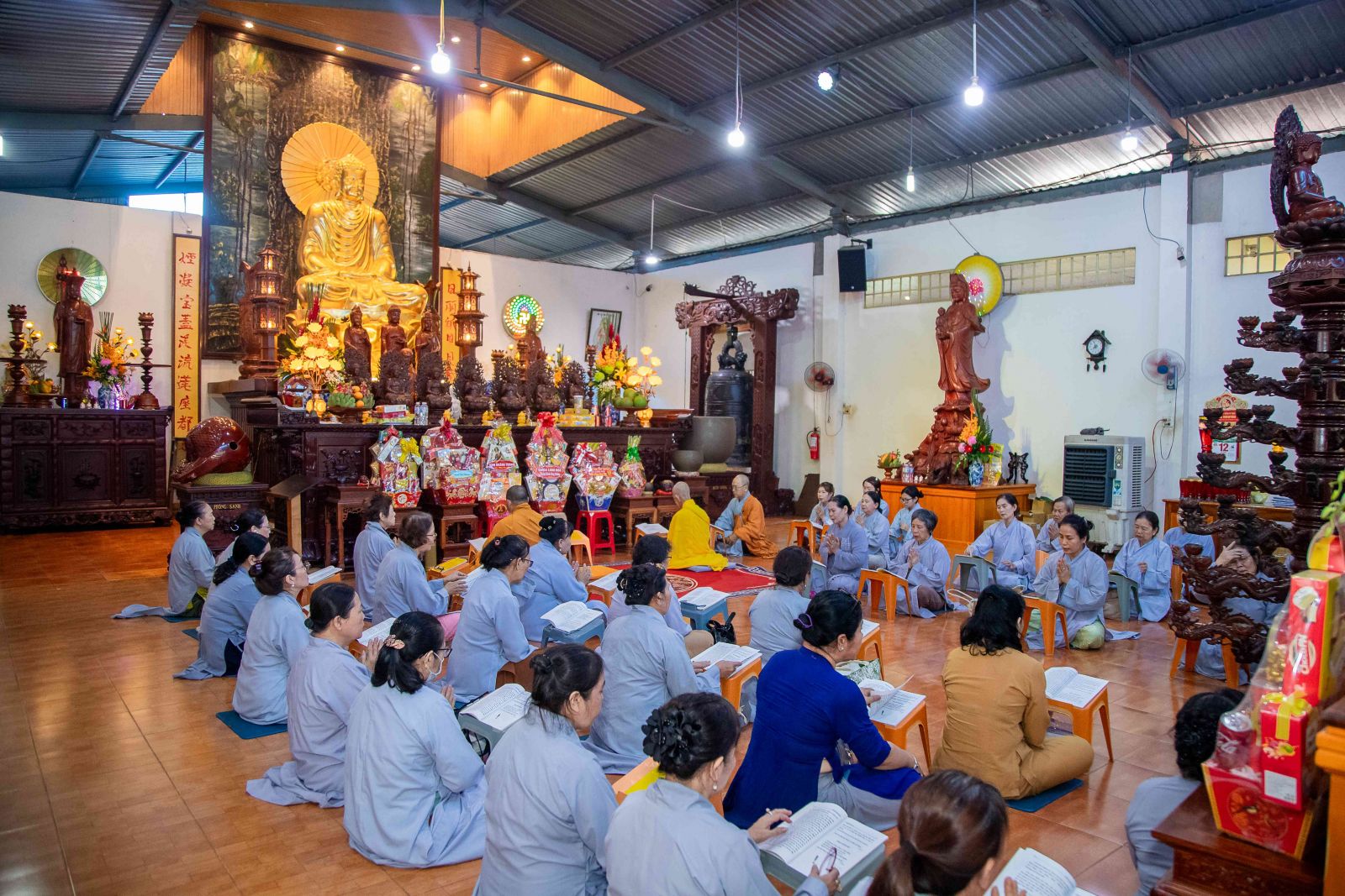 Tại buổi lễ chư Tôn đức đã trang nghiêm trì tụng và hoàn kinh Dược Sư cầu nguyện cho thế giới hòa bình, chúng sanh an lạc, và gia đình các Phật tử luôn được tai qua nạn khỏi, vạn sự an lành.