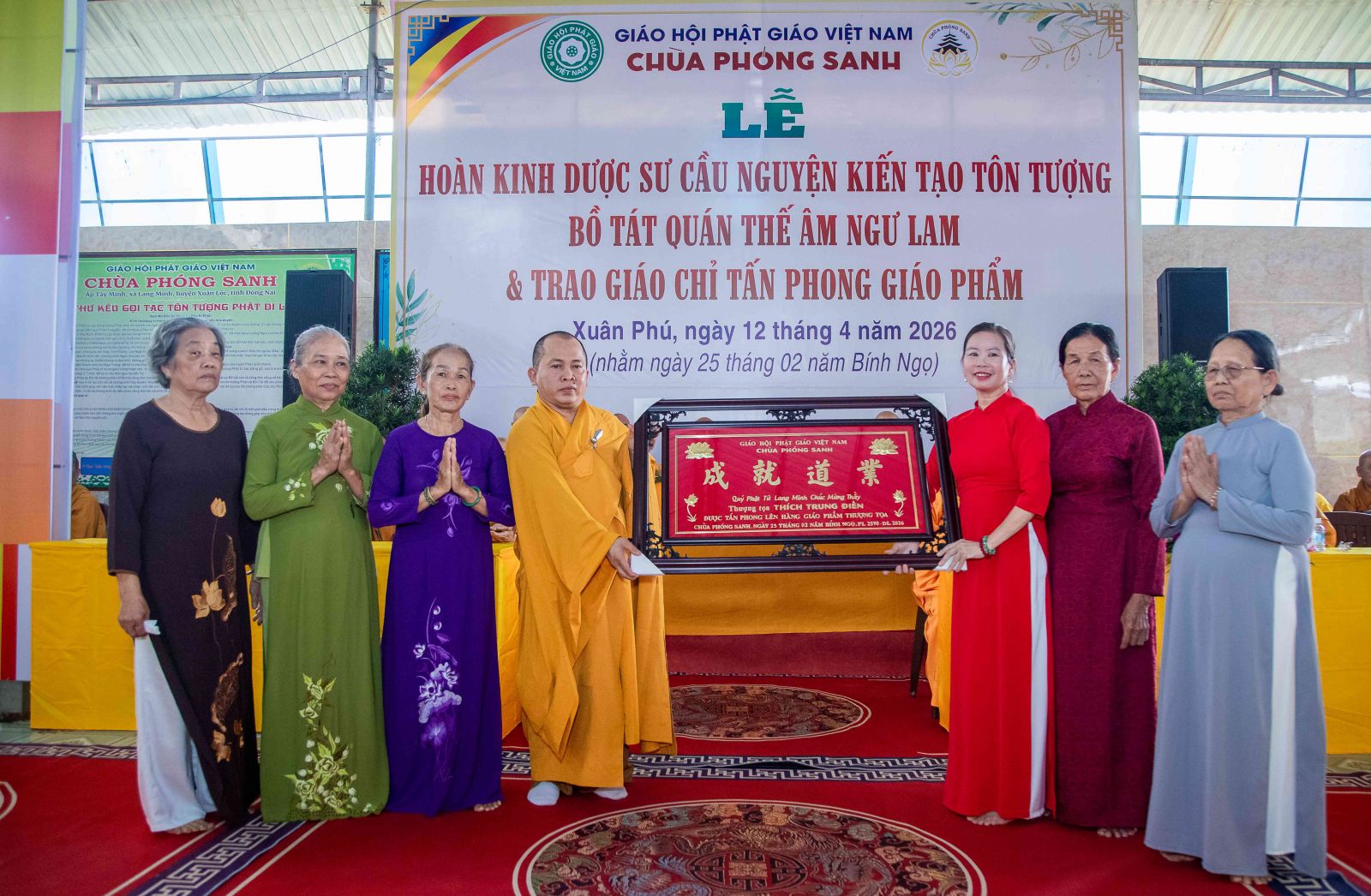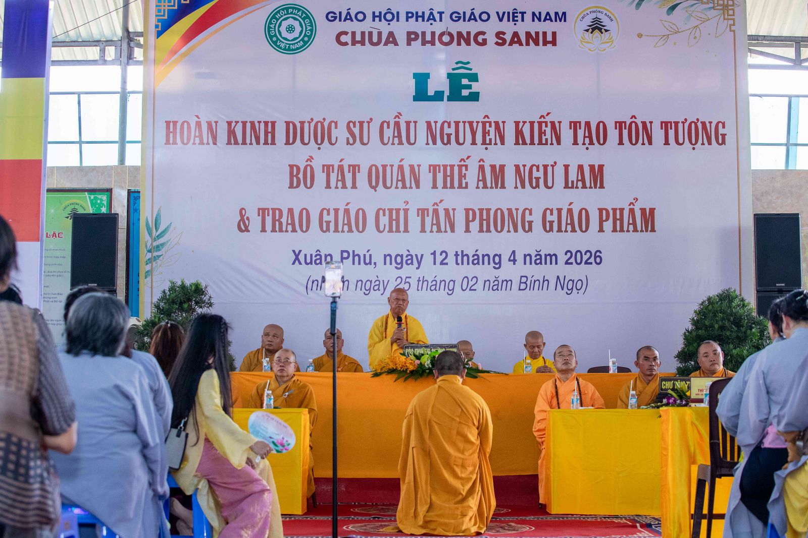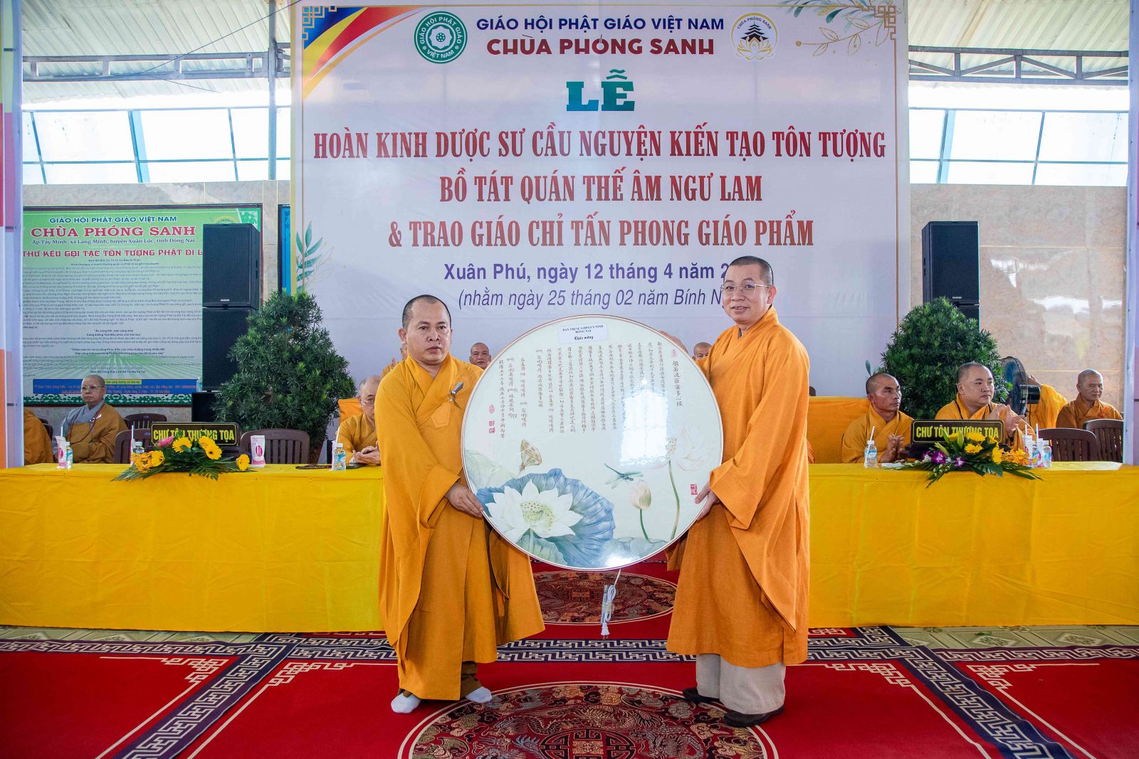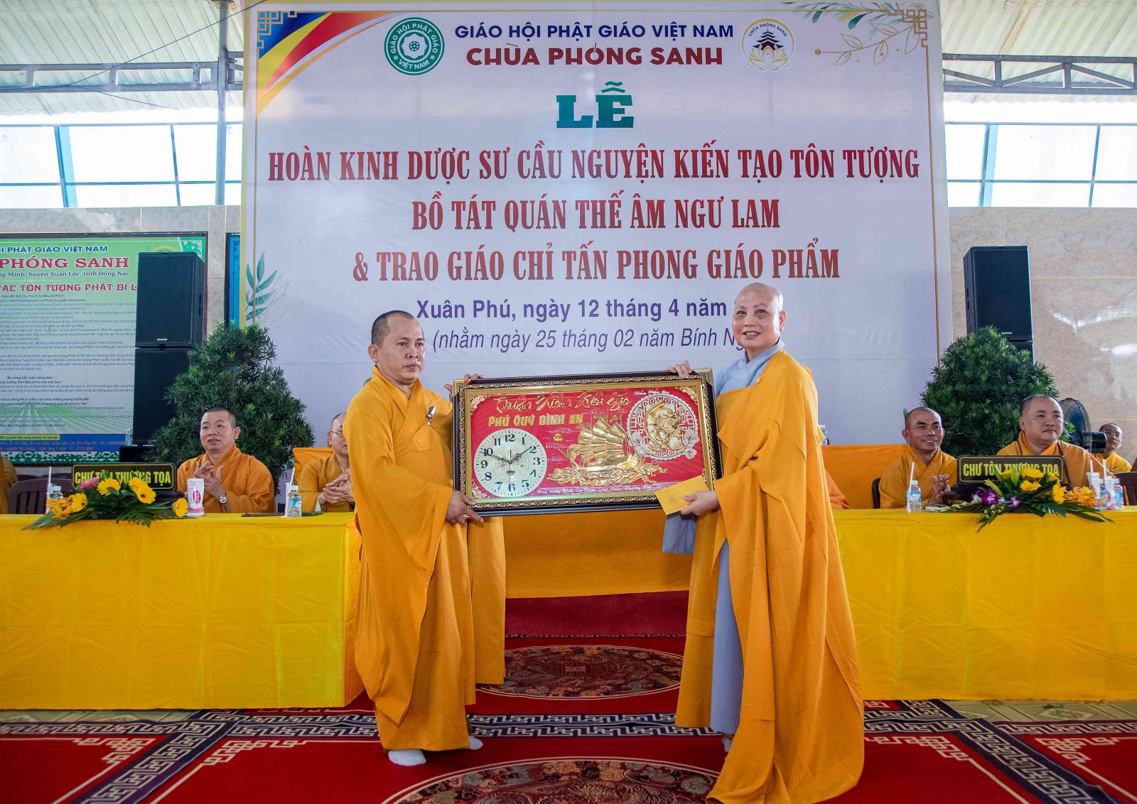 Sau đó TT. Thích Chơn Lý - UVDK HĐTS GHPGVN, Phó BTS GHPGVN tỉnh Đồng Nai thay mặt Thường trực BTS GHPGVN tỉnh đã trang trọng trao Giáo chỉ tấn phong hàng Giáo phẩm Thượng tọa đối với Thượng tọa trụ trì.