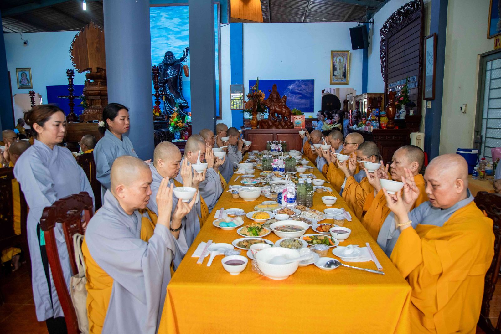Dịp này, Thượng tọa trụ trì đã tổ chức lễ cúng dường trai Tăng tri ân công đức của chư Tôn thiền đức Tăng Ni về tham dự và chứng minh buổi lễ.