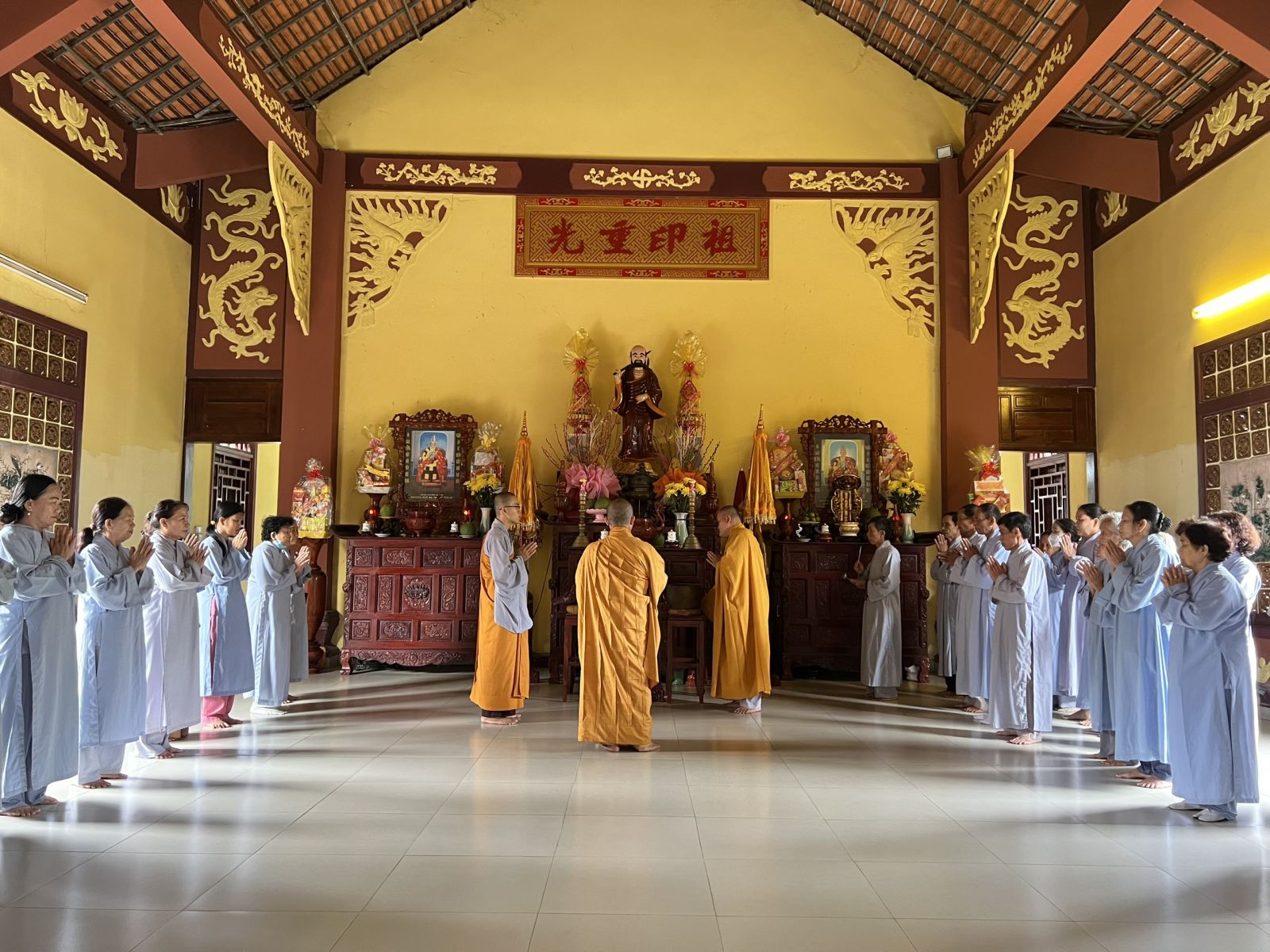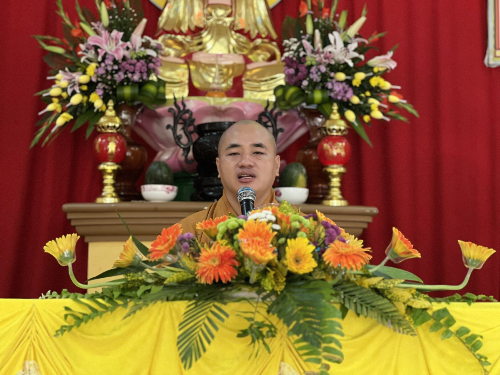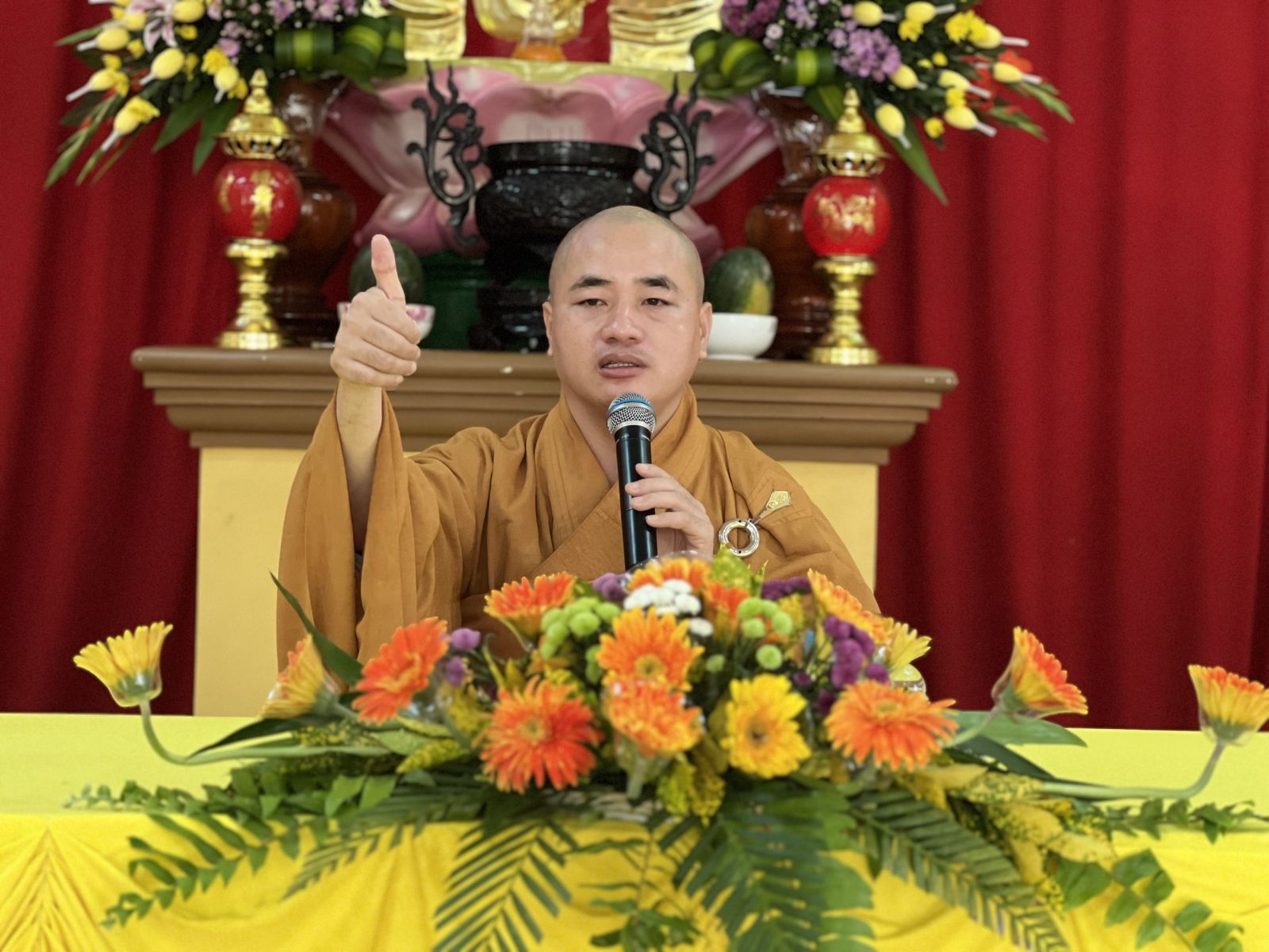 Đến 08h30’ toàn thể đạo tràng chùa Trúc Lâm được cung đón Đại đức Thích An Quang - UV BTS GHPGVN tỉnh Đồng Nai, Chánh Thư ký BTS GHPGVN huyện Xuân Lộc trụ trì chùa Minh Hiệp, xã Suối Cát, huyện Xuân Lộc quang lâm thuyết giảng.
