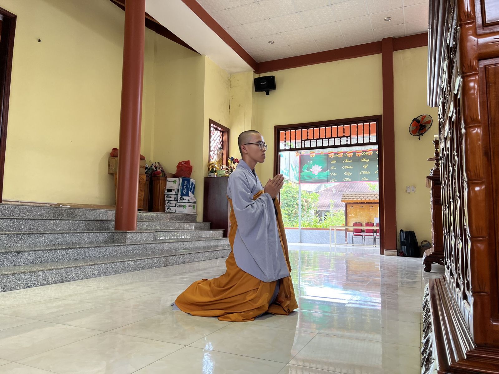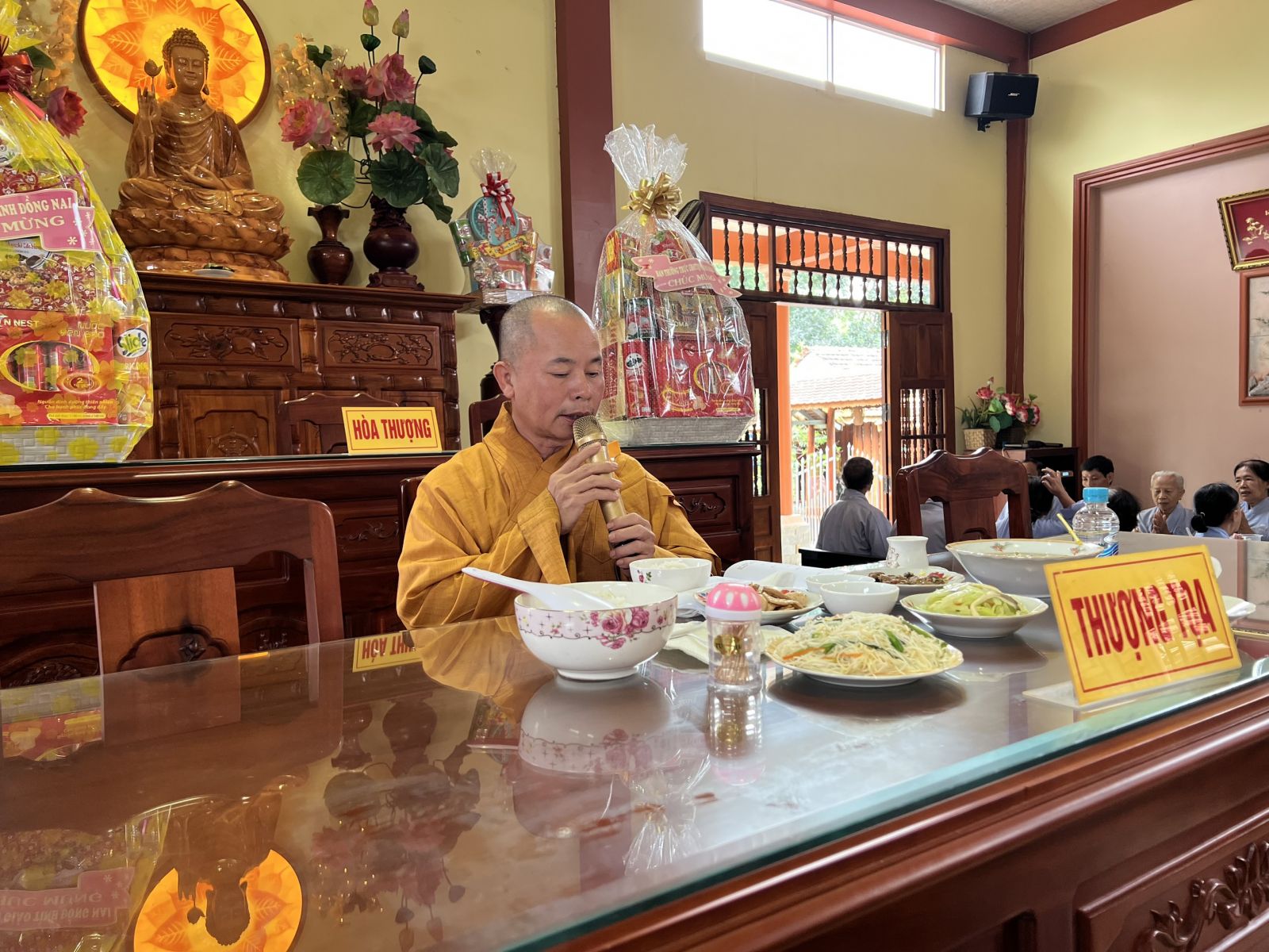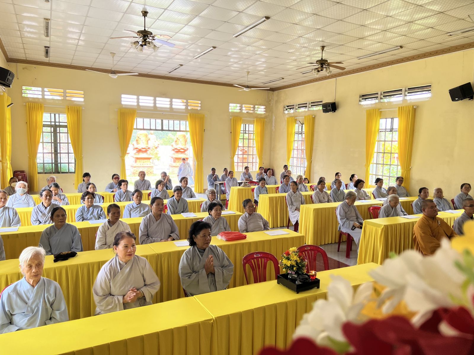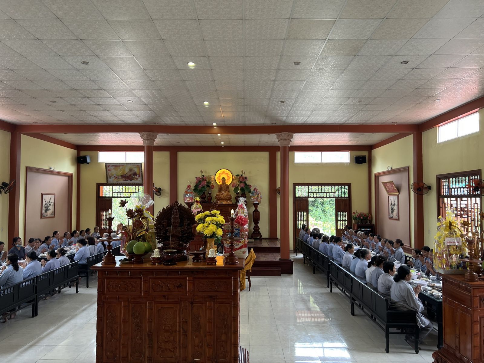Đến 08h30’ toàn thể đạo tràng chùa Trúc Lâm được cung đón Đại đức Thích An Quang - UV BTS GHPGVN tỉnh Đồng Nai, Chánh Thư ký BTS GHPGVN huyện Xuân Lộc trụ trì chùa Minh Hiệp, xã Suối Cát, huyện Xuân Lộc quang lâm thuyết giảng.