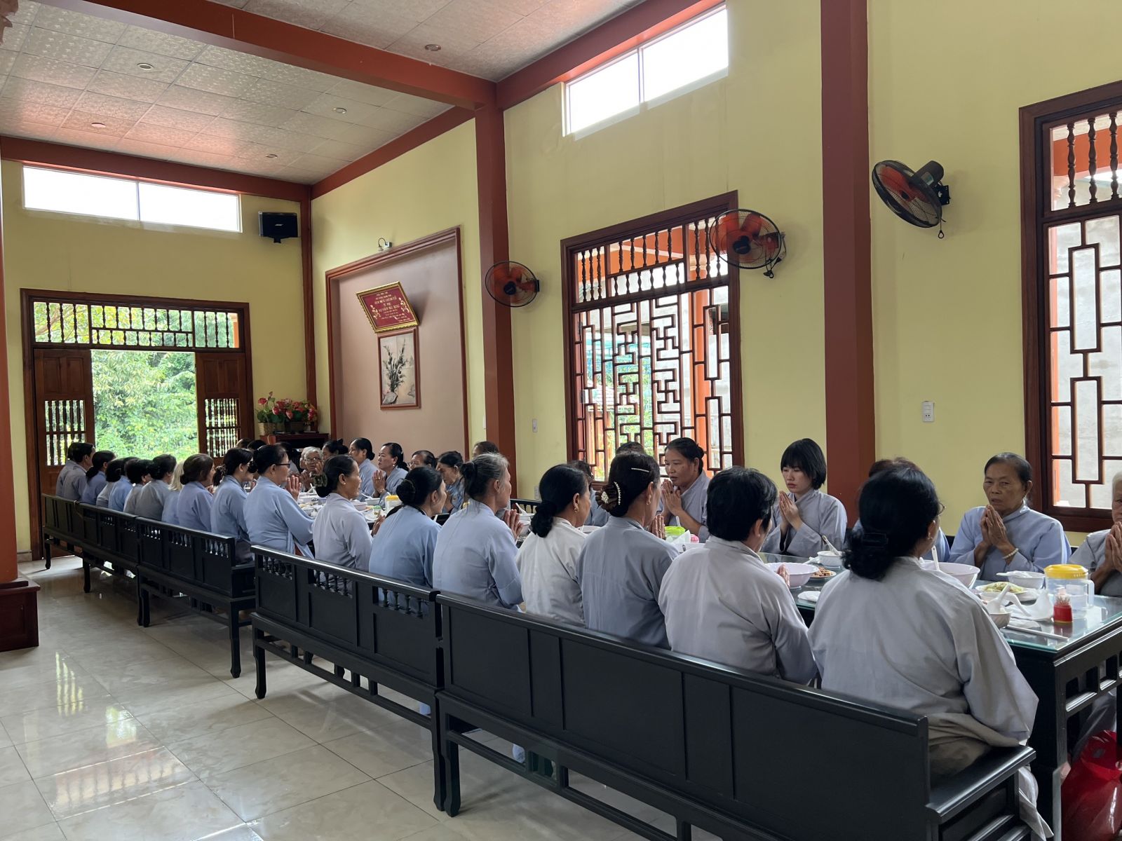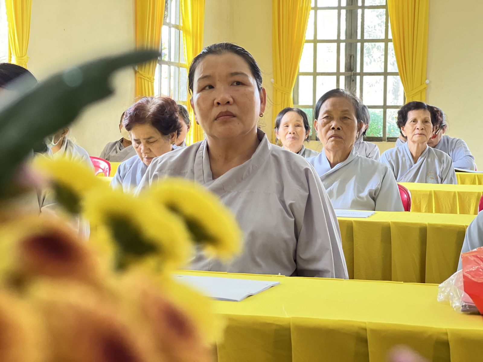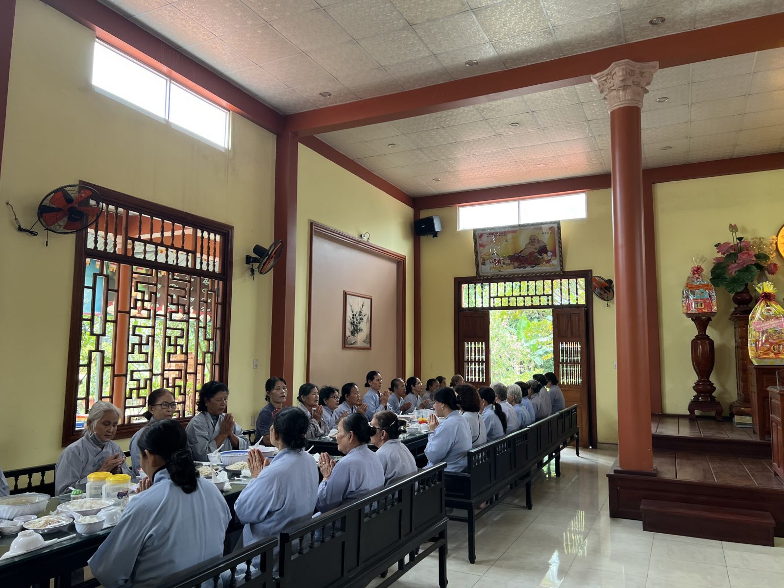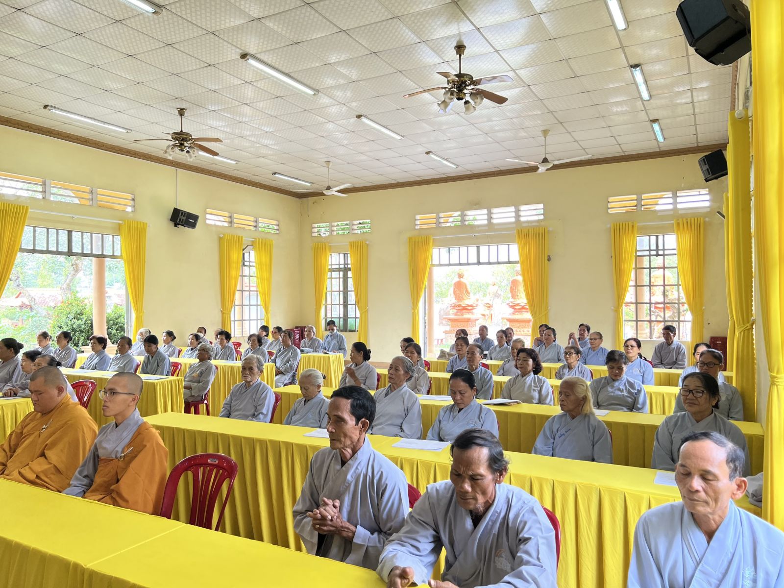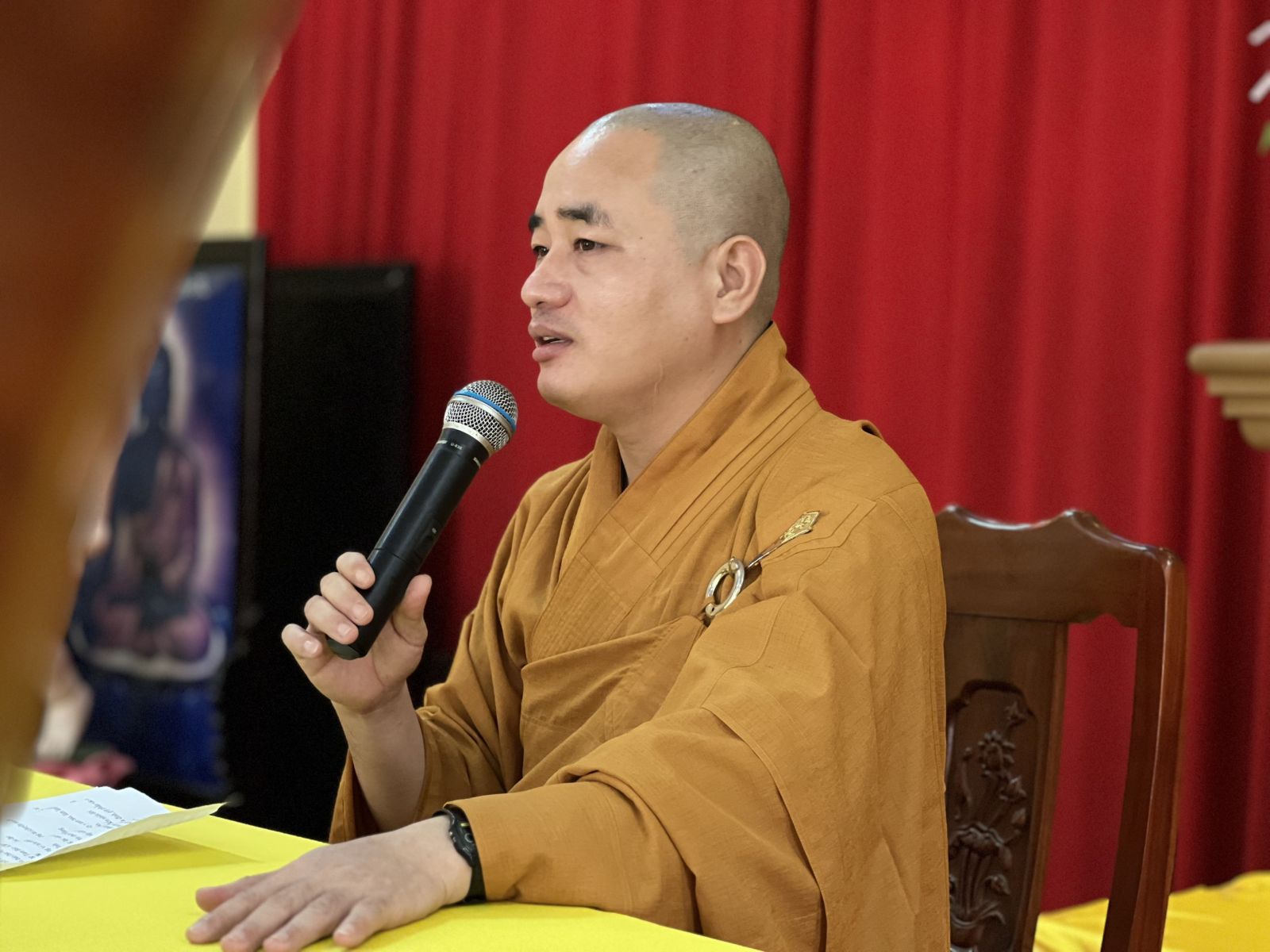 Đến với khóa tu một ngày Niệm Phật Đại đức Thích An Quang đã chia sẻ bài pháp thoại chủ đề: “Vai trò và trách nhiệm của người Phật tử trong thời hiện đại”. Trong bài Pháp thoại Đại đức giảng sư đã chia sẻ cùng quý Phật rằng: Mỗi người sinh ra trên đời đều có phước và nghiệp lực riêng biệt, tuy nhiên mỗi người có đủ duyên được quy y Tam bảo, sống hướng thiện là một điều khó. Thầy nhấn mạnh vai trò của người Phật tử rất quan trọng trong hàng chúng đệ tử Phật. Thời hiện đại vai trò của người Phật tử càng quan trọng hơn nữa. Ngoài việc hộ trì, cúng dường Tam Bảo ra cần phải xây dựng đạo dức cho tự thân mình đó là cách giúp những người thân trong gia đình có niềm tin Tam Bảo qua biểu tượng tu tập chuyển hóa, hướng thiện và hoàn thiện nhân cách đạo đức của mình. Bên cạnh đó người Phật tử phải cương quyết giữ đạo cho cá nhân mình và những người thân, không thể vì nhân hôn nhân mà bỏ đạo. Đặc biệt phải có niềm tin bất hoại vào nhân quả, khi có niềm tin vào nhân quả thì sẽ không vì chuyện bất như ý mà đánh mất cơ hội tu thiện được. Thầy nhấn mạnh thời hiện đại cơ hội tiếp cận thông tin từ mạng rất nhiều, việc học Phật rất dễ dàng vì vậy cách tiếp cận thông tin có chọn lọc sẽ đem lợi lạc cho tự thân mình. Mỗi một Phật tử hãy là một hoằng pháp viên bằng cách chia sẻ Pháp thoại và những sự kiện của Phật giáo. Tránh tiếp cận và chia sẻ những thông tin bất lợi và chống phá Phật giáo, làm được như vậy chính là một người Phật tử có trách nhiệm và thể hiện vai trò là đệ tử tại gia. Thời Pháp thoại khép lại cả Đại chúng tiếp tục tu học của mình bằng pháp kinh hành niệm Phật sau đó kinh hành về trai đường cử hành nghi thức quá dường và thọ trai trong sự trang nghiêm thanh tịnh.