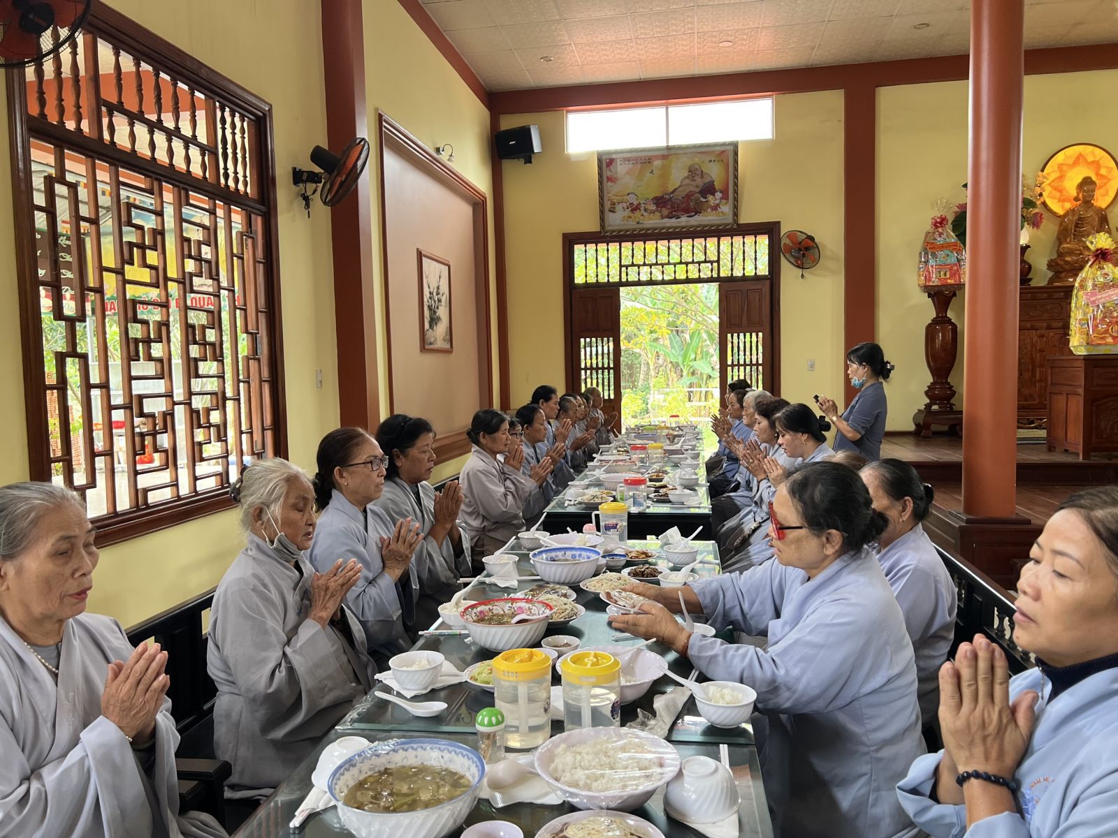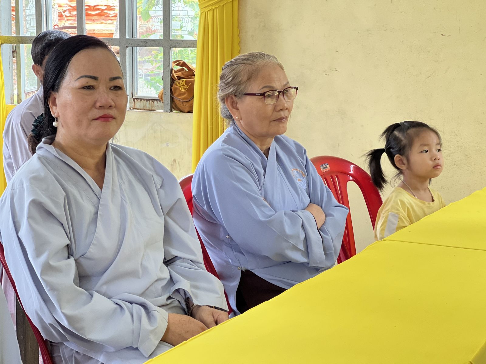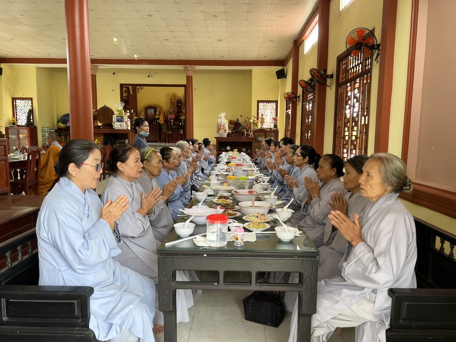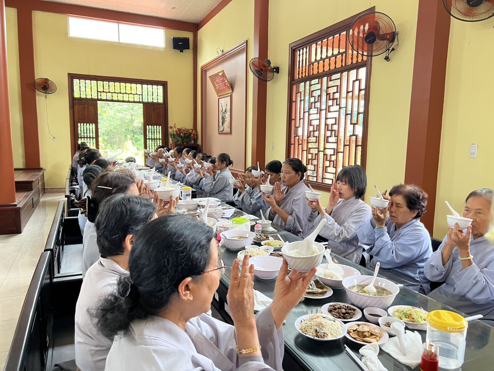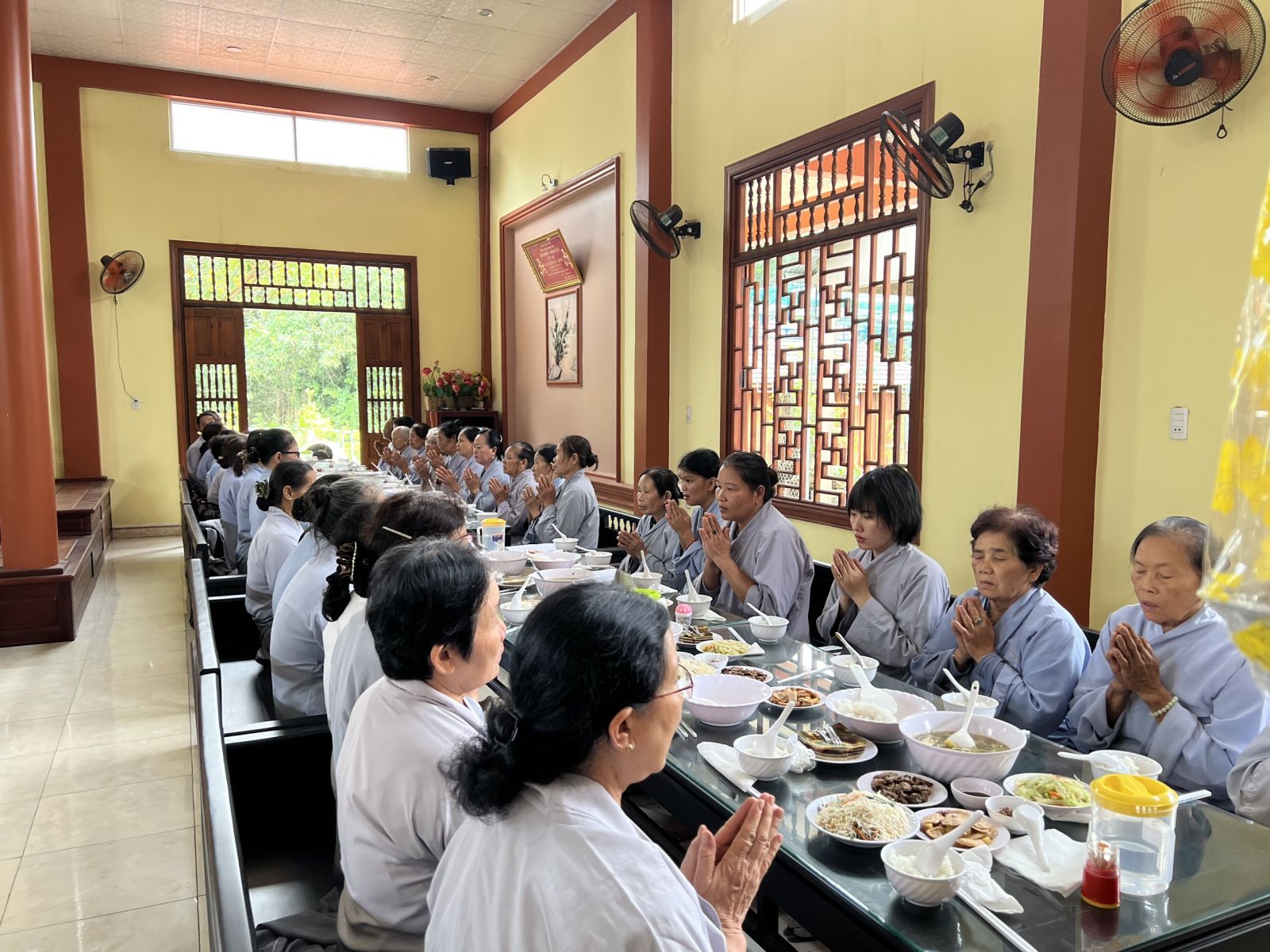 Đến với khóa tu một ngày Niệm Phật Đại đức Thích An Quang đã chia sẻ bài pháp thoại chủ đề: “Vai trò và trách nhiệm của người Phật tử trong thời hiện đại”. Trong bài Pháp thoại Đại đức giảng sư đã chia sẻ cùng quý Phật rằng: Mỗi người sinh ra trên đời đều có phước và nghiệp lực riêng biệt, tuy nhiên mỗi người có đủ duyên được quy y Tam bảo, sống hướng thiện là một điều khó. Thầy nhấn mạnh vai trò của người Phật tử rất quan trọng trong hàng chúng đệ tử Phật. Thời hiện đại vai trò của người Phật tử càng quan trọng hơn nữa. Ngoài việc hộ trì, cúng dường Tam Bảo ra cần phải xây dựng đạo dức cho tự thân mình đó là cách giúp những người thân trong gia đình có niềm tin Tam Bảo qua biểu tượng tu tập chuyển hóa, hướng thiện và hoàn thiện nhân cách đạo đức của mình. Bên cạnh đó người Phật tử phải cương quyết giữ đạo cho cá nhân mình và những người thân, không thể vì nhân hôn nhân mà bỏ đạo. Đặc biệt phải có niềm tin bất hoại vào nhân quả, khi có niềm tin vào nhân quả thì sẽ không vì chuyện bất như ý mà đánh mất cơ hội tu thiện được. Thầy nhấn mạnh thời hiện đại cơ hội tiếp cận thông tin từ mạng rất nhiều, việc học Phật rất dễ dàng vì vậy cách tiếp cận thông tin có chọn lọc sẽ đem lợi lạc cho tự thân mình. Mỗi một Phật tử hãy là một hoằng pháp viên bằng cách chia sẻ Pháp thoại và những sự kiện của Phật giáo. Tránh tiếp cận và chia sẻ những thông tin bất lợi và chống phá Phật giáo, làm được như vậy chính là một người Phật tử có trách nhiệm và thể hiện vai trò là đệ tử tại gia. Thời Pháp thoại khép lại cả Đại chúng tiếp tục tu học của mình bằng pháp kinh hành niệm Phật sau đó kinh hành về trai đường cử hành nghi thức quá dường và thọ trai trong sự trang nghiêm thanh tịnh.