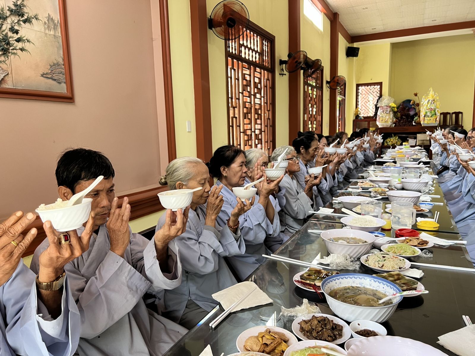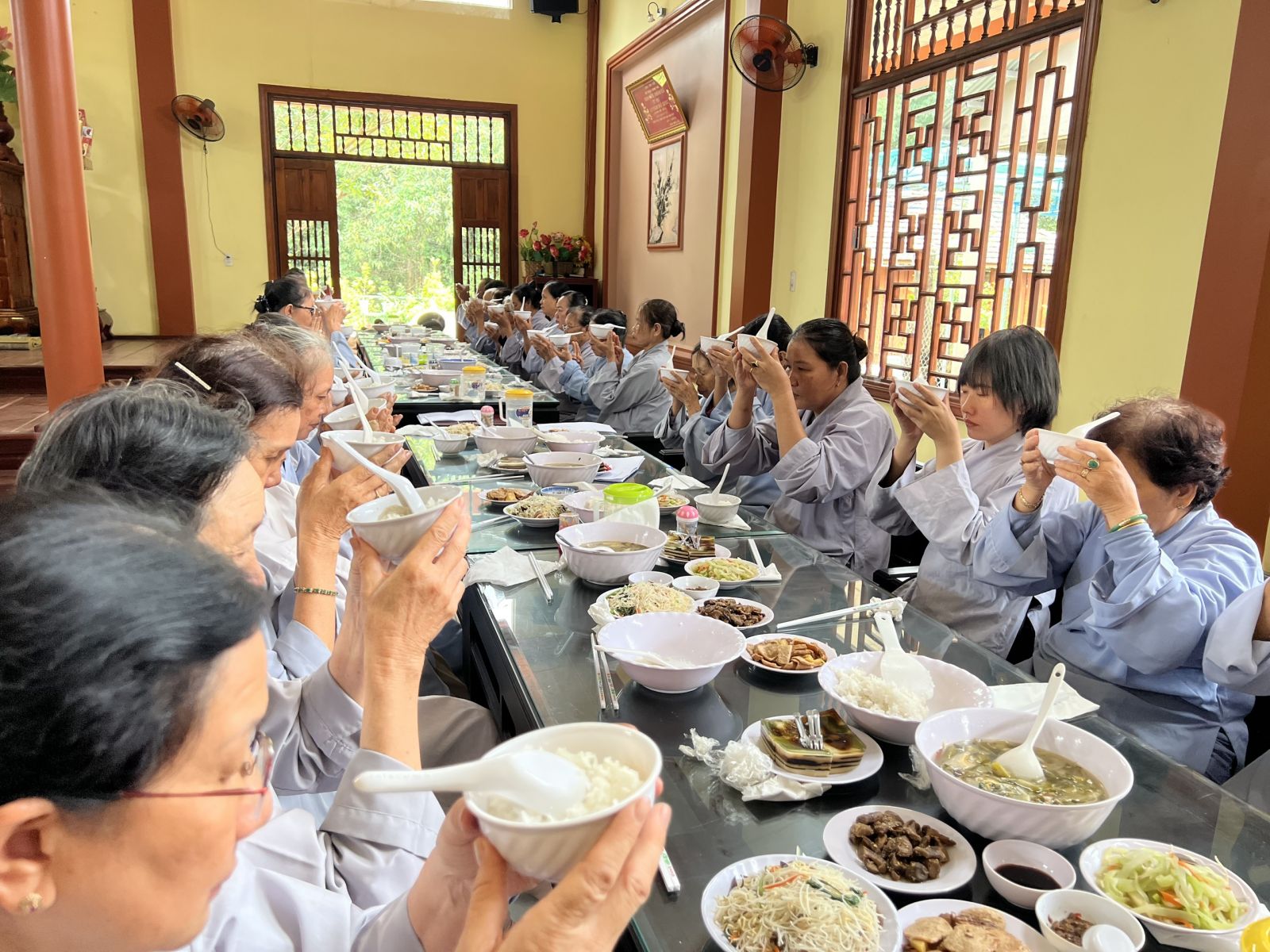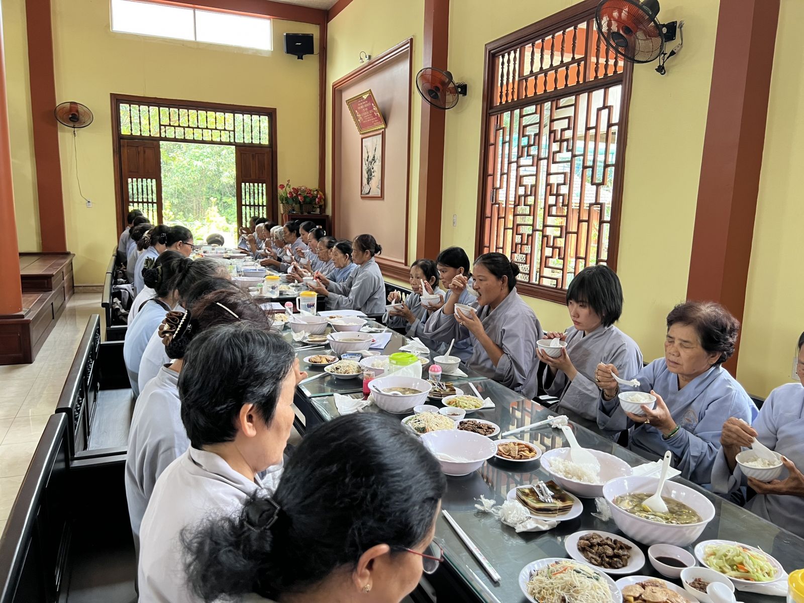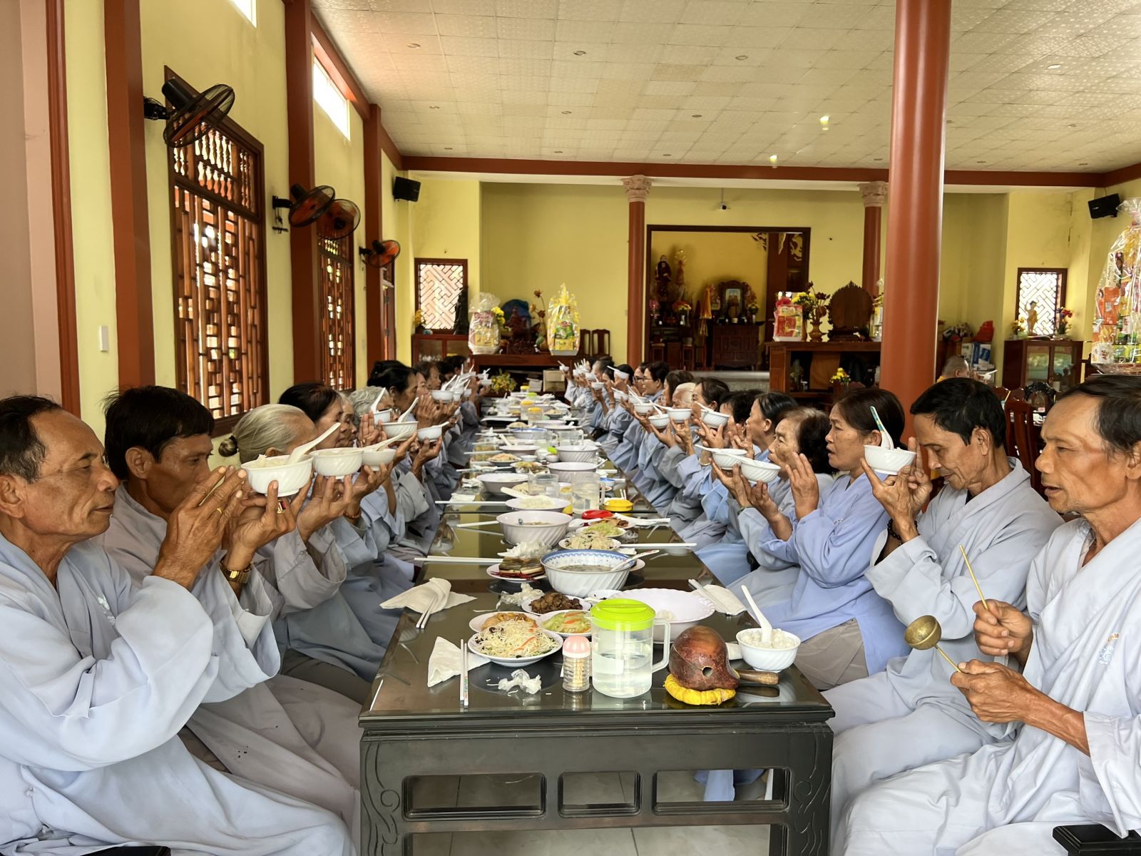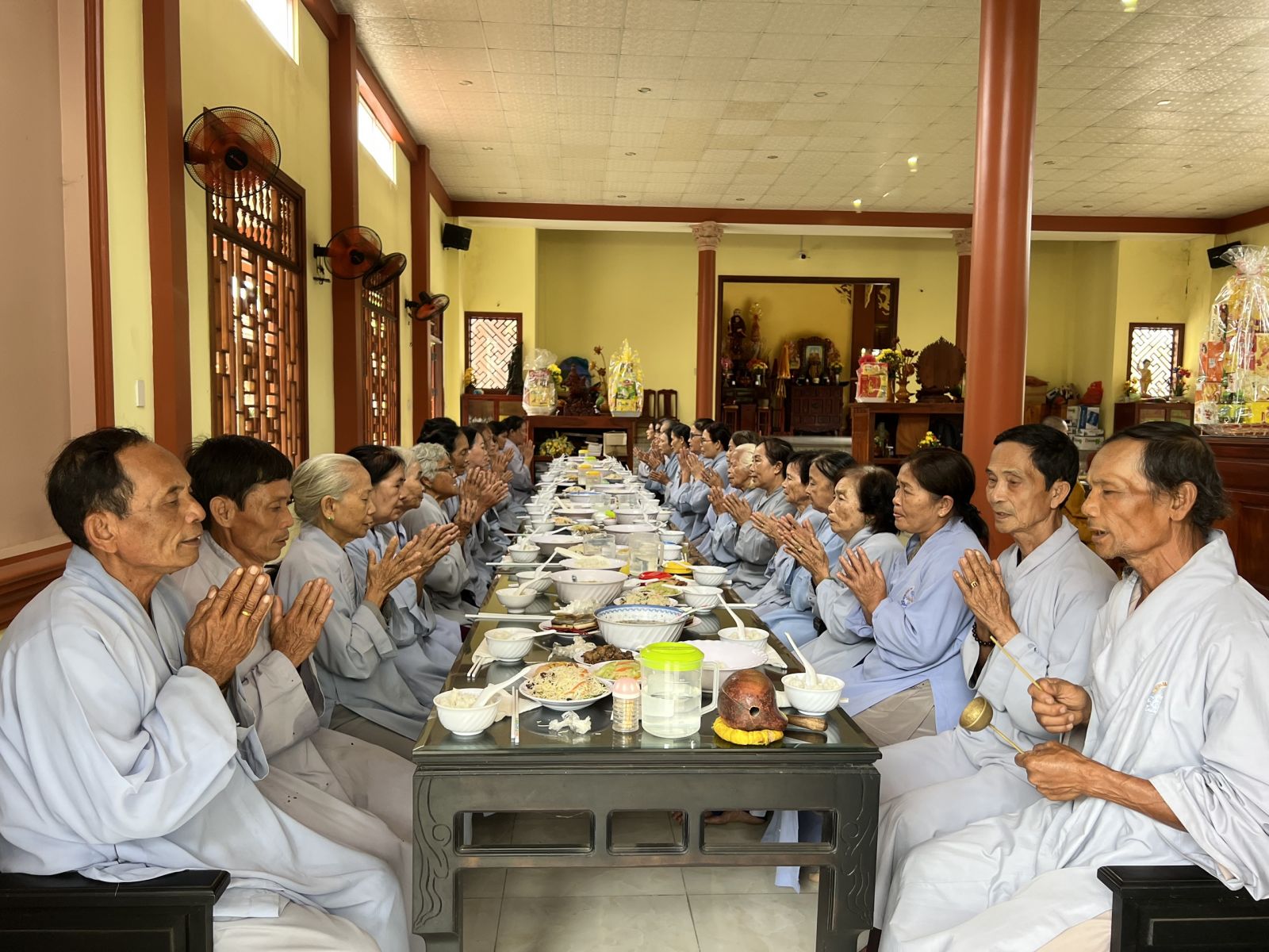 Đến với khóa tu một ngày Niệm Phật Đại đức Thích An Quang đã chia sẻ bài pháp thoại chủ đề: “Vai trò và trách nhiệm của người Phật tử trong thời hiện đại”. Trong bài Pháp thoại Đại đức giảng sư đã chia sẻ cùng quý Phật rằng: Mỗi người sinh ra trên đời đều có phước và nghiệp lực riêng biệt, tuy nhiên mỗi người có đủ duyên được quy y Tam bảo, sống hướng thiện là một điều khó. Thầy nhấn mạnh vai trò của người Phật tử rất quan trọng trong hàng chúng đệ tử Phật. Thời hiện đại vai trò của người Phật tử càng quan trọng hơn nữa. Ngoài việc hộ trì, cúng dường Tam Bảo ra cần phải xây dựng đạo dức cho tự thân mình đó là cách giúp những người thân trong gia đình có niềm tin Tam Bảo qua biểu tượng tu tập chuyển hóa, hướng thiện và hoàn thiện nhân cách đạo đức của mình. Bên cạnh đó người Phật tử phải cương quyết giữ đạo cho cá nhân mình và những người thân, không thể vì nhân hôn nhân mà bỏ đạo. Đặc biệt phải có niềm tin bất hoại vào nhân quả, khi có niềm tin vào nhân quả thì sẽ không vì chuyện bất như ý mà đánh mất cơ hội tu thiện được. Thầy nhấn mạnh thời hiện đại cơ hội tiếp cận thông tin từ mạng rất nhiều, việc học Phật rất dễ dàng vì vậy cách tiếp cận thông tin có chọn lọc sẽ đem lợi lạc cho tự thân mình. Mỗi một Phật tử hãy là một hoằng pháp viên bằng cách chia sẻ Pháp thoại và những sự kiện của Phật giáo. Tránh tiếp cận và chia sẻ những thông tin bất lợi và chống phá Phật giáo, làm được như vậy chính là một người Phật tử có trách nhiệm và thể hiện vai trò là đệ tử tại gia. Thời Pháp thoại khép lại cả Đại chúng tiếp tục tu học của mình bằng pháp kinh hành niệm Phật sau đó kinh hành về trai đường cử hành nghi thức quá dường và thọ trai trong sự trang nghiêm thanh tịnh.