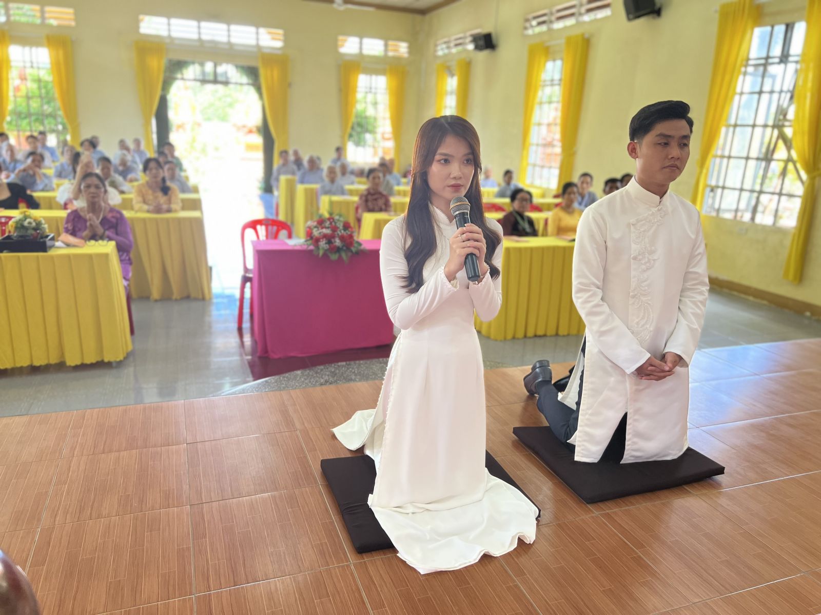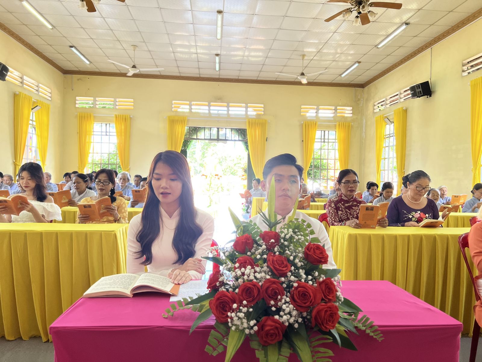 Có thể nói đây chính là một buổi lễ Hằng Thuận đặc biệt nhất vì cô dâu và chú rể là đôi uyên ương có mỗi người một niềm tin tôn giác khác biệt nhau. Tại buổi lễ sau nghi thức cầu nguyện thì toàn thể hội chúng đã được chư tôn đức hướng dẫn tụng bài kinh Thiện Sinh để chúc phúc cho đôi bạn trẻ.