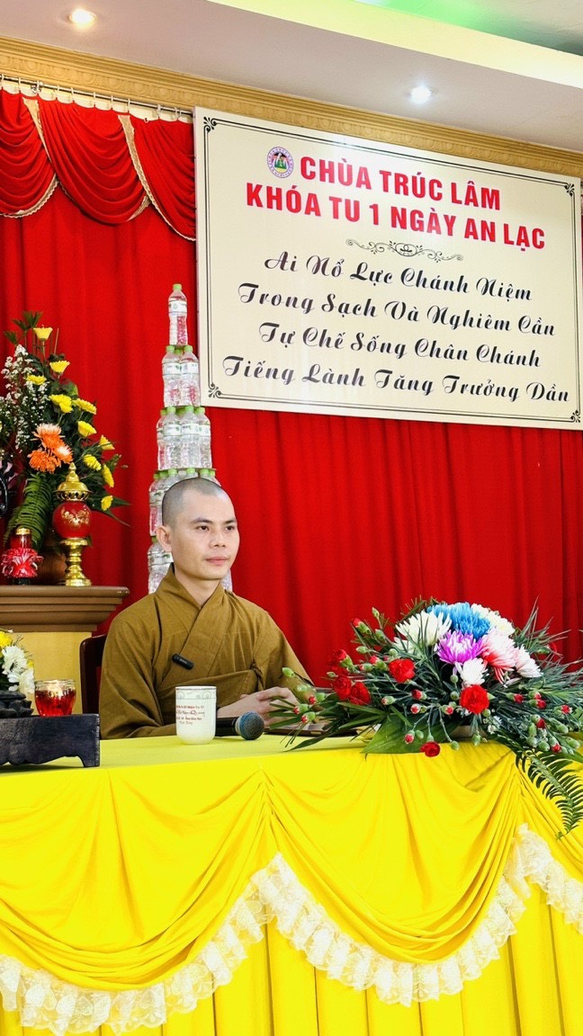 Trong bài Pháp thoại Đại đức chia sẻ: Đức Phật dạy niềm tin là mẹ sinh ra các công đức, vì thế chúng ta là Phật tử và hôm nay được tu học nơi ngôi chùa Trúc Lâm này khi nghe pháp, có niềm tin vào chánh pháp và thực hành pháp đức Phật dạy thì công đức chúng ta tăng trưởng. Thiện pháp tăng trưởng thì ác pháp sẽ không có cơ hội sanh khởi cho nên chúng ta sẽ được an lành và hạnh phúc trong cuộc sống này. Đại đức giảng sư cũng khuyến tấn quý Phật tử phải có niềm tin đúng đắn lấy trí tuệ soi sáng dẫn đường, muốn có trí tuệ thì mỗi cá nhân cần phải học hiểu chánh pháp và thân cận những bậc minh sư. Khi ngọn đèn trí tuệ được thắp sáng thì chúng sẽ không lầm đường lạc lối, chúng ta sẽ nhận ra được 4 sự thật khổ tập diệt đạo, chúng ta sẽ thành tựu được giải thoát, giác ngộ và Niết-bàn. Đây chính là điều tuyệt vời nhất mà mỗi chúng cần hướng tới. Thời Pháp thoại khép lại trong niềm hoan hỷ của cả Đại chúng sau đó Đạo tràng tu học tiếp tục thời khóa kinh hành niệm Phật về Chánh điện và trai đường cử hành nghi thức quá đường và thọ trai trong sự trang nghiêm thanh tịnh.