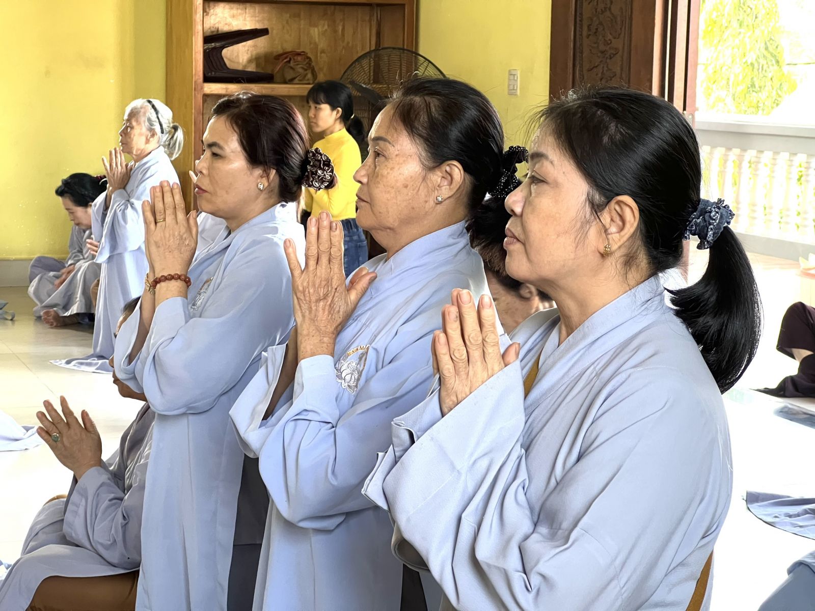 Vào lúc 13h00’ sau giờ chỉ tịnh cả Đại chúng bắt đầu thời khóa tu học buổi chiều bằng pháp tọa thiền tĩnh tâm, sau đó cả đại chúng tiếp tục trì danh hiệu đức Phật A Di Đà, tụng kinh và hướng về Tam Bảo thực hành nghi thức hồi hướng kết khóa tu học một ngày Niệm Phật.