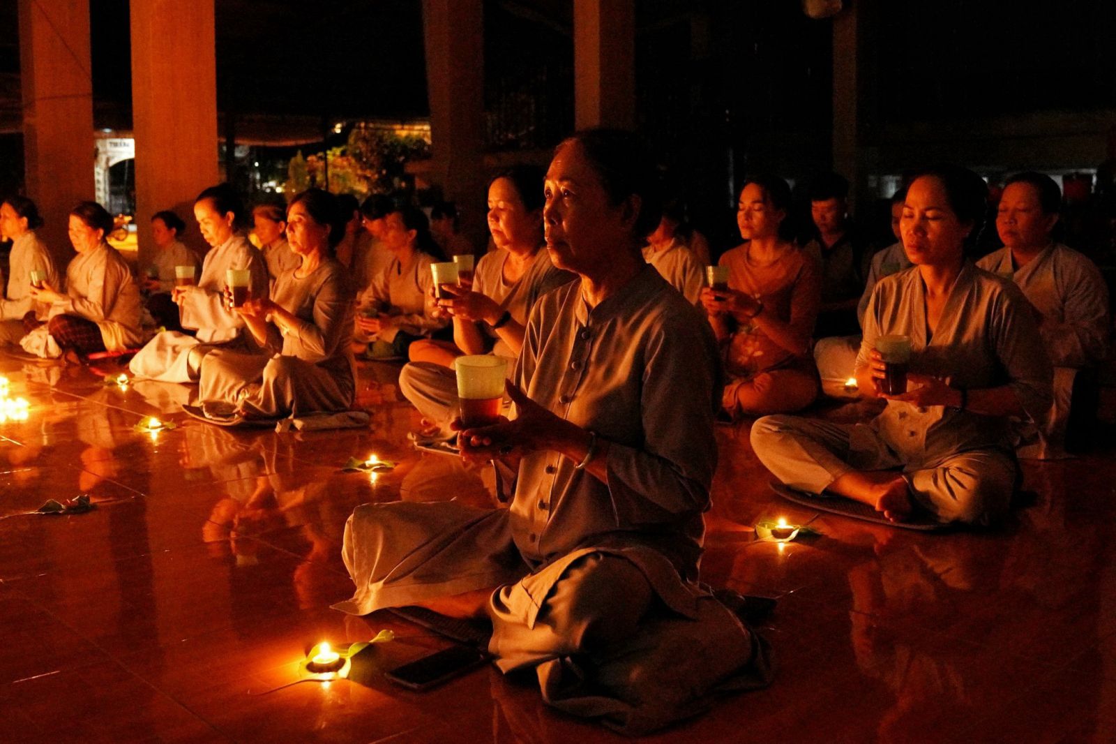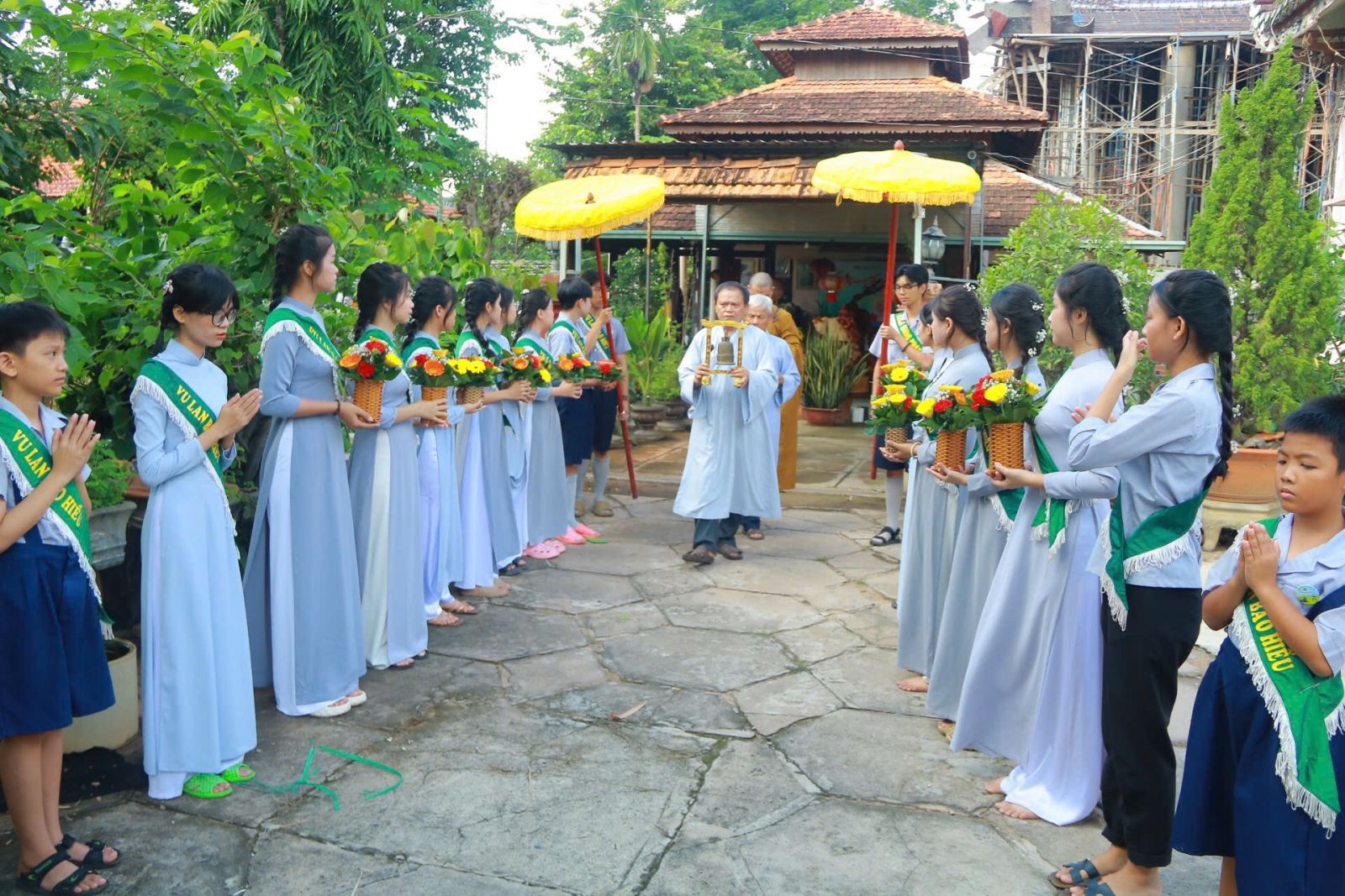 Trong khung cảnh trang nghiêm và thanh tịnh đạo tràng thay mặt đạo tràng Phật tử Ban Nghi lễ tác pháp cung nghinh quý tôn đức quang lâm đạo tràng.