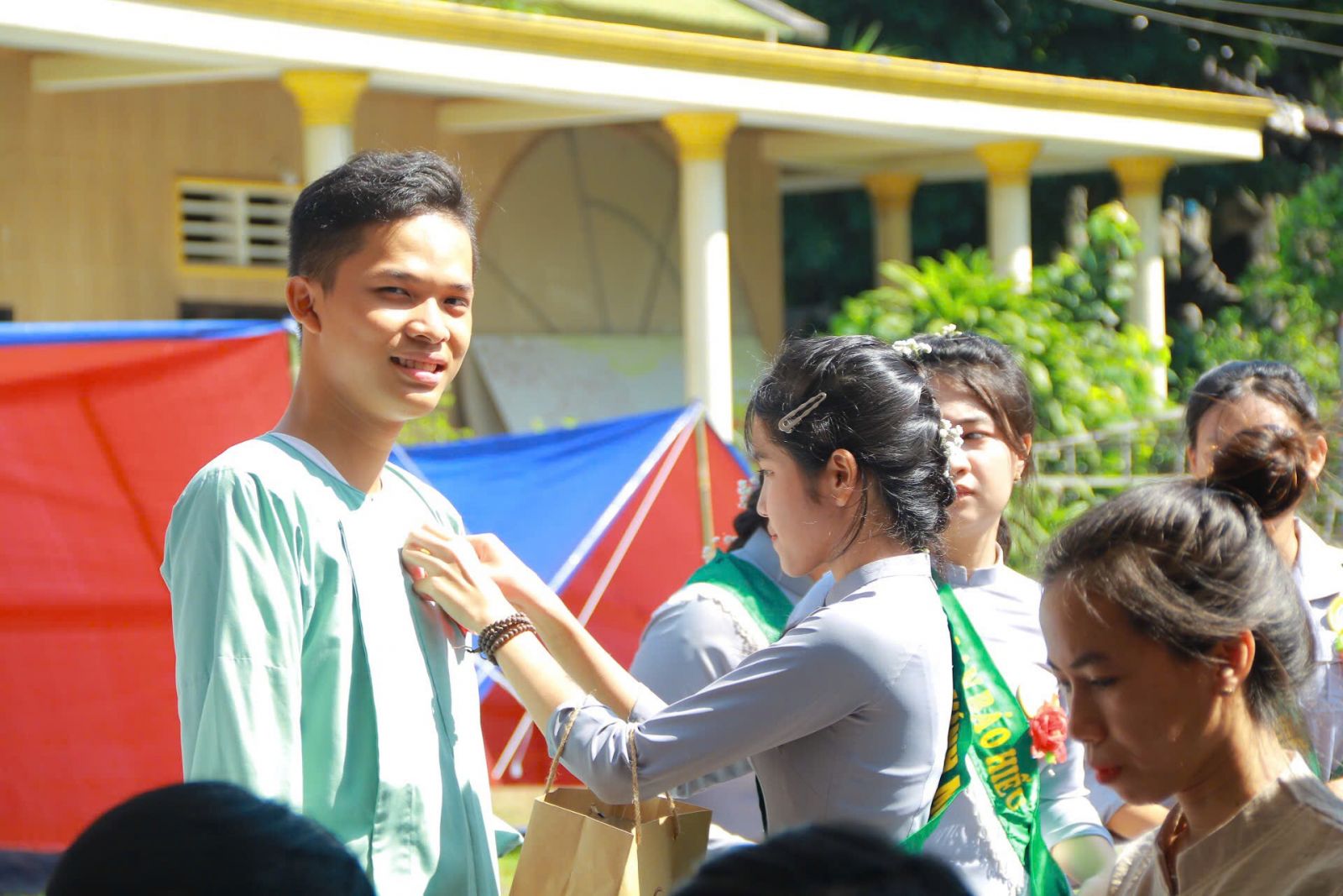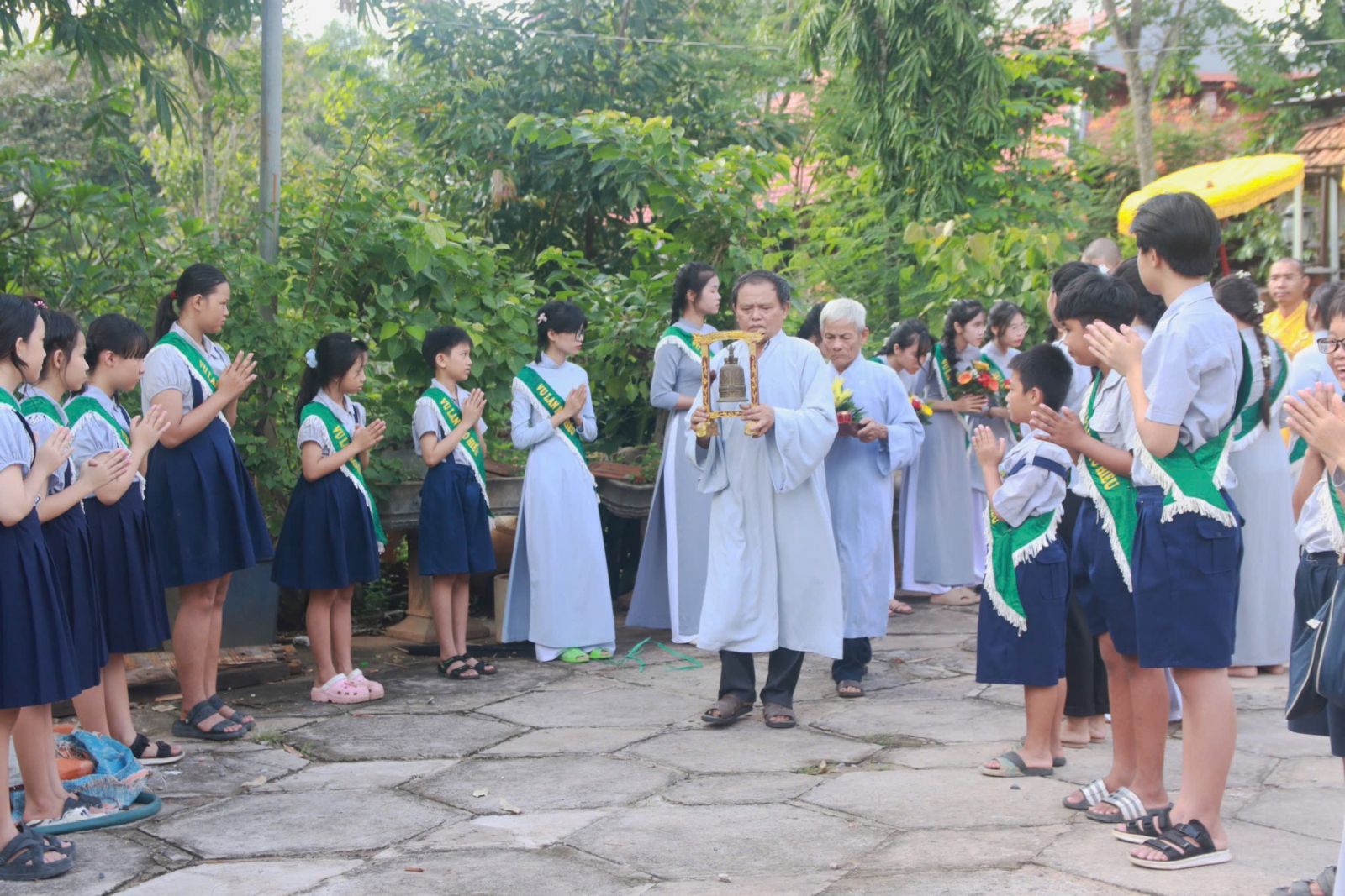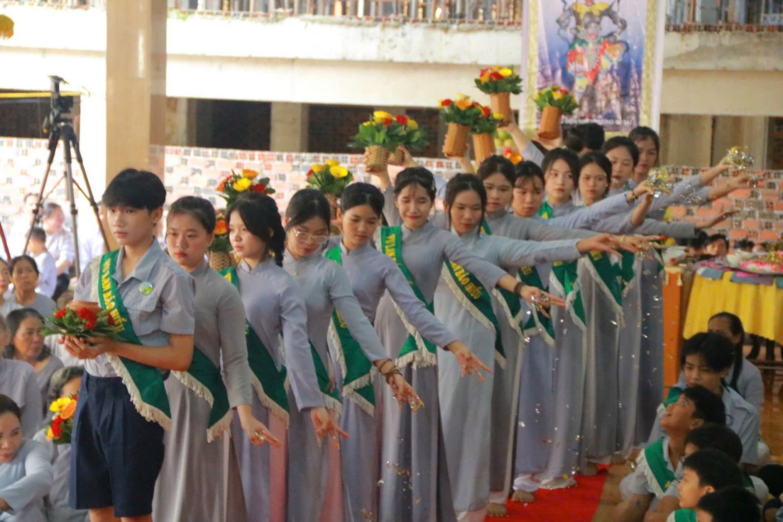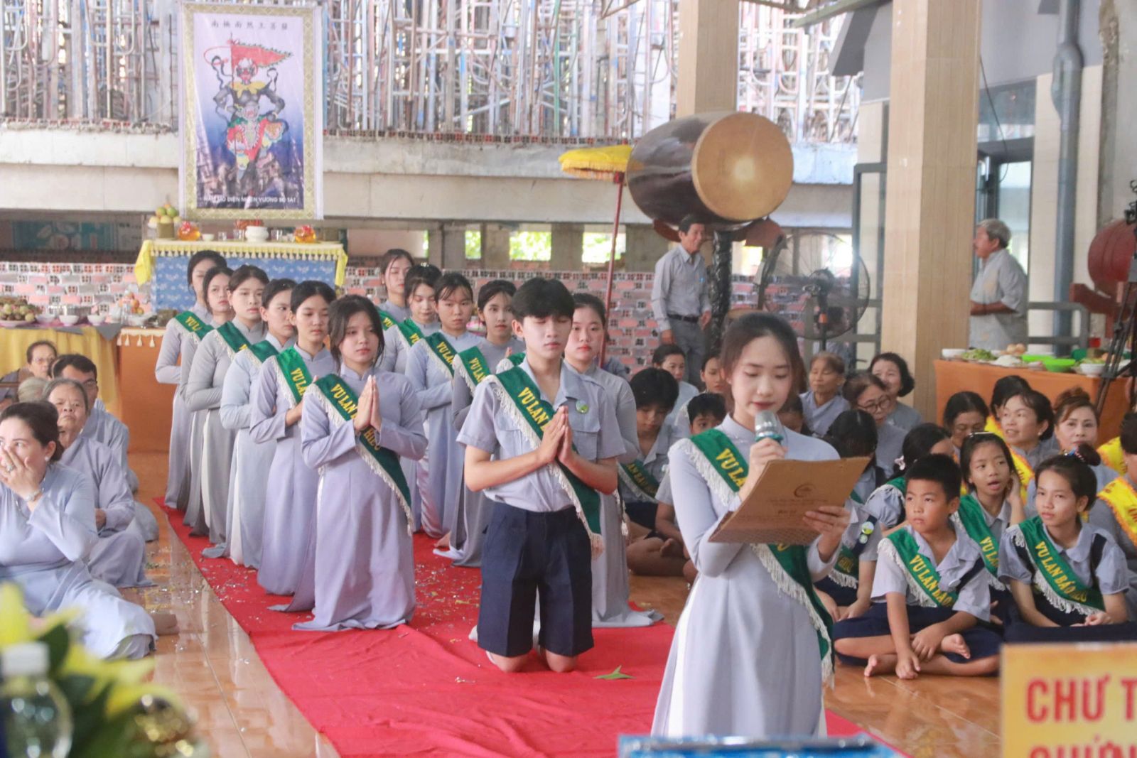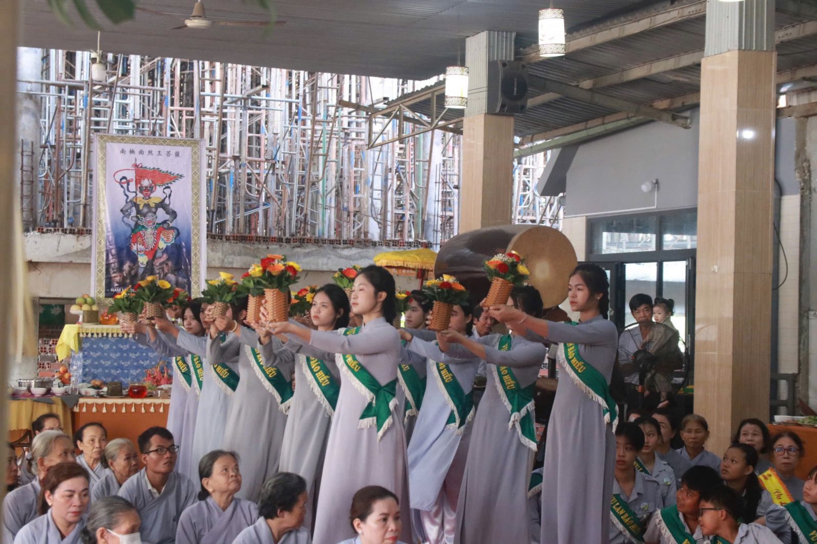 Sau lời Diễn Từ Đại Lễ Vu Lan của đại đức trụ trì trưởng ban tổ chức là dâng hoa cúng dường của các em GĐPT Khánh Tâm.