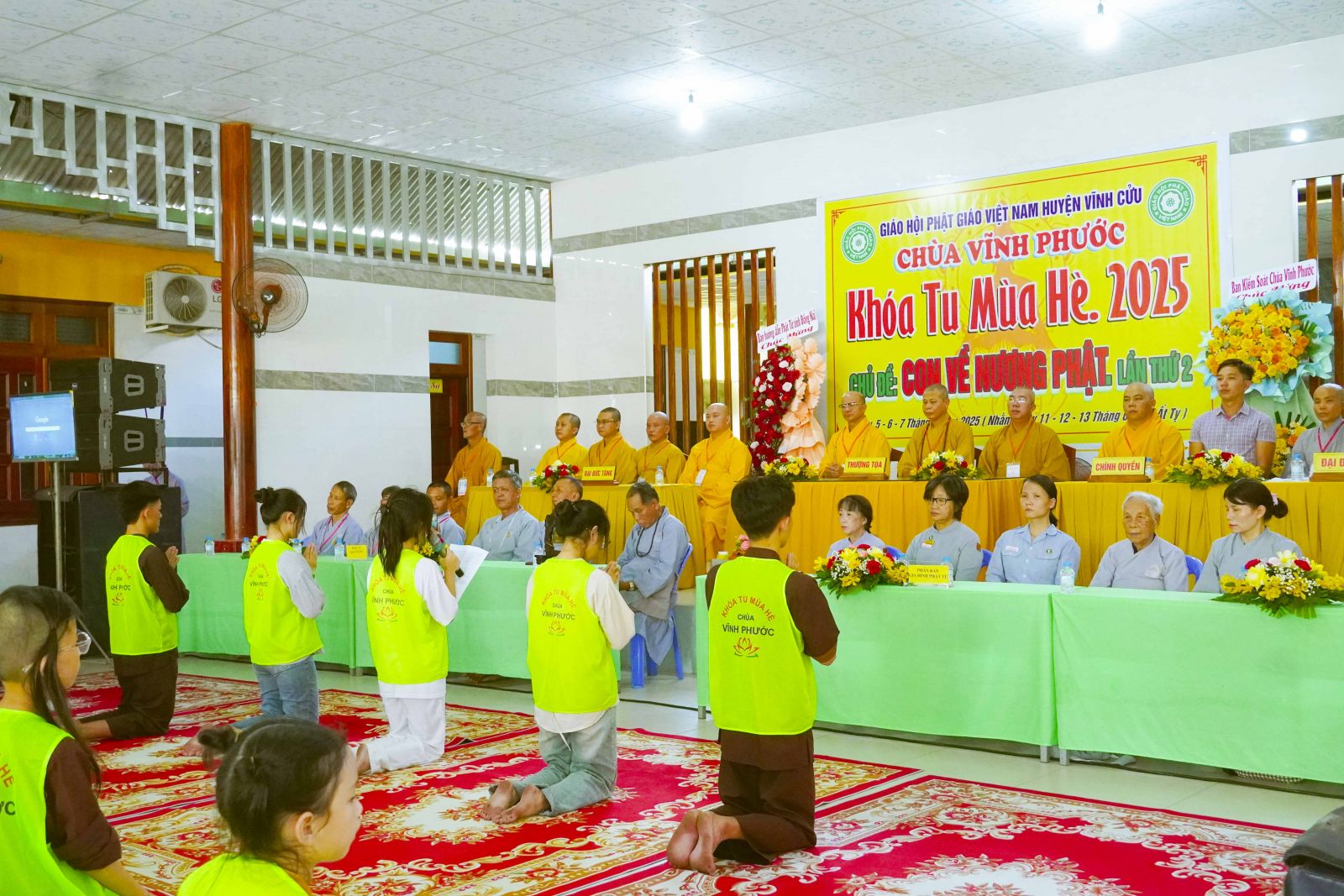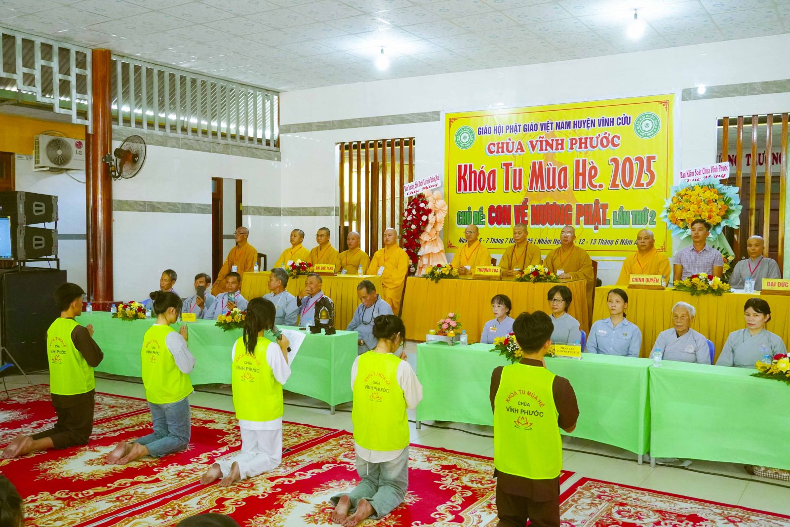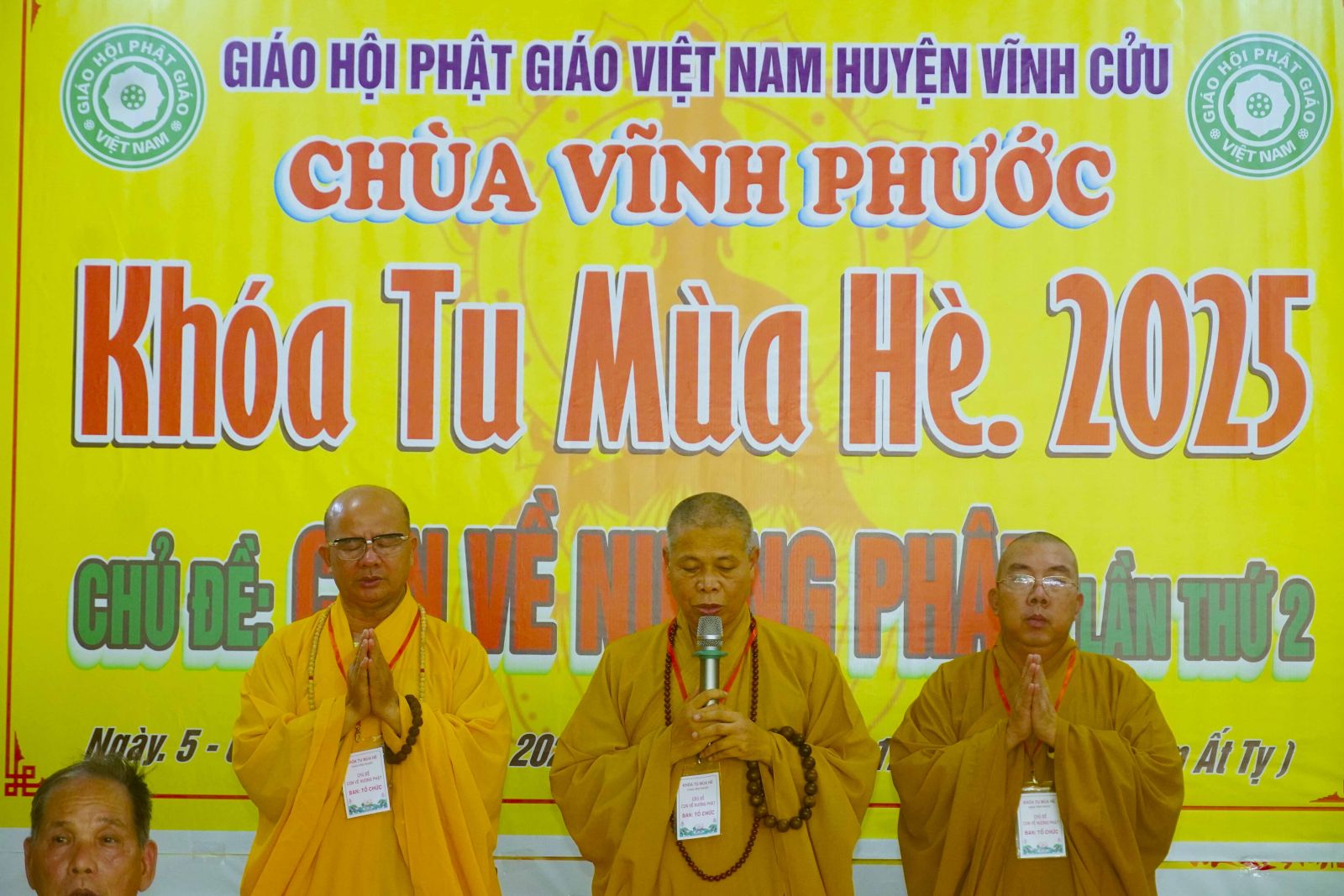 Khai mạc Khóa tu ĐĐ. Thích Huệ Lực phát biểu: Với mong muốn tạo điều kiện cho các em thanh thiếu niên được về chùa tu tập, vui chơi, rèn luyện đạo đức, xây dựng lại những nét đẹp trong tâm hồn trẻ thơ, với ý nghĩa đó chùa Vĩnh Phước tổ chức khóa tu mùa hè 2025 chủ đề "Con Về Nương Phật" lần thứ 2 trong 3 ngày 5 - 6- 7 tháng 7 năm 2025. Giúp cho các em có dịp để trở về vui chơi tu tập, giao lưu học hỏi thêm những điều tốt đẹp dưới sự hướng dẫn của Ban Tổ chức.