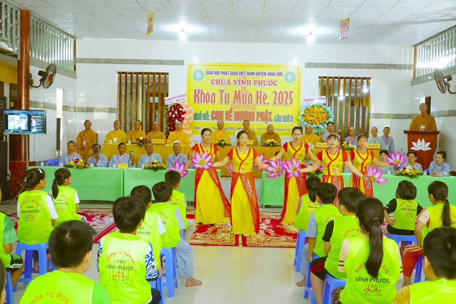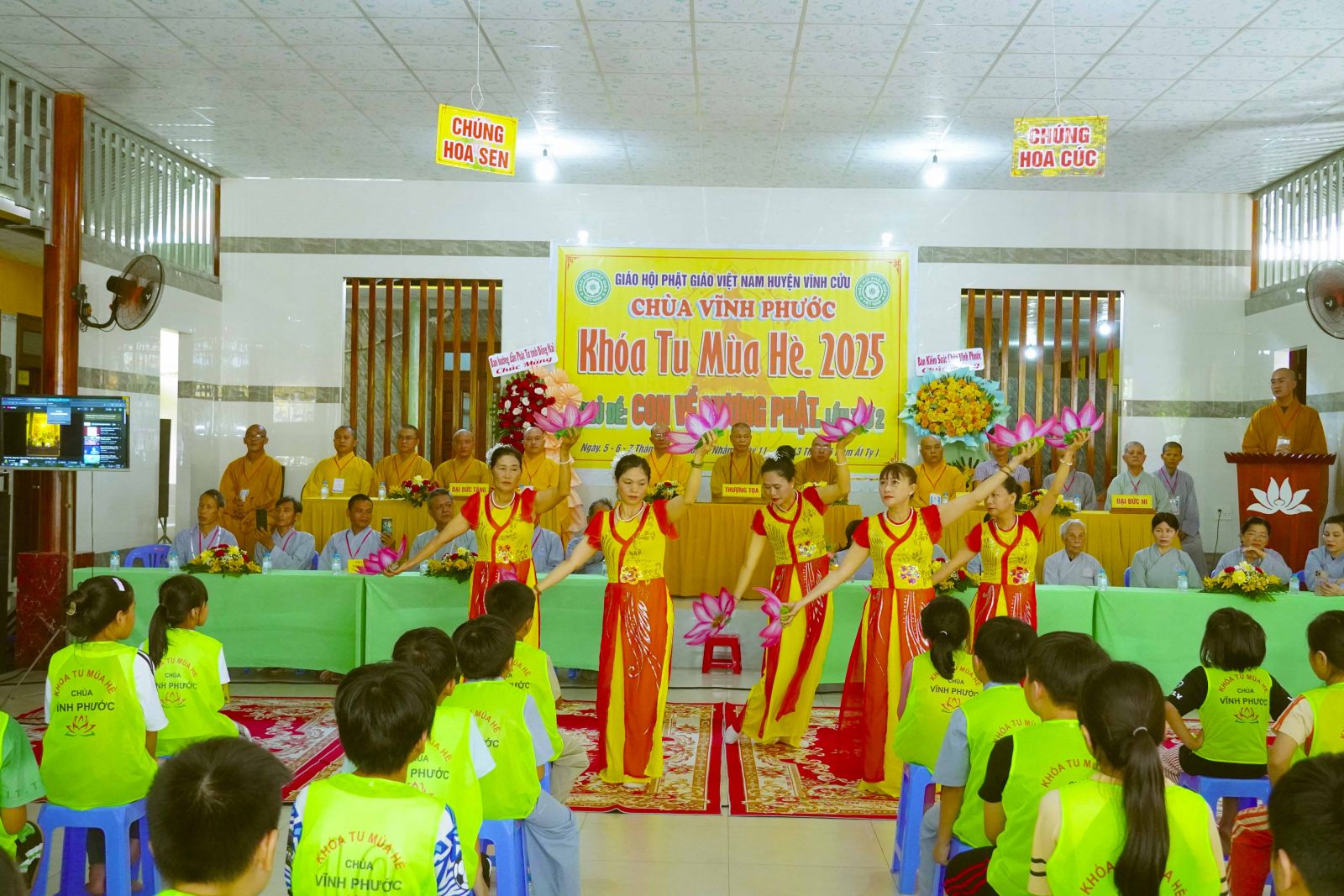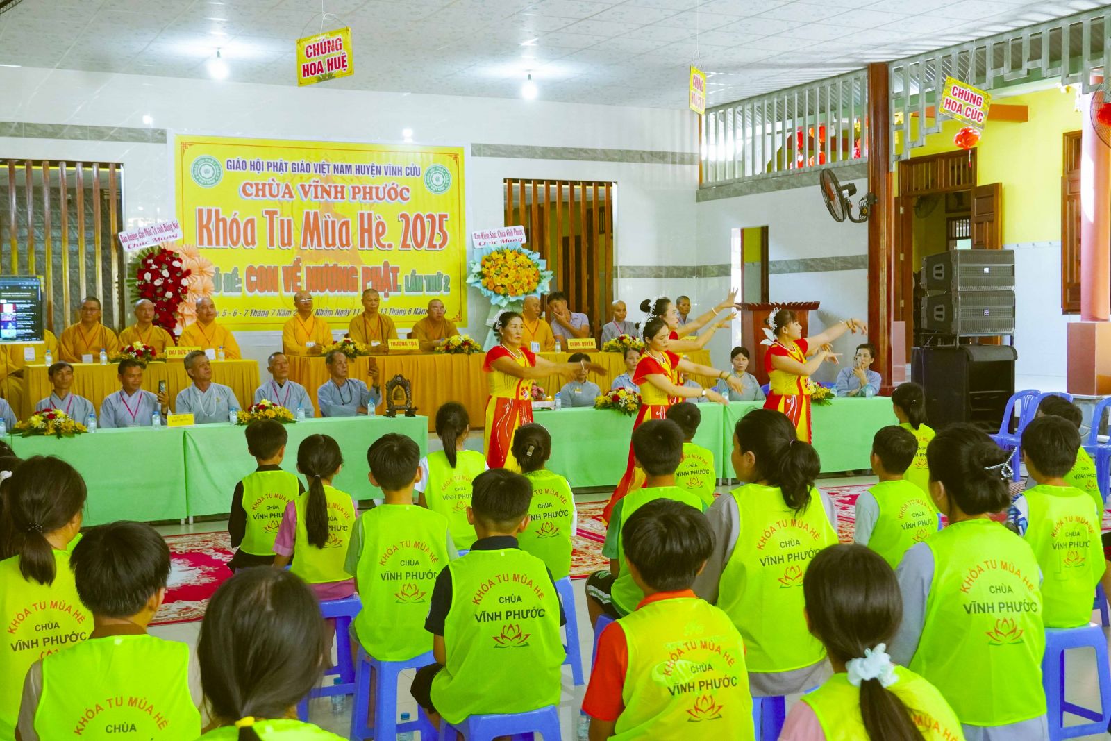 Khai mạc Khóa tu ĐĐ. Thích Huệ Lực phát biểu: Với mong muốn tạo điều kiện cho các em thanh thiếu niên được về chùa tu tập, vui chơi, rèn luyện đạo đức, xây dựng lại những nét đẹp trong tâm hồn trẻ thơ, với ý nghĩa đó chùa Vĩnh Phước tổ chức khóa tu mùa hè 2025 chủ đề "Con Về Nương Phật" lần thứ 2 trong 3 ngày 5 - 6- 7 tháng 7 năm 2025. Giúp cho các em có dịp để trở về vui chơi tu tập, giao lưu học hỏi thêm những điều tốt đẹp dưới sự hướng dẫn của Ban Tổ chức.