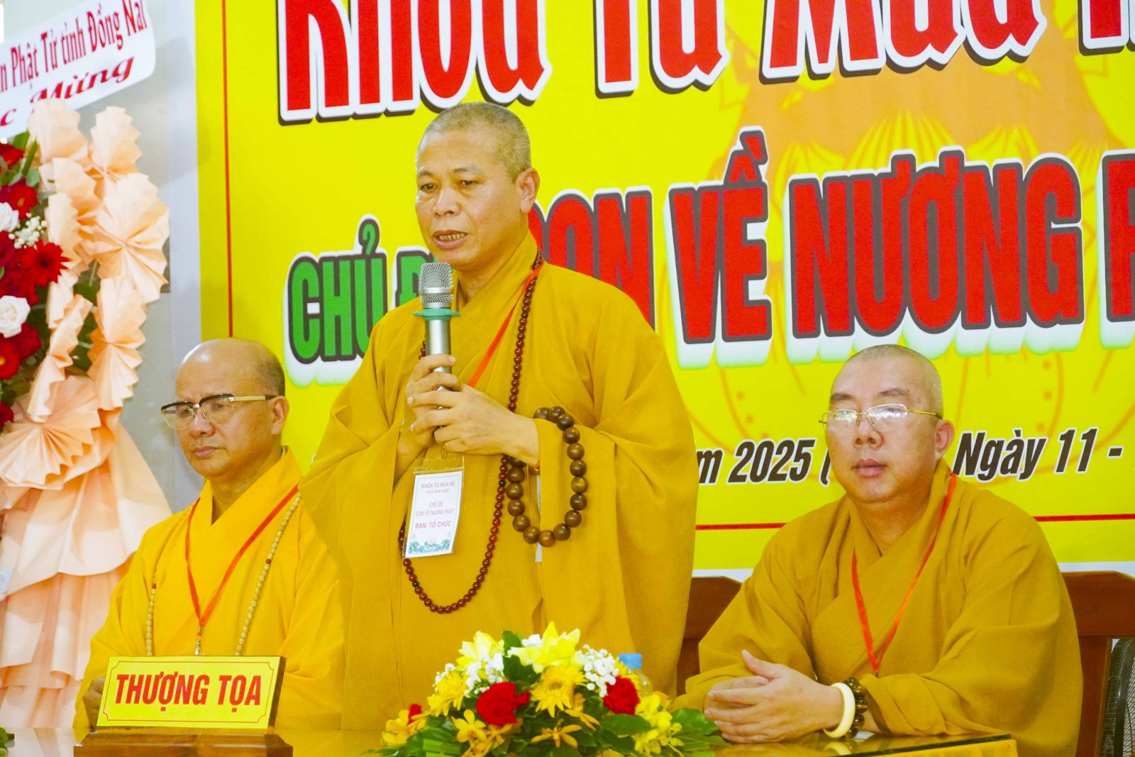 Đạo từ tại buổi lễ Khai mạc, TT. Thích Huệ Tánh – Trưởng ban Hướng dẫn Phật tử GHPGVN tỉnh Đồng Nai đã gửi lời chúc mừng đến Ban Tổ chức Khóa tu và cảm ơn chính quyền địa phương các cấp đã tạo điều kiện mở ra sân chơi bổ ích cho Thanh Thiếu nhi con em Phật tử xa gần về tham dự. Đây là một việc làm tốt đẹp giúp các em vừa tu học, vừa vui chơi tránh xa những cái xấu, những tệ nạn của xã hội hiện nay.