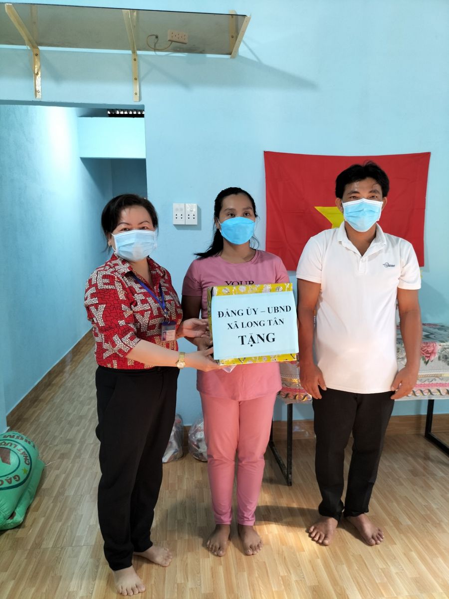 Đại diện chính quyền có: Ông Nguyễn Thanh Hoà – Phó chủ tịch UBMTTQVN huyện Nhơn Trạch; bà Phan Thị Hiệp – PCT Hội Chữ Thập Đỏ huyện cùng lãnh đạo, chính quyền xã Long Tân.