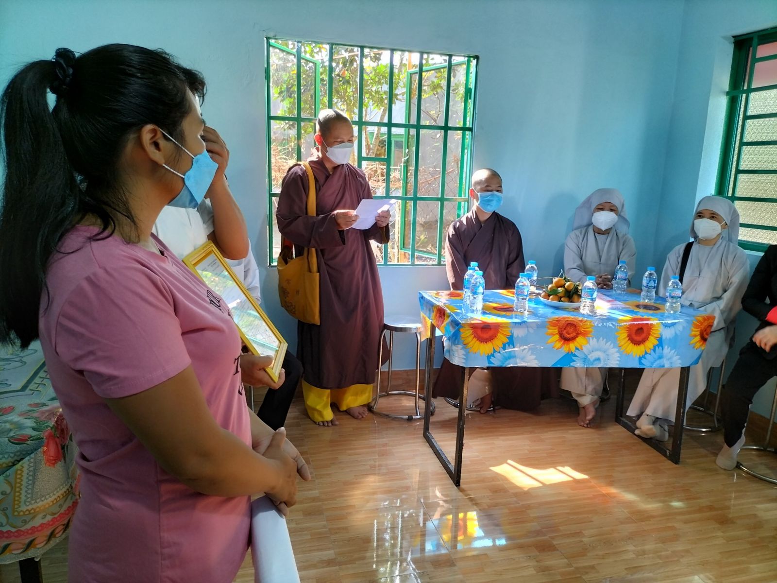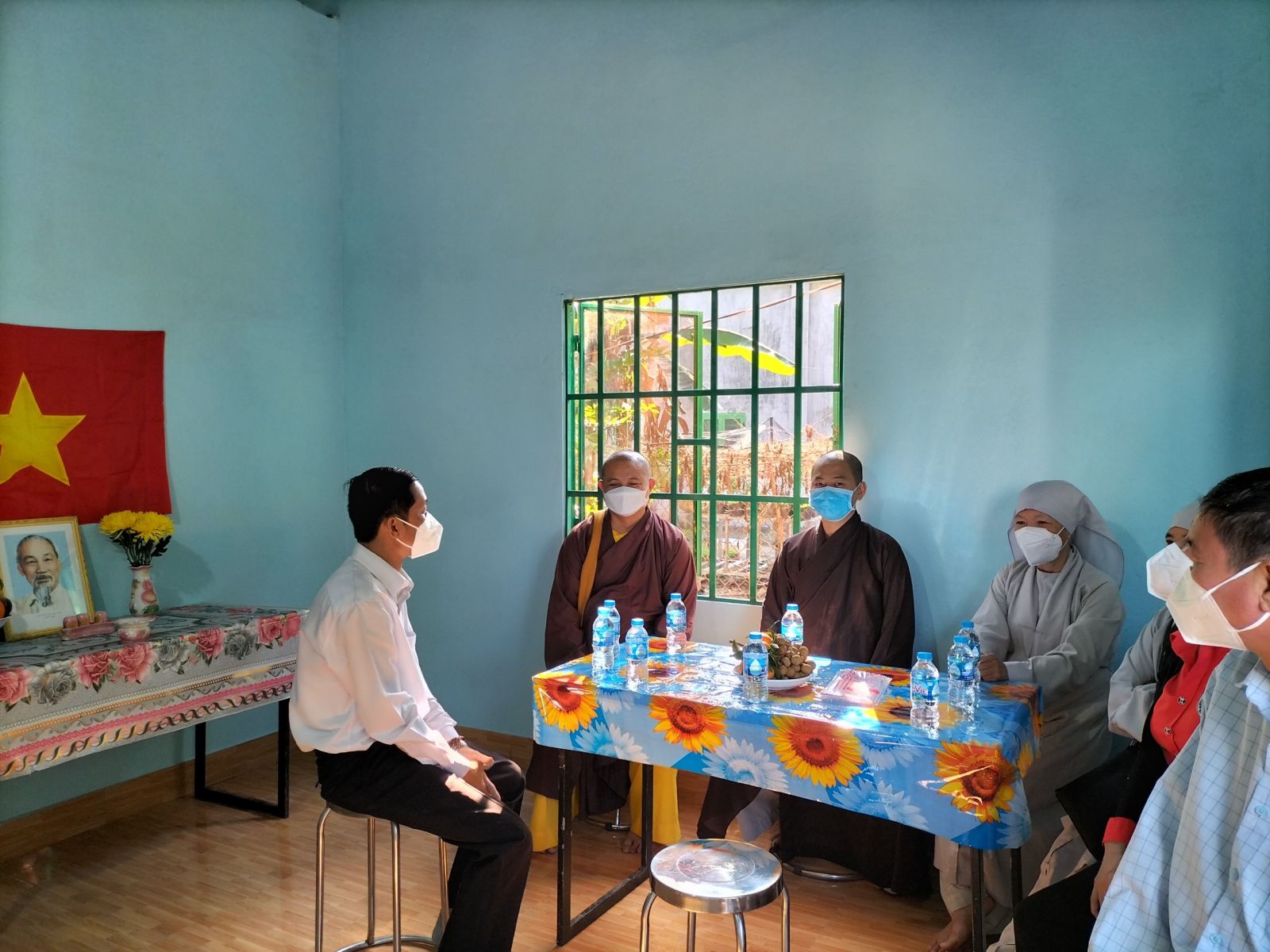 Trong không khí ấm áp tràn đầy niềm hoan hỷ thắm đượm nghĩa tình, ĐĐ. Thích Đạo Viên thay mặt Ban Trị sự phát biểu ý kiến, bày tỏ lòng tri ân sâu sắc đến lãnh đạo huyện Nhơn Trạch và xã Long Tân đã tạo điều kiện cho Ban Trị sự GHPGVN huyện làm Phật sự. Với tinh thần “Từ bi cứu khổ” của đạo Phật, Ban Trị sự đã chia sẻ đểgiúp gia đình có căn nhà ấm áp, che mưa nắng với lời cầu chúc gia đình mạnh khỏe, cố gắng vượt khó vươn lên thoát nghèo.