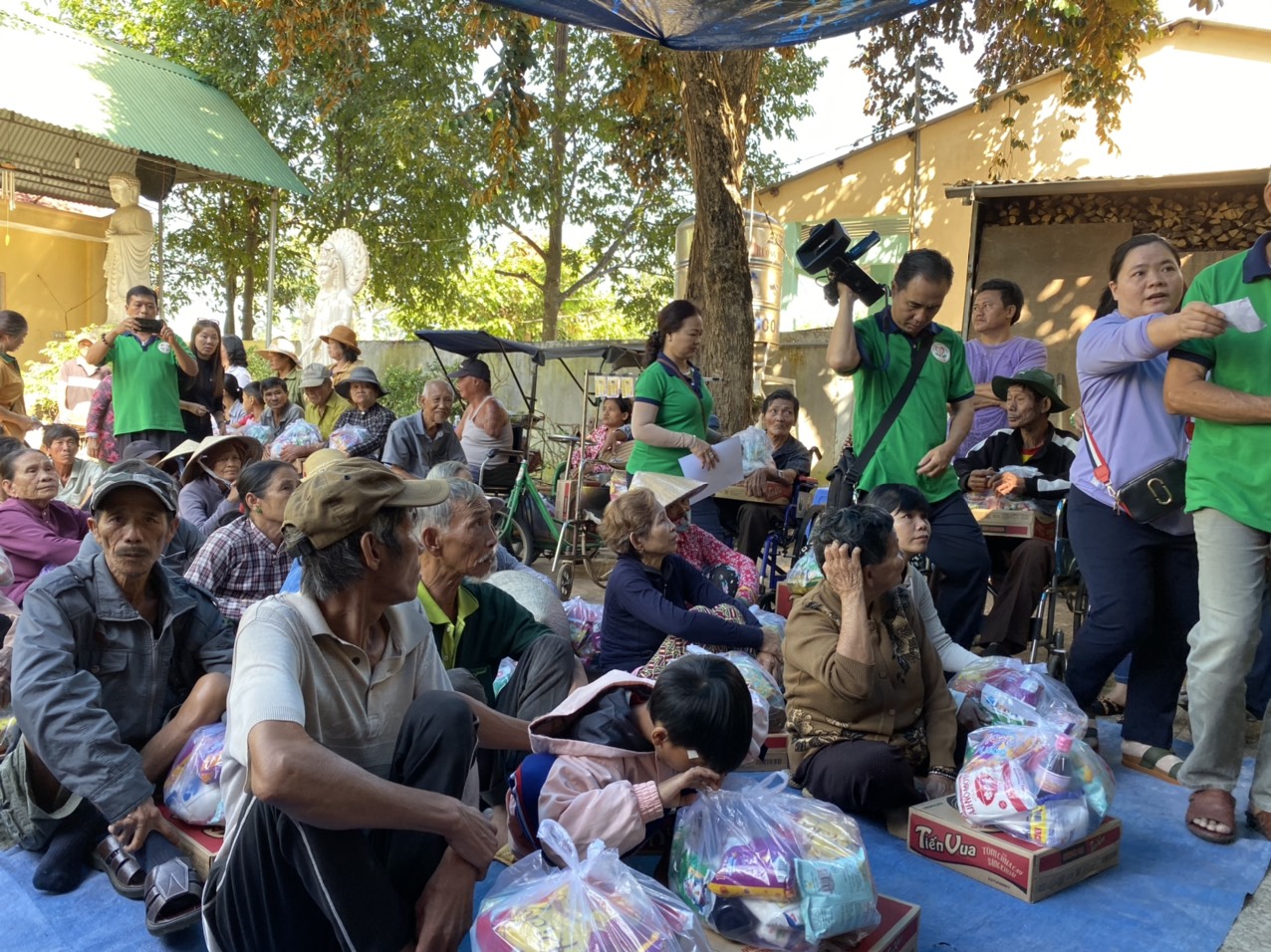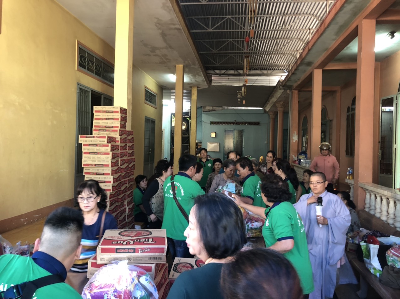 Chương trình tặng quà có sự hiện diện chứng minh của Ni Sư Thích Nữ Như Trang - trụ trì Chùa Linh Quang, Sư cô Thích Nữ Chúc Hoà và sự hiện diện tham dự của bà Nguyễn Thị Thanh Ân - đại diện cho Hội Chữ Thâp Đỏ xã Túc Trưng. Về phía đoàn thiện nguyện có sự tham dự của Phật tử La Tân - trưởng Câu Lạc Bộ Trái Tim Yêu Thương, quận Bình Tân, TPHCM cùng gần 50 thành viên trong đoàn. Quý mạnh thường quân và các thành viên trong CLB đã mang đến với bà con 100 phần quà mỗi phần trị giá 180.000 bao gồm 1 thùng mì, nhu yếu phẩm và bao thư tiền mặt. Tổng kinh phí cho buổi phát quà là 18.000.000 (mười tám triệu đồng).